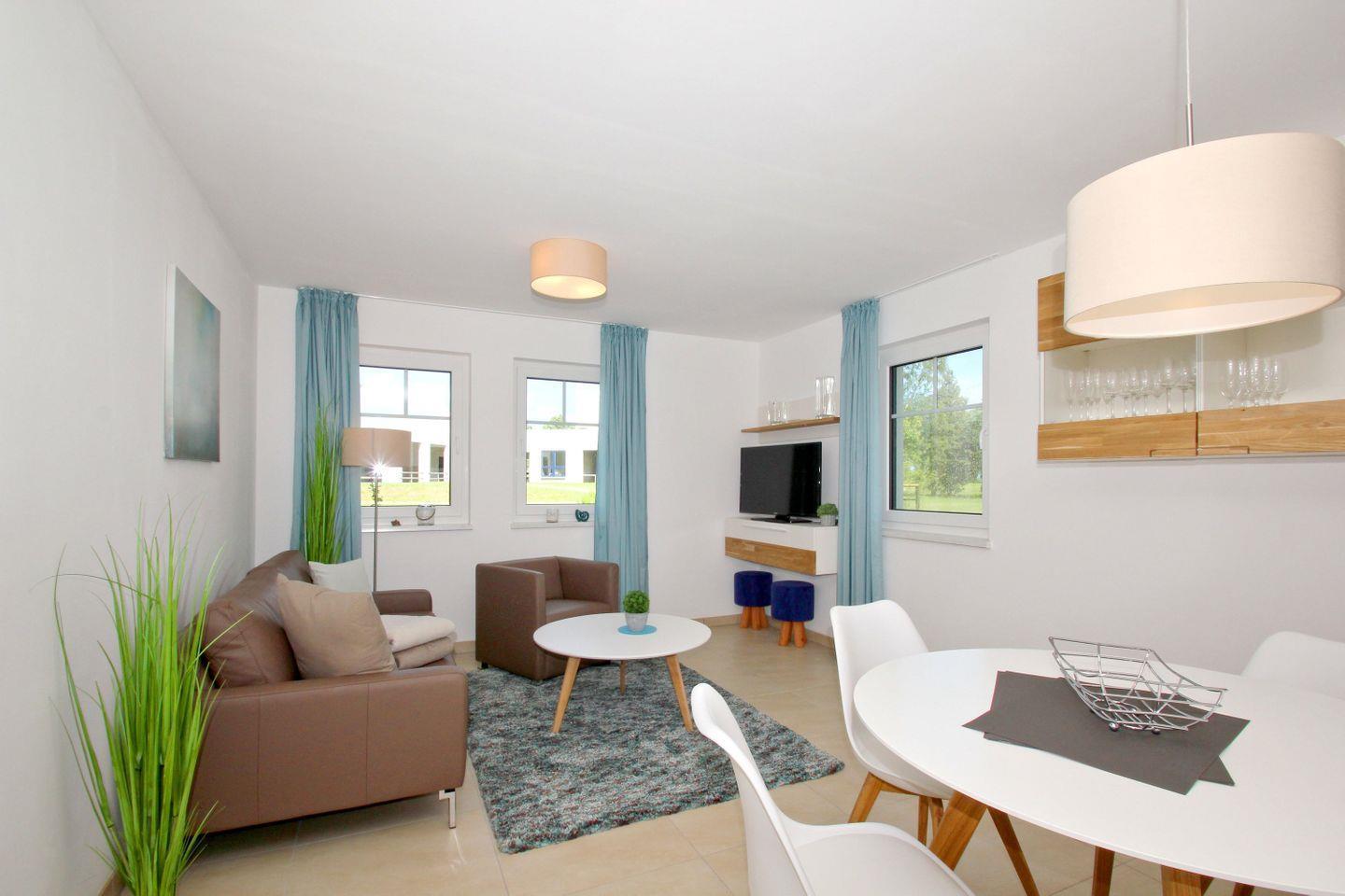 WOHNEN // Wohnraum mit Essbereich, Sitzgarnitur mit bequemer Couch, Flachbild-TV (Sat), Internet (W-LAN) ++