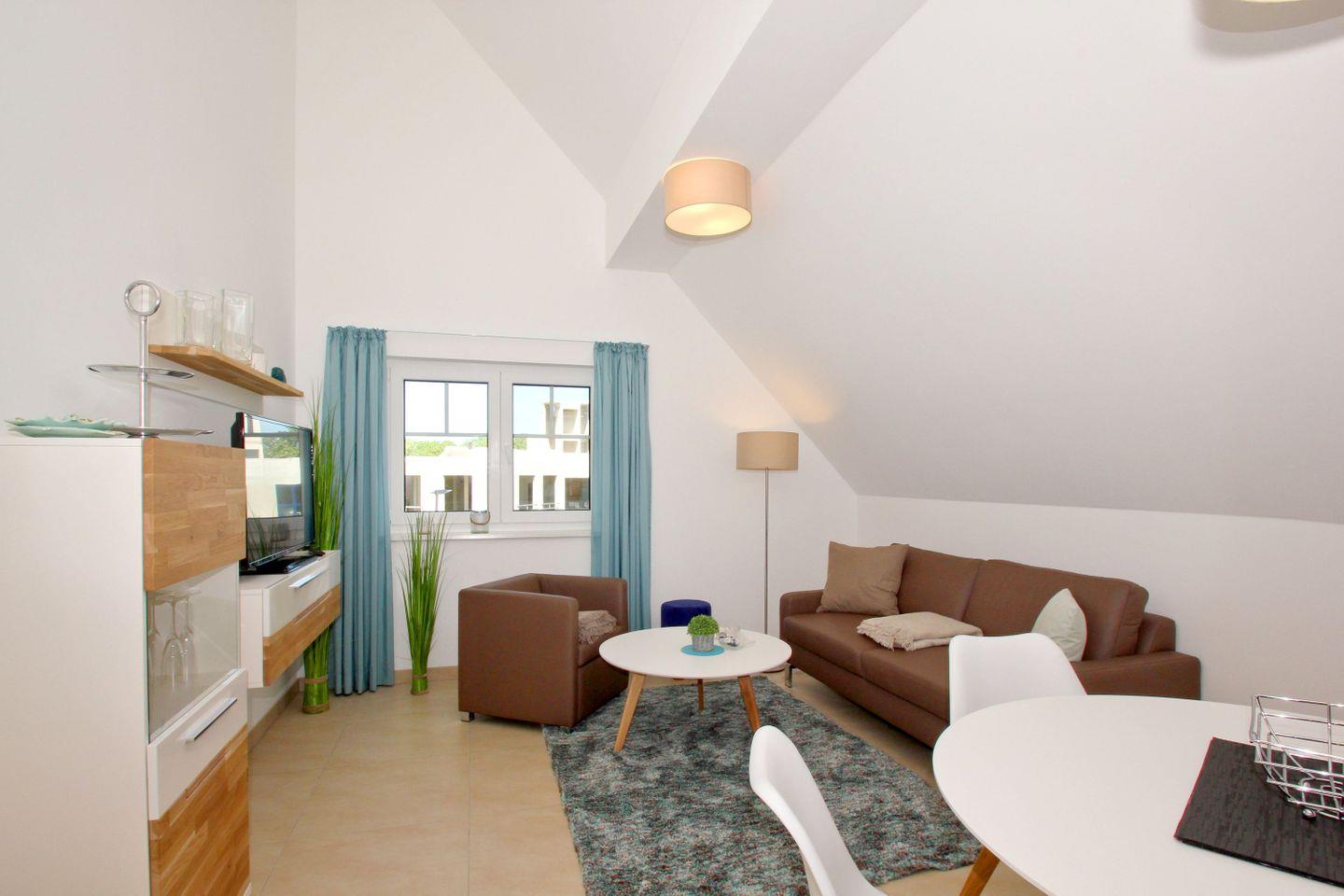 Moderne Ferienwohnung mit Balkon nahe Strand, Schwimmbad und Sauna im Rex Rugia Resort auf Rügen.