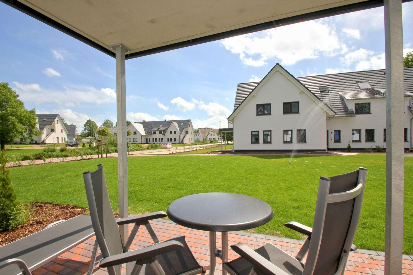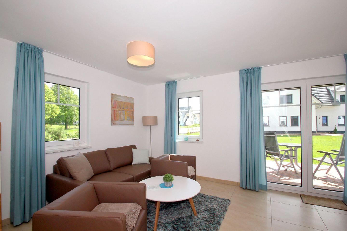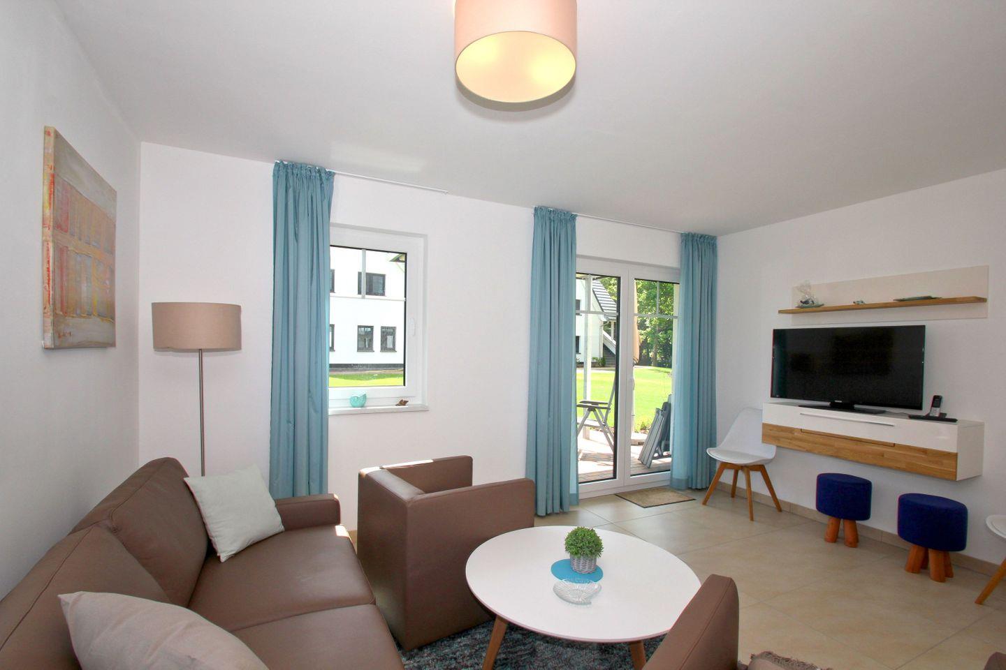 Moderne Ferienwohnung in Lobbe mit Terrasse, Strandnähe und kostenfreiem Zugang zu Schwimmbad und Sauna.