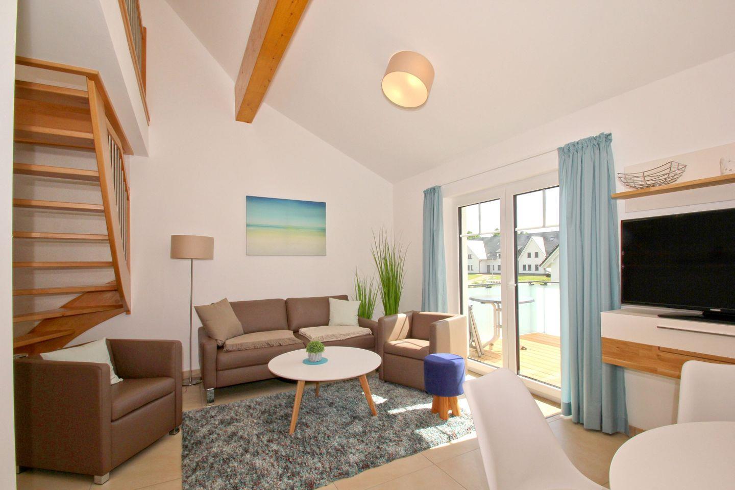 Komfortable strandnahe Ferienwohnung mit Balkon, Pool- und Saunanutzung im charmanten Strandresort Rex Rugia auf Rügen.