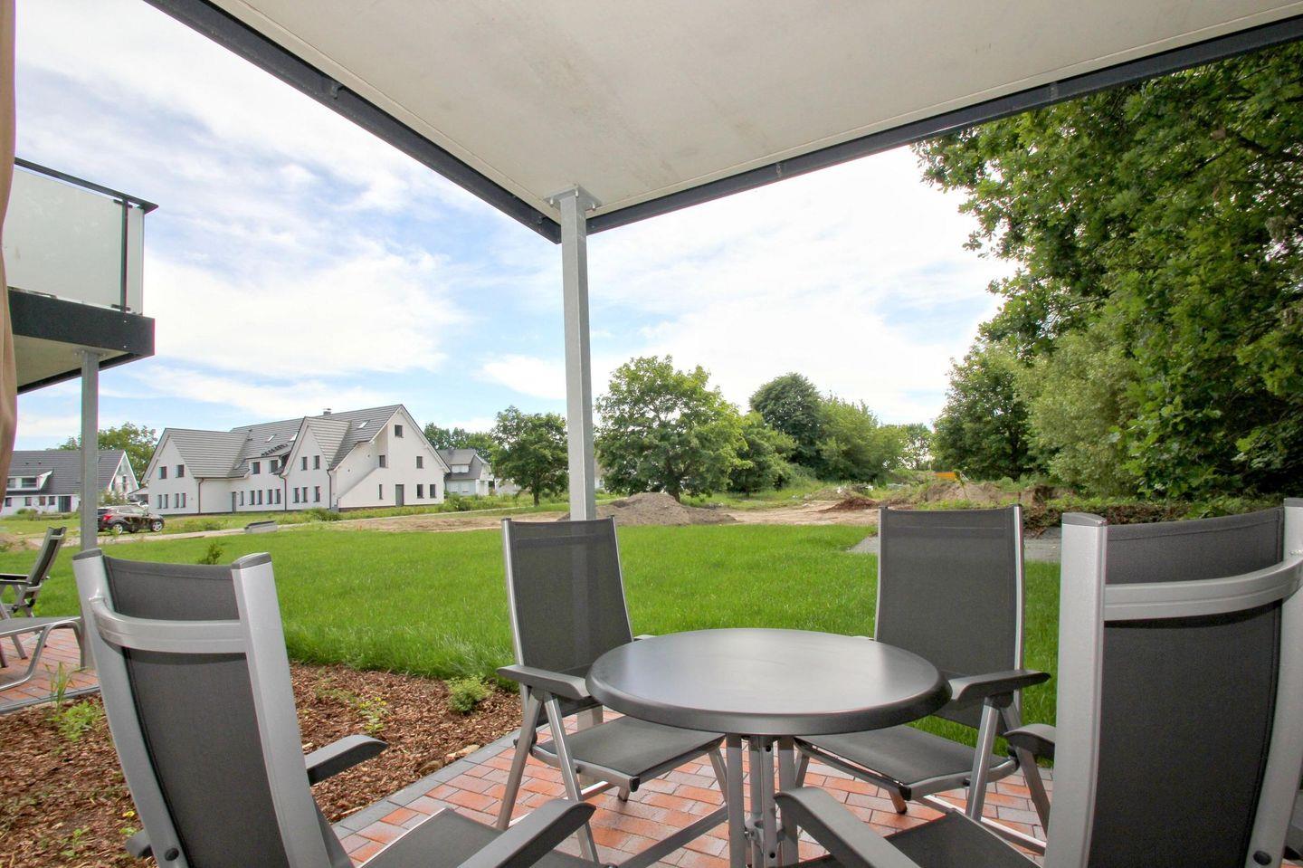Strandnahe Ferienwohnung mit Terrasse und kostenfreiem Schwimmbad- und Saunazugang in Lobbe, Mönchgut.