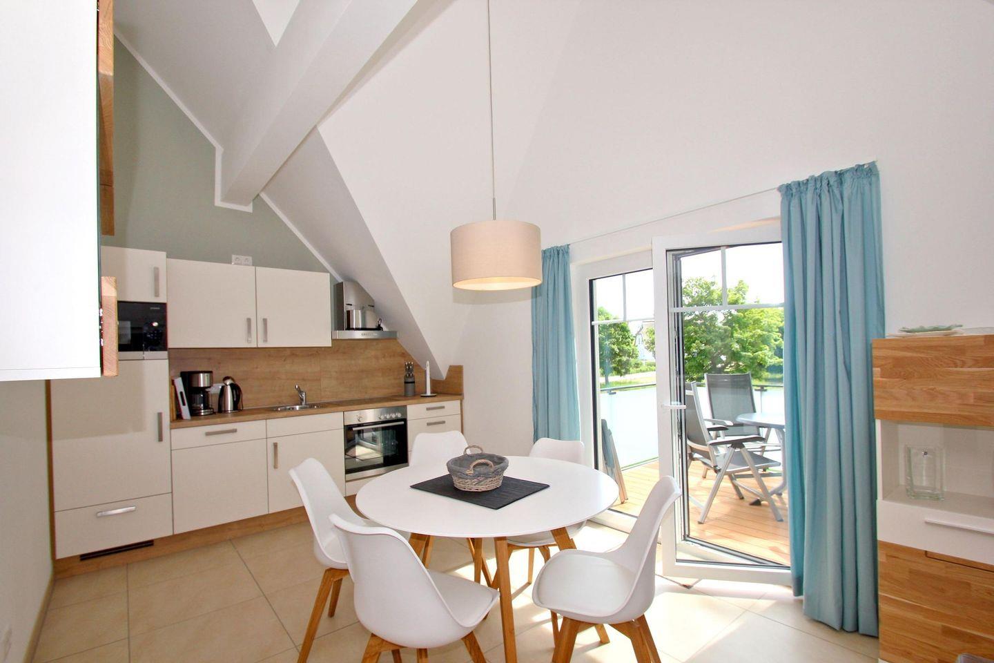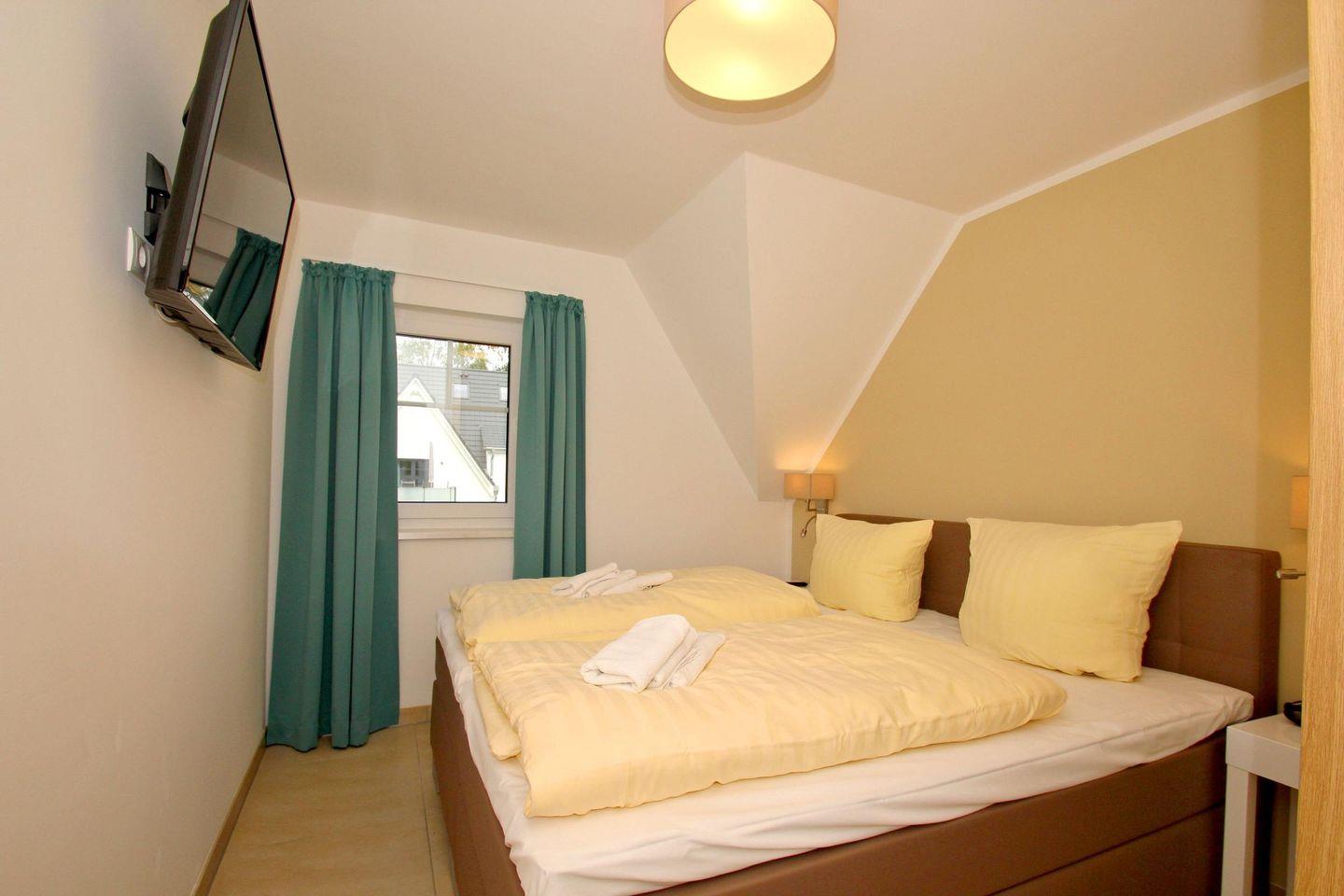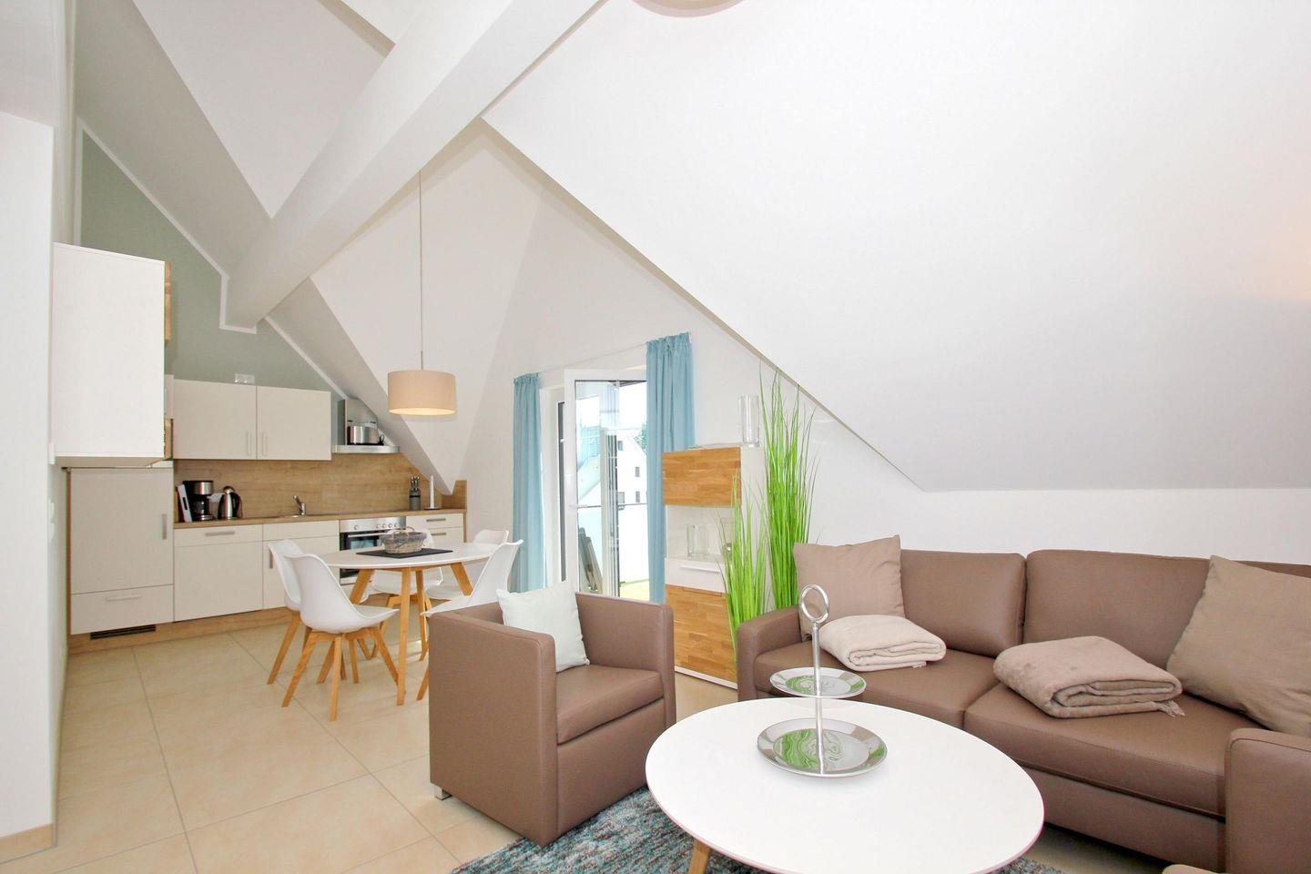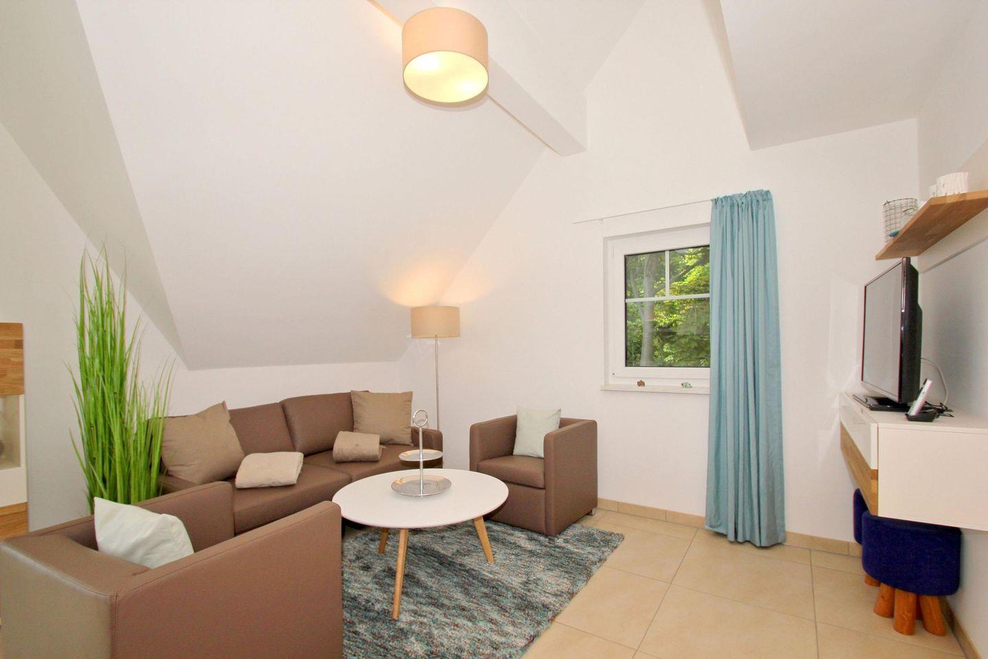 Moderne strandnahe Ferienwohnung mit Balkon und kostenfreiem Zugang zu Schwimmbad und Sauna im Rex Rugia Resort.