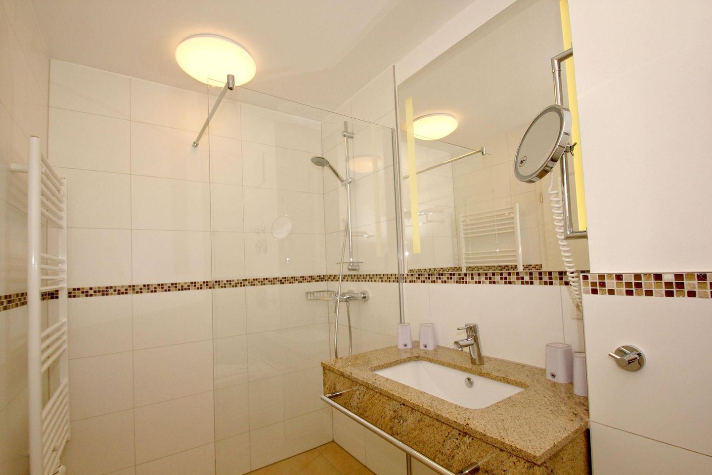 BAD // zwei innen liegendes Bäder mit Dusche und WC, Kosmetikspiegel und Fön ++