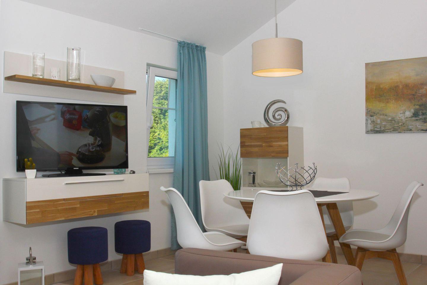 WOHNEN // Wohnraum mit Essbereich, Sitzgarnitur mit bequemer Couch, Flachbild-TV (Sat), Internet (W-LAN) ++