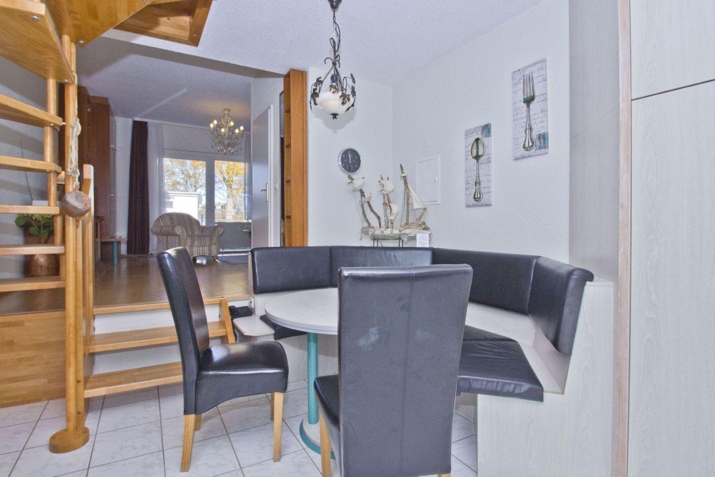 KÜCHE // im Erdgeschoss: Küche mit Essbereich, 4-Feld Ceranherd, Kühlschrank mit Gefrierfach, Toaster, Wasserkocher, Kaffeemaschine, reichlich Besteck, Backofen, Geschirr und Küchenutensilien und Terrassenzugang ++