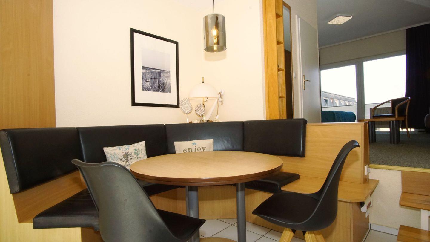WOHNEN+SCHLAFEN // Wohnraum mit Schlafcouch, Kabel-TV, Radio, Zugang zum Balkon & mit bequemem Doppelbett, Kleiderschrank++