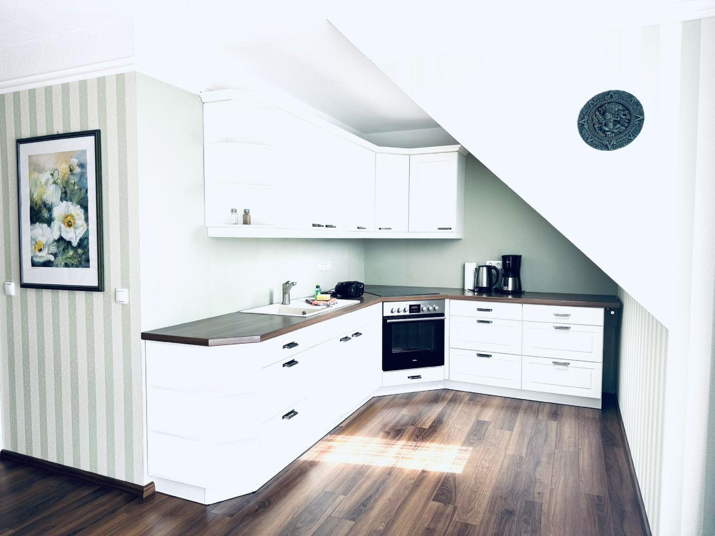 KÜCHE // offene Küche, 4-Platten Ceranfeld, Spülmaschine, Kühlschrank, Toaster, Wasserkocher, Kaffeemaschine, reichlich Besteck, Geschirr und Küchenutensilien ++