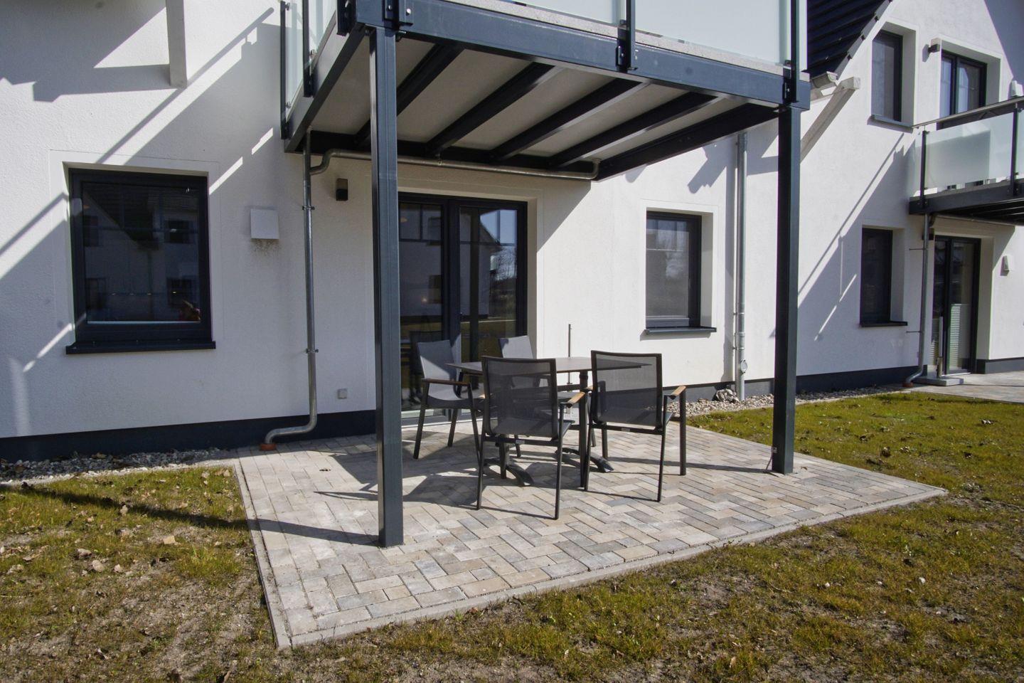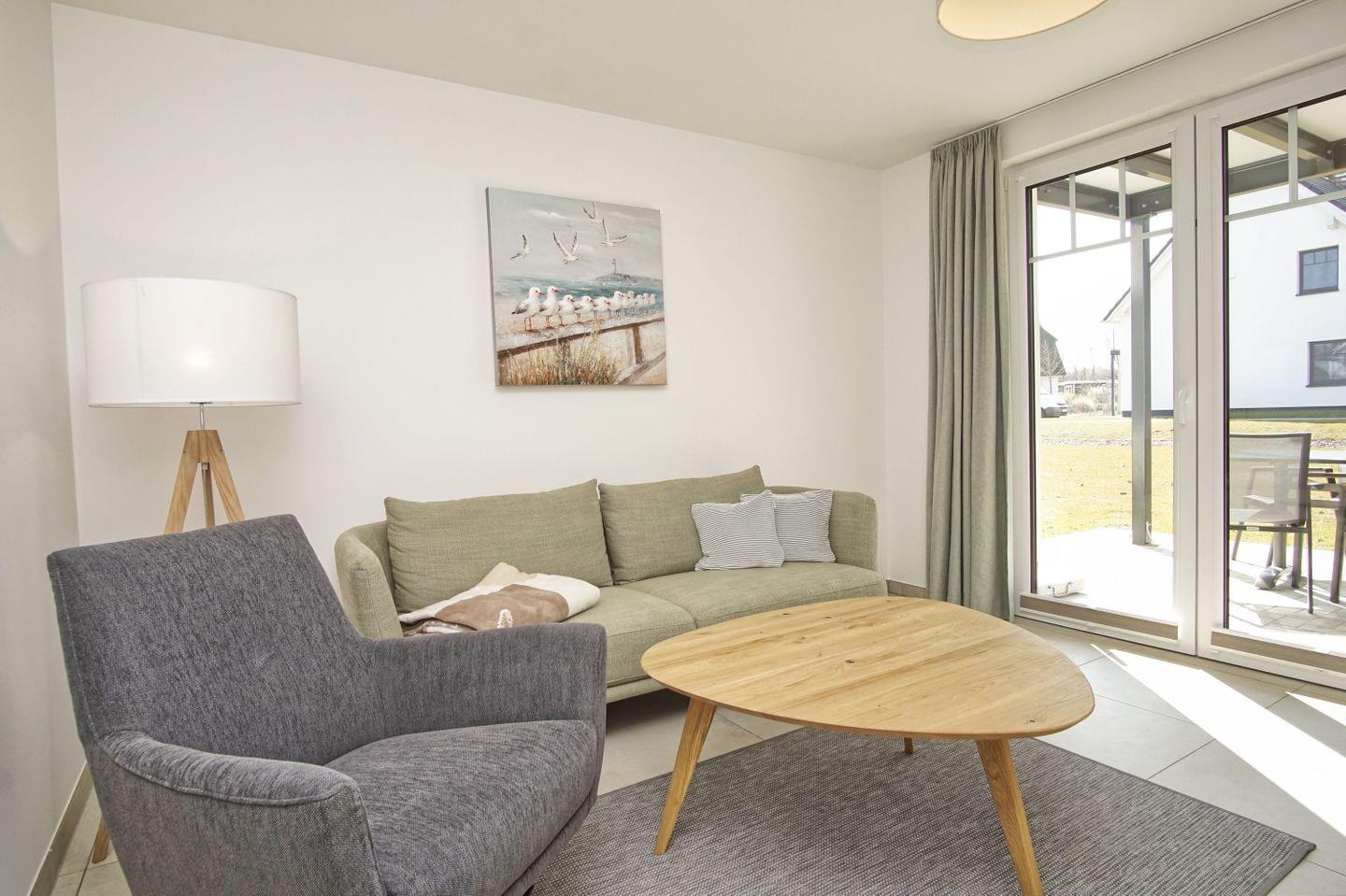 Komfortable Ferienwohnung in Lobbe mit Terrasse und kostenfreiem Zugang zu Schwimmbad und Sauna.