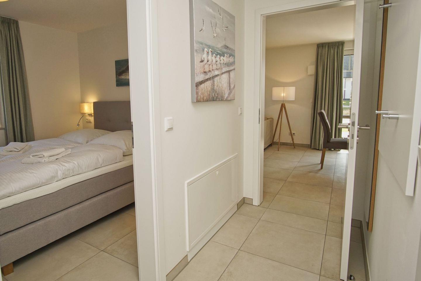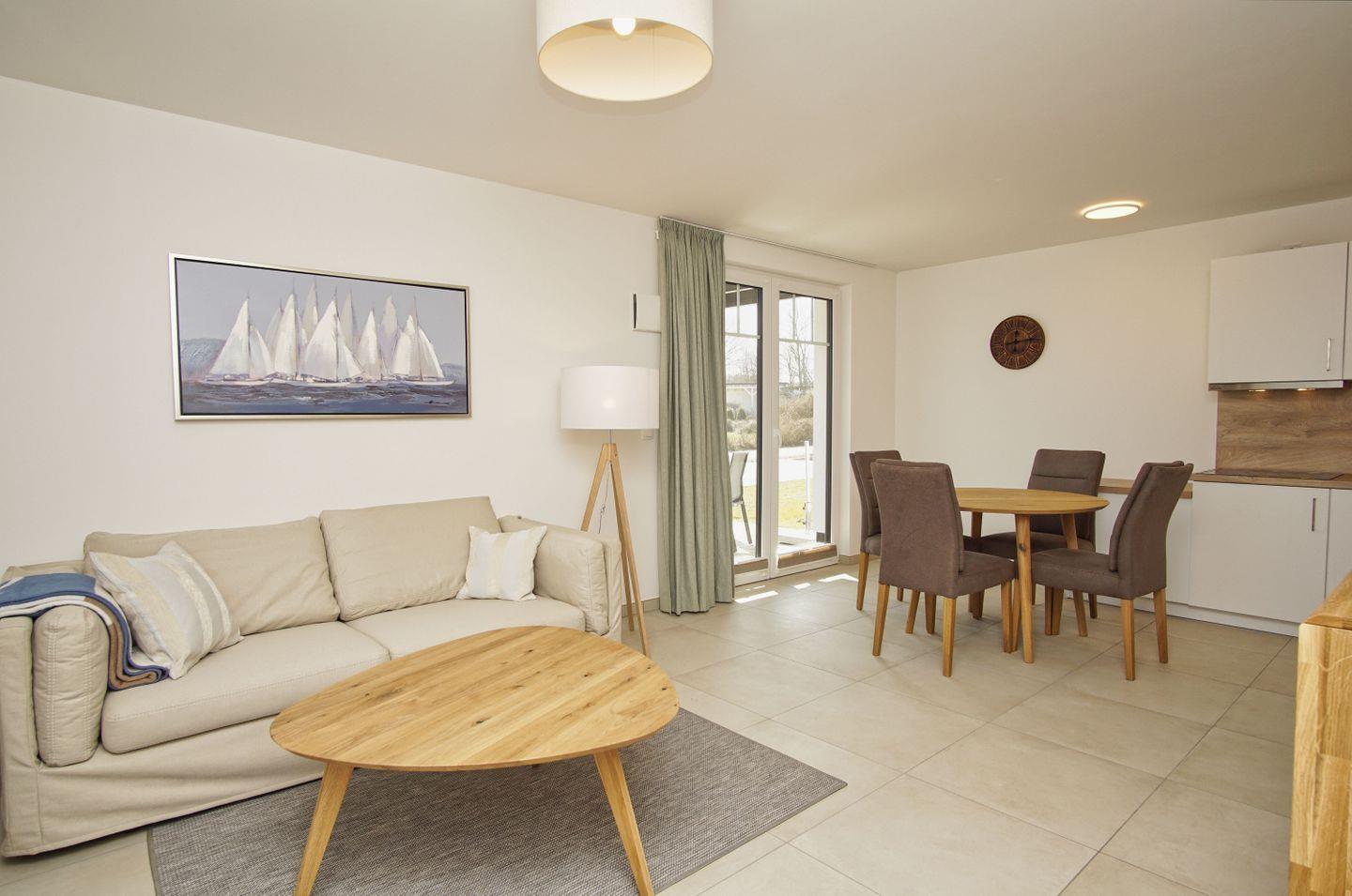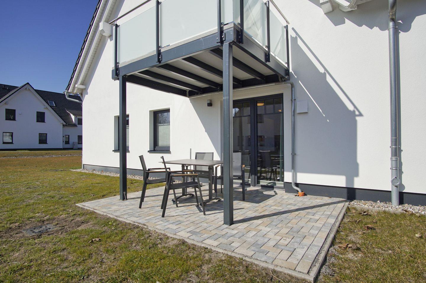 Strandnahe Ferienwohnung mit Terrasse im charmanten Rex Rugia Resort auf Rügen mit kostenfreiem Hallenbad- und Saunanutzung.