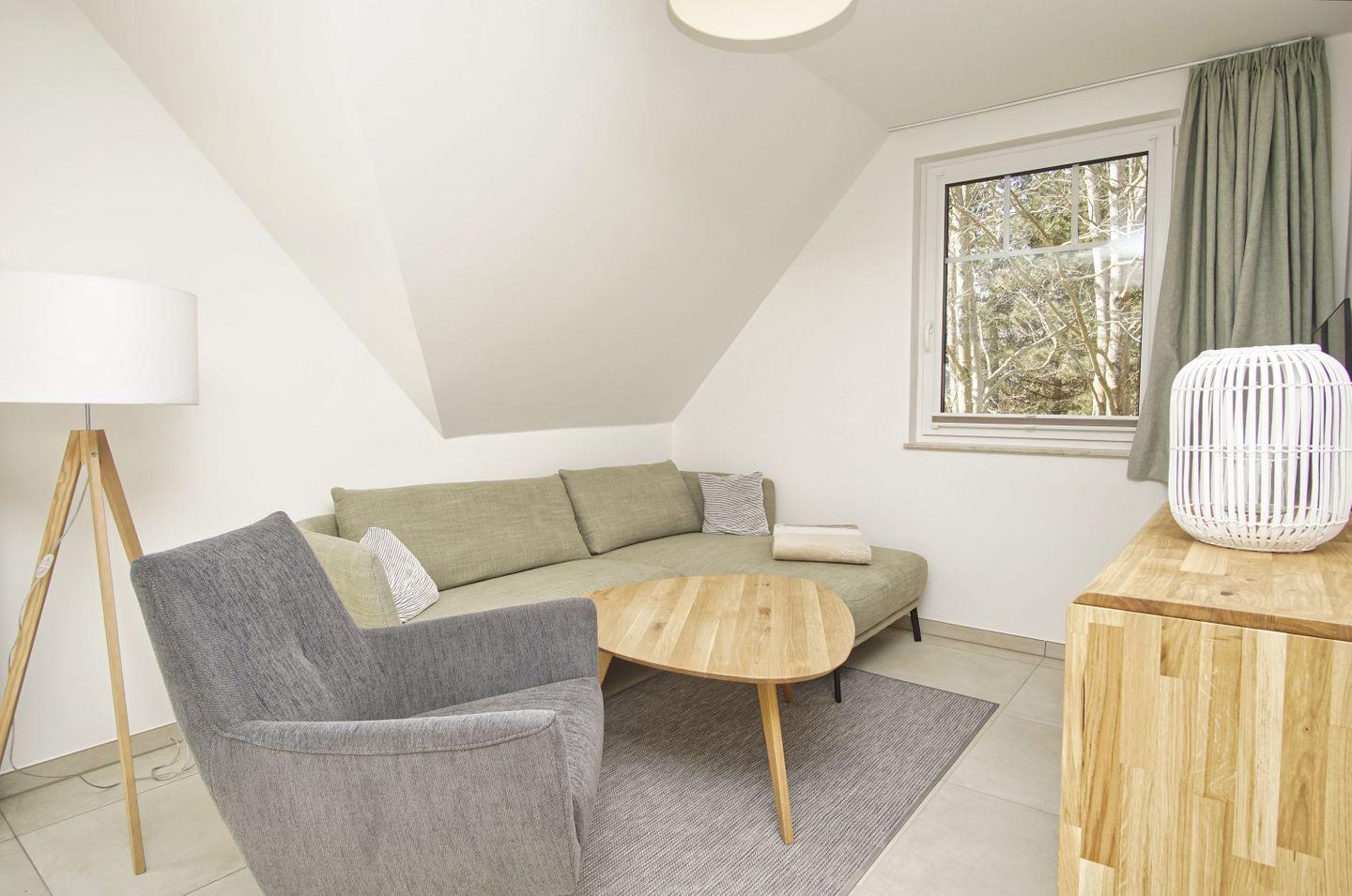 Strandnahe Ferienwohnung mit Balkon, freiem Hallenbad- und Saunaeintritt in Lobbe auf Rügen.
