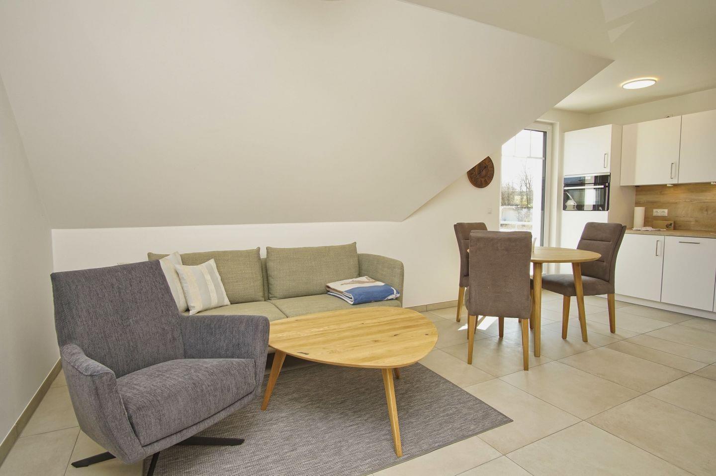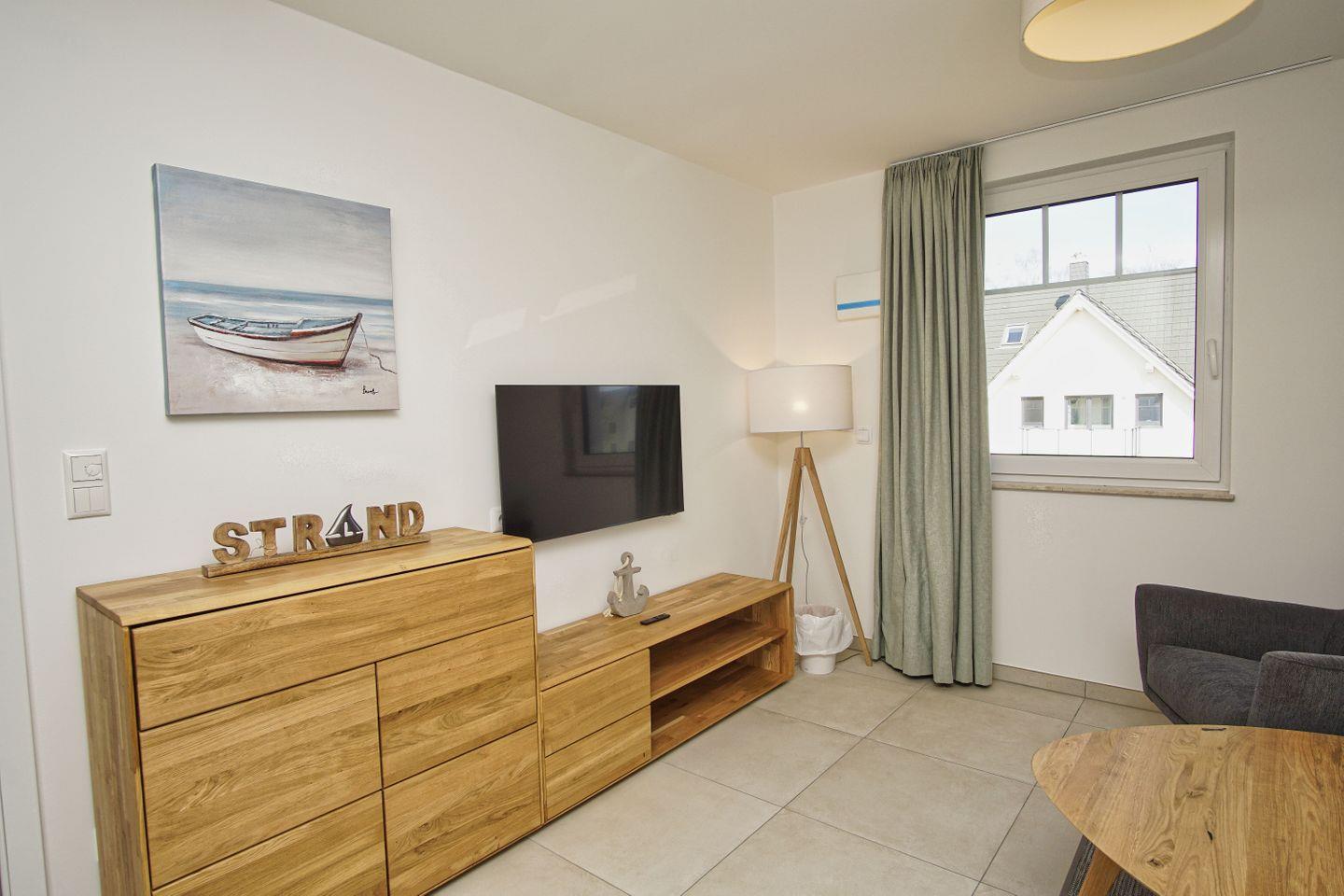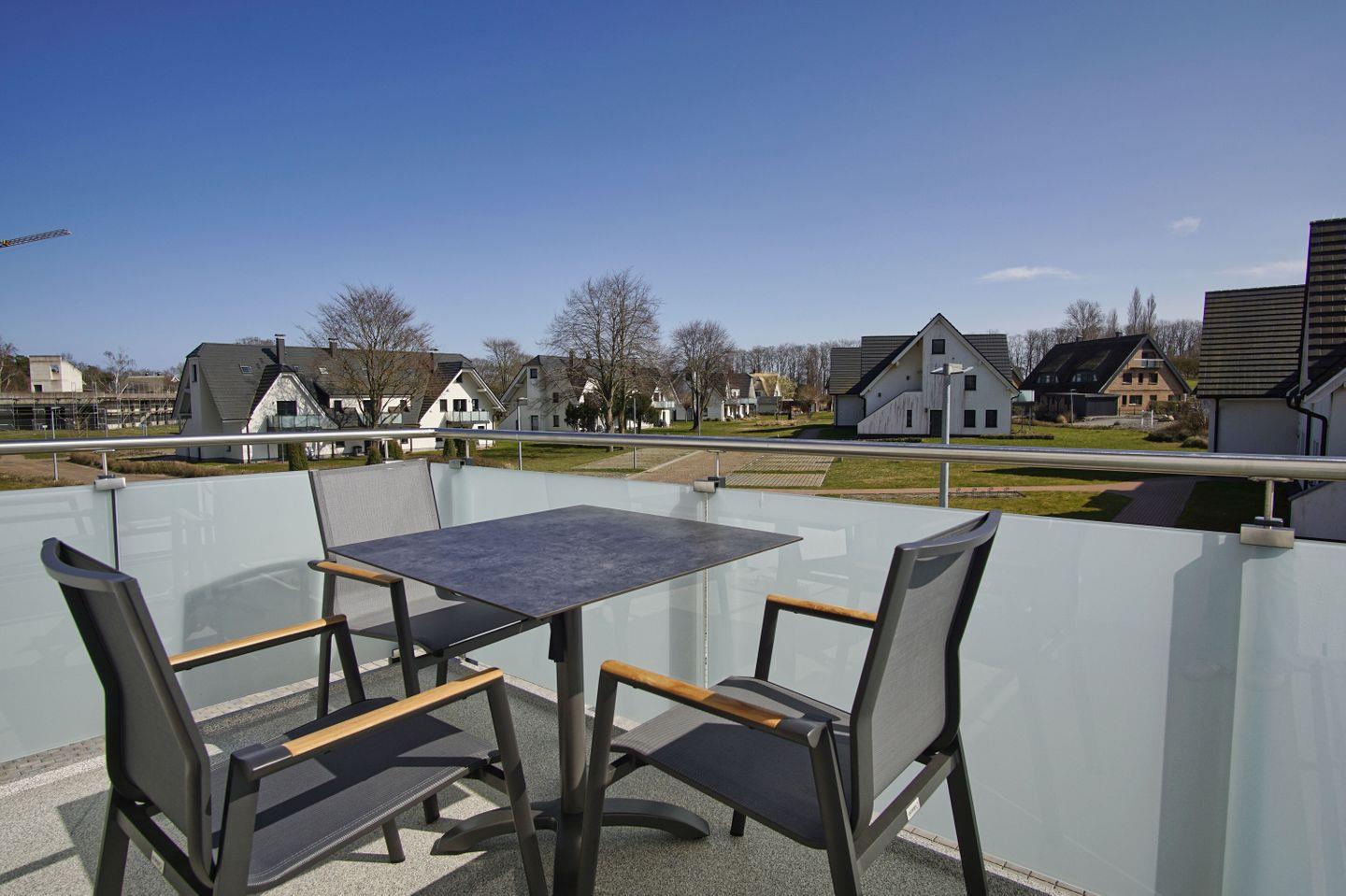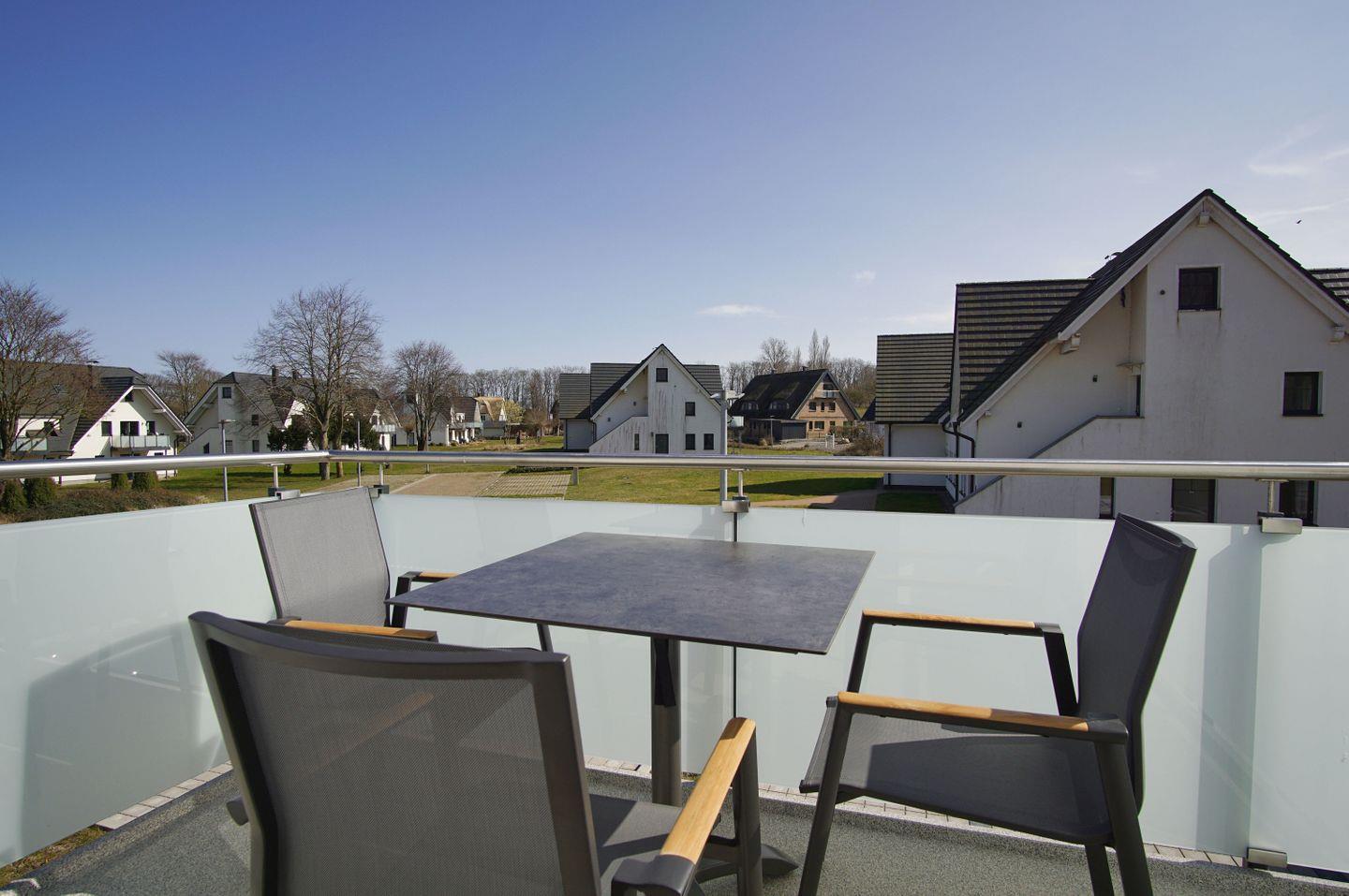 Moderne Ferienwohnung mit Balkon, nahe Strand, Hallenbad und Sauna im Rex Rugia Resort auf Rügen.