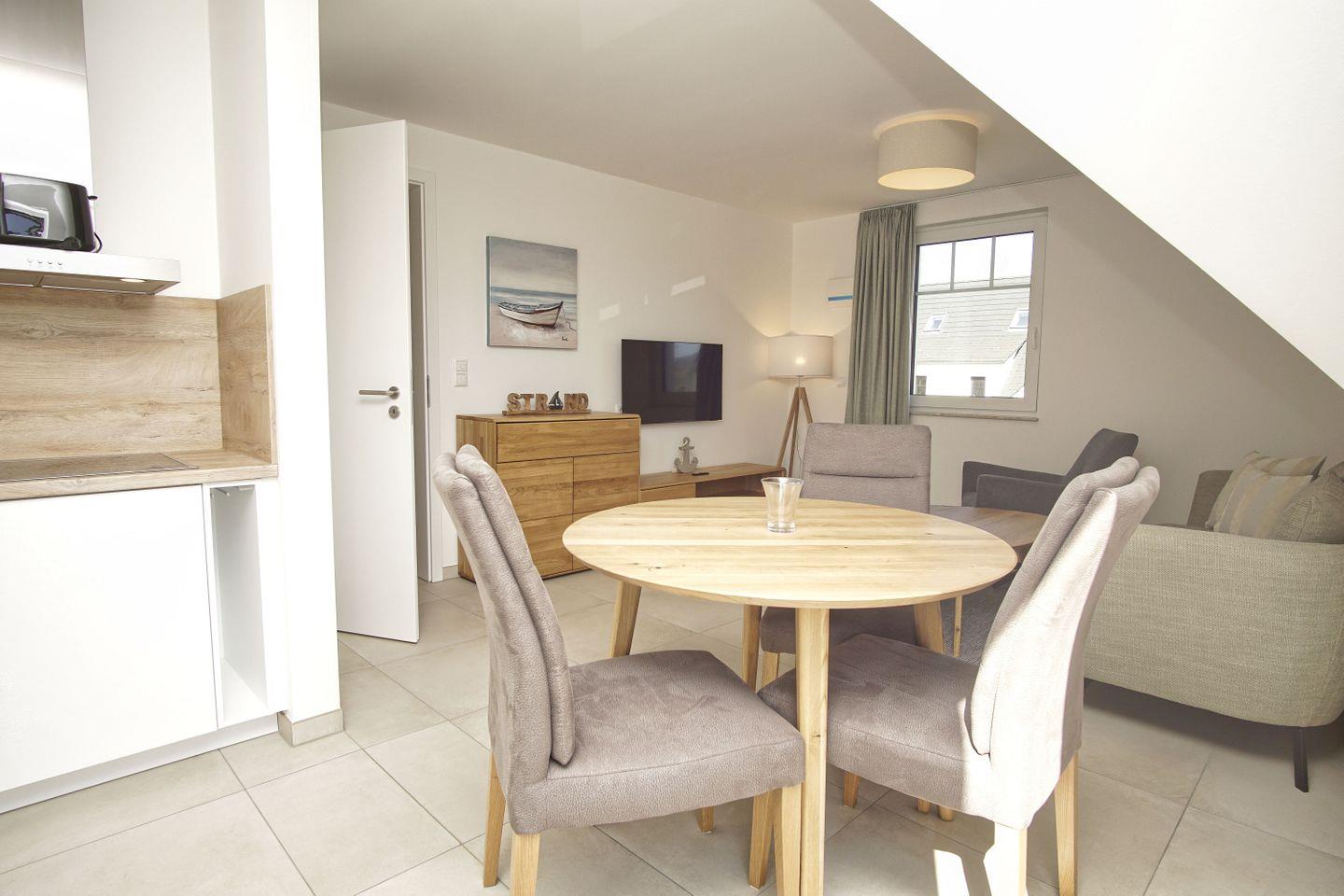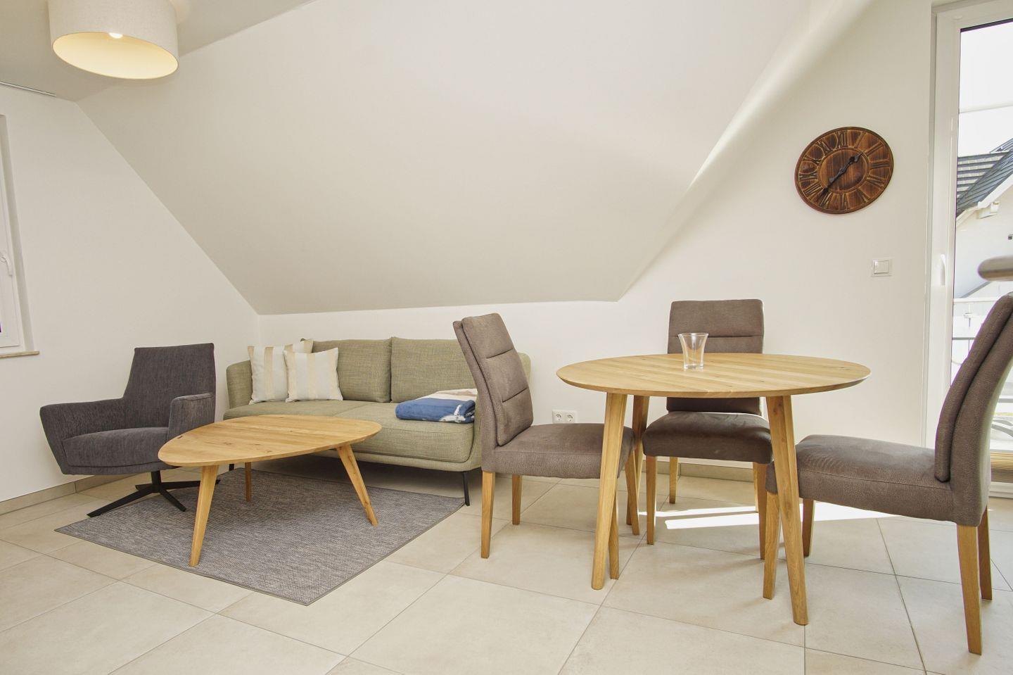 WOHNEN // Wohnraum mit Essbereich, Sitzgarnitur mit bequemer Couch, Flachbild-TV (Smart-TV), Internet (W-LAN) ++
