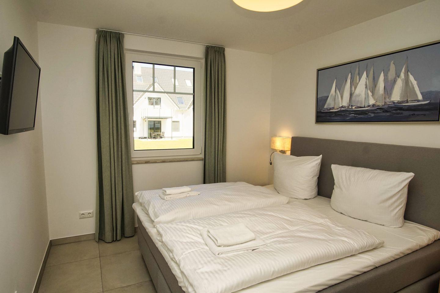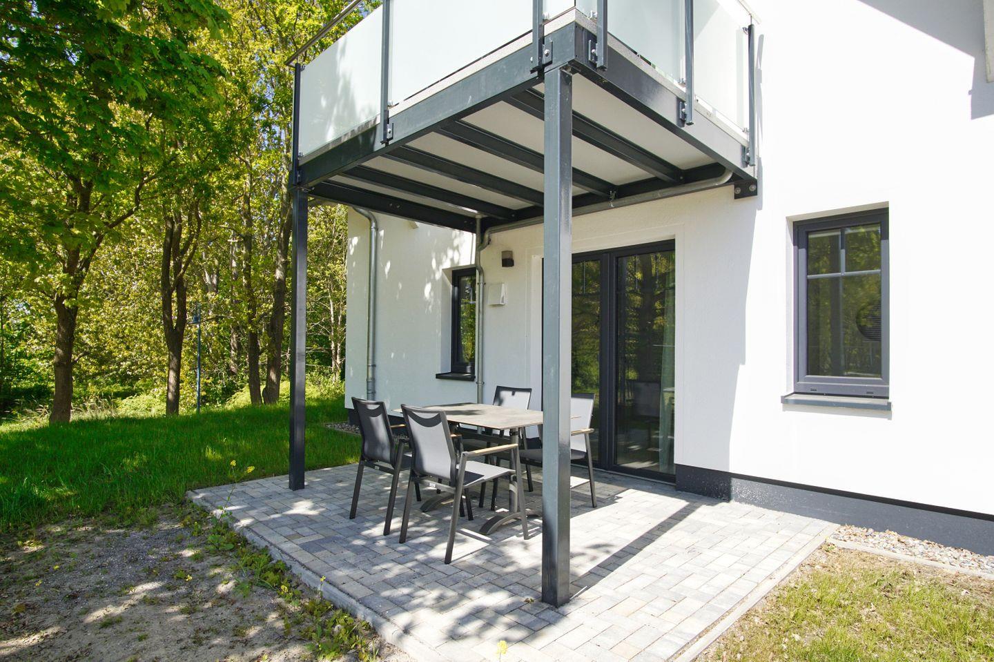 Strandnahe Ferienwohnung mit Terrasse, Schwimmbad- und Saunanutzung im charmanten Rex Rugia Resort bei Lobbe.