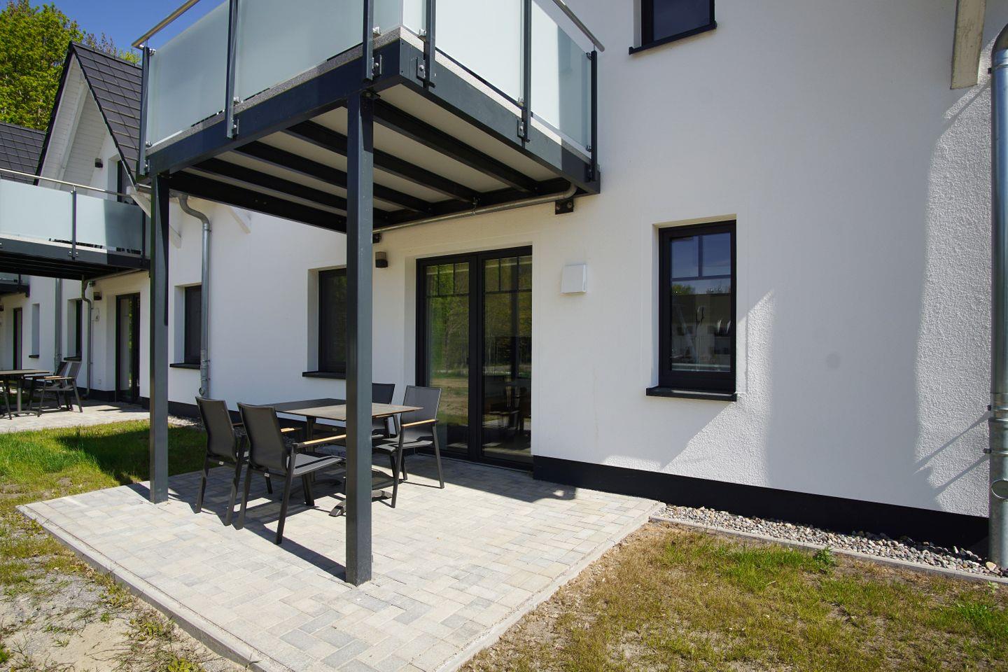 Strandnahe Ferienwohnung mit Terrasse und kostenfreiem Zugang zu Schwimmbad und Sauna in Lobbe auf Rügen.