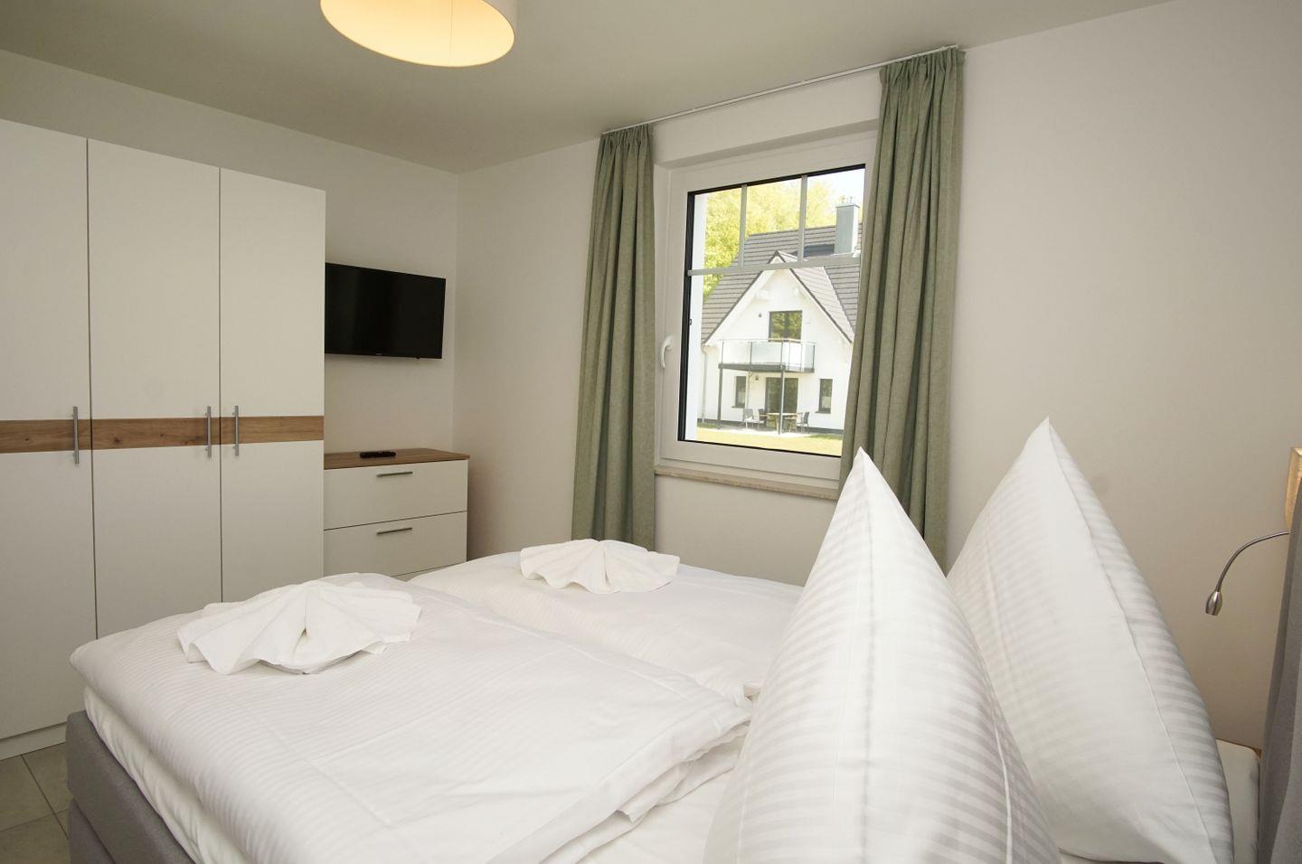 SCHLAFEN // ein Schlafzimmer mit bequemem Doppelbett und Flachbild-TV (Smart-TV) ++