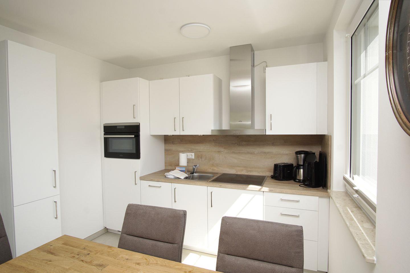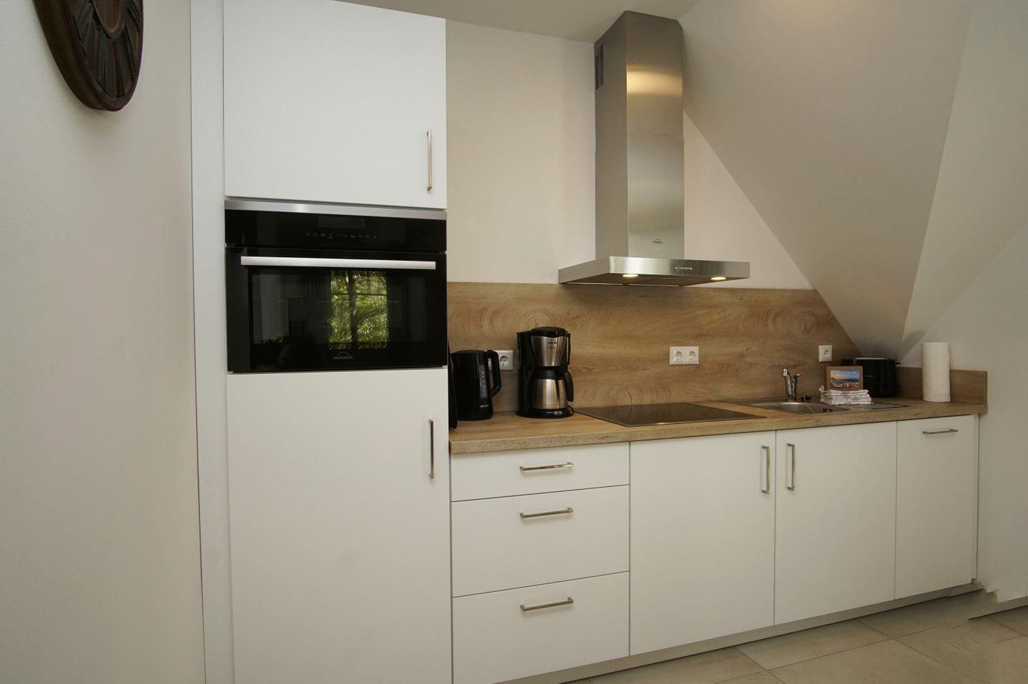 KÜCHE // Küchenzeile, 4-Platten Ceranfeld, Spülmaschine, Kühlschrank mit Gefrierfach, Backofen, Toaster, Wasserkocher, Kaffeemaschine, reichlich Besteck, Geschirr und Küchenutensilien ++