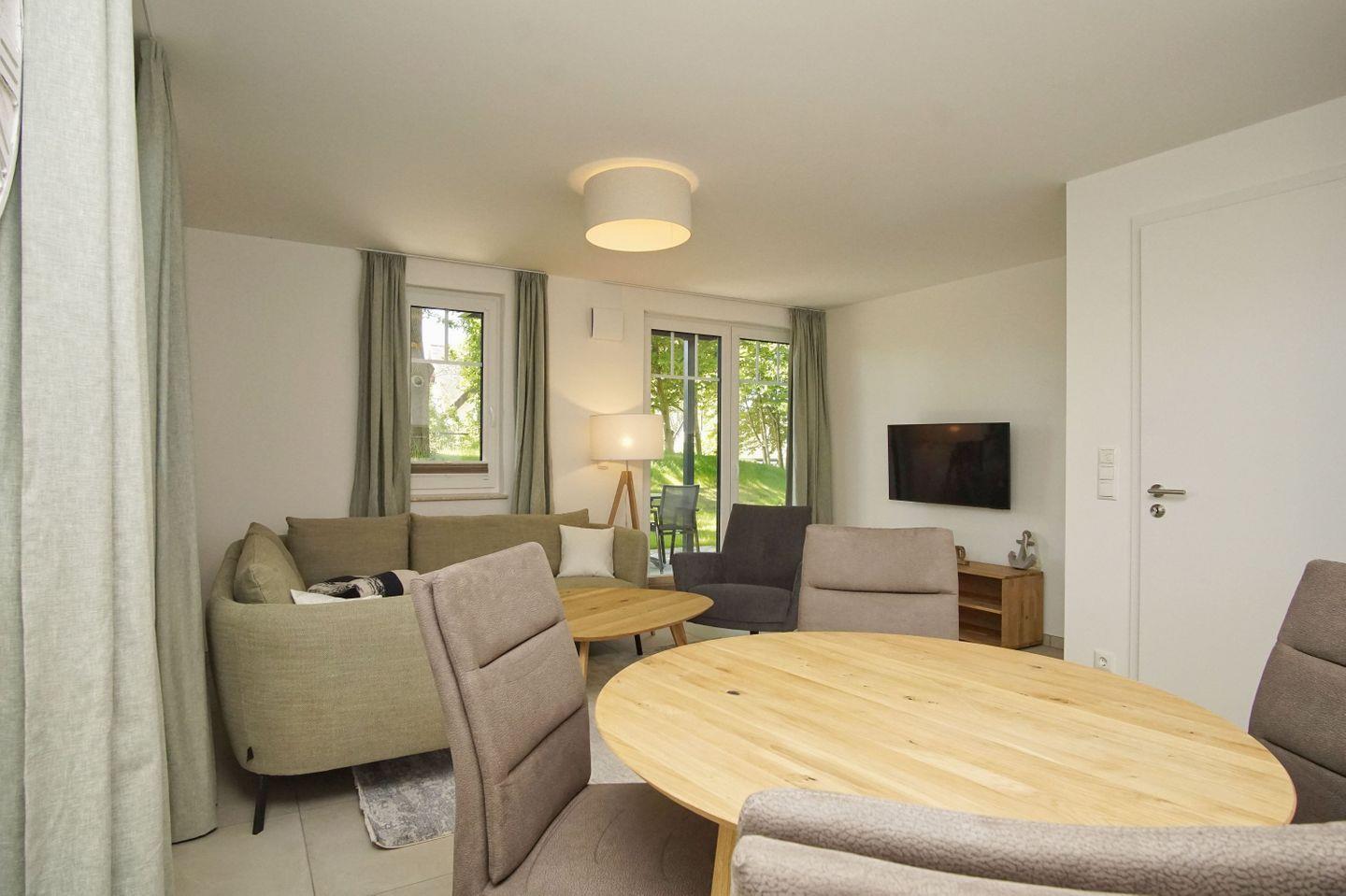 Strandnahe Ferienwohnung im Rex Rugia Resort mit Terrasse und moderner Ausstattung in Lobbe auf Rügen.