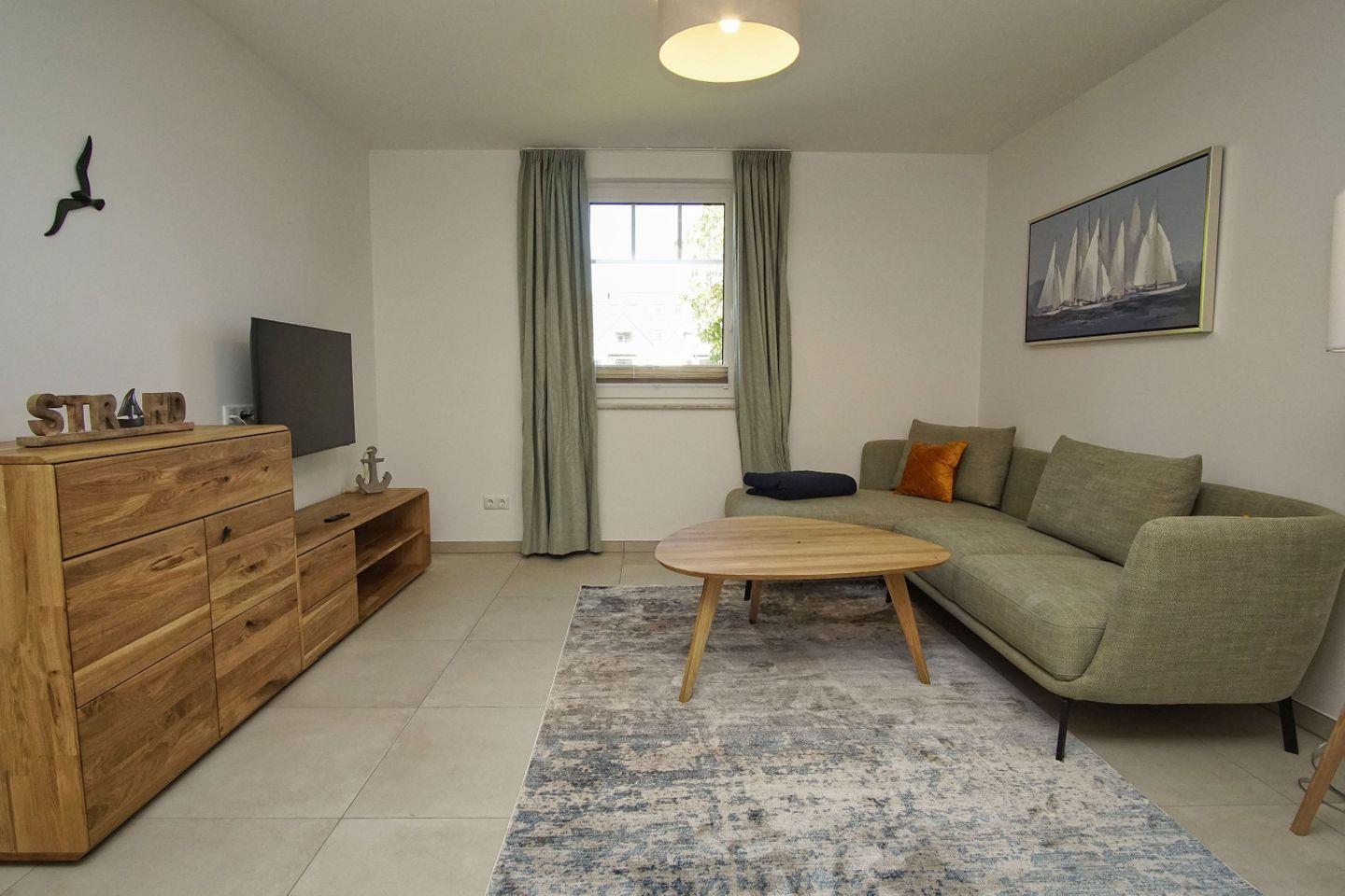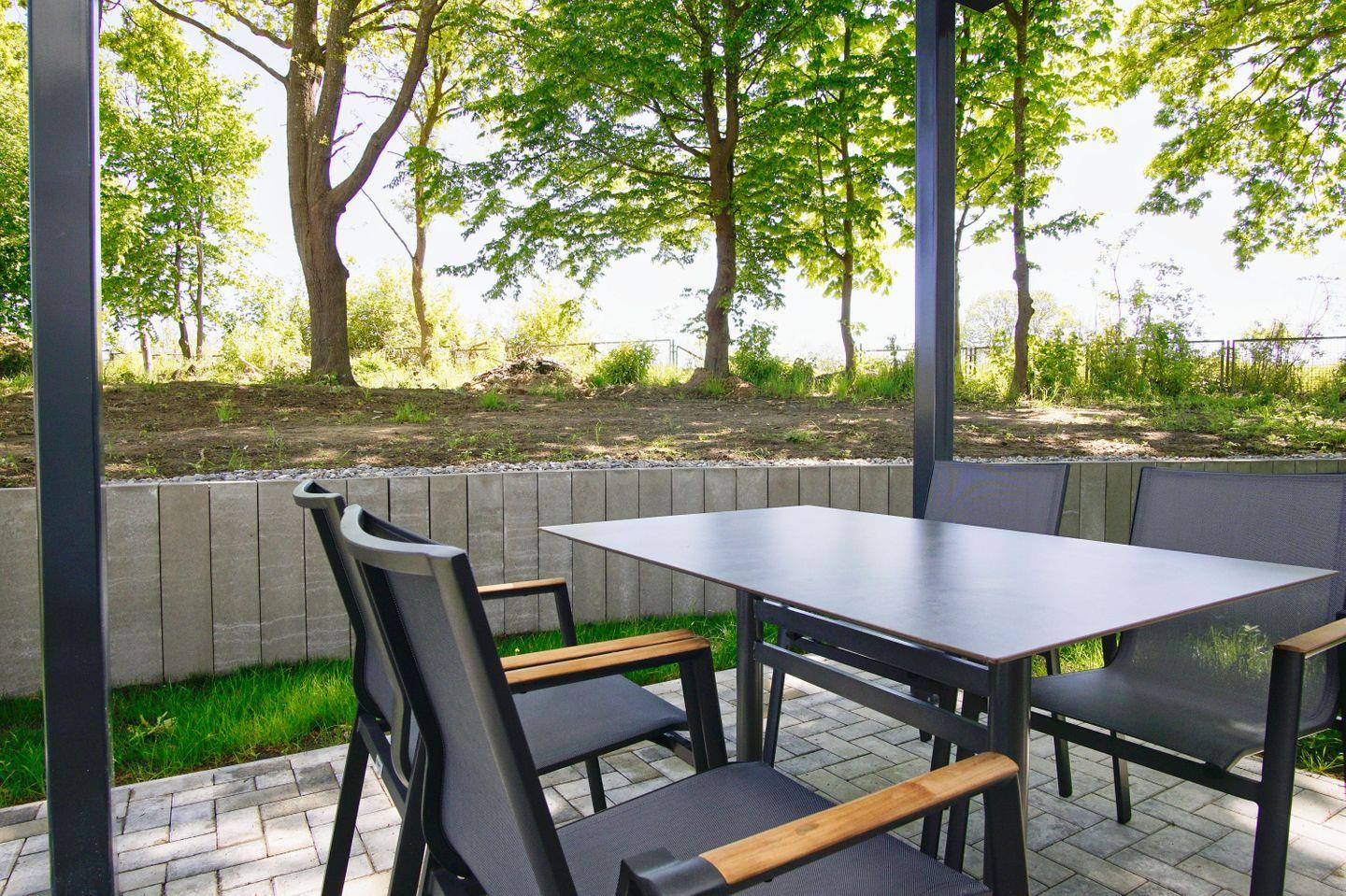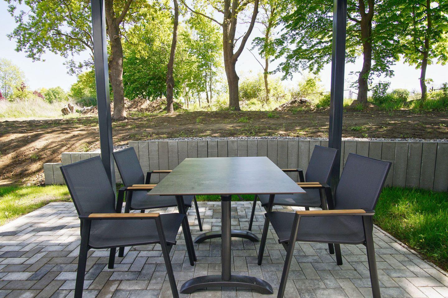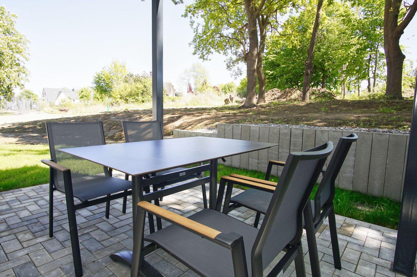 Strandnahe Ferienwohnung mit Terrasse im charmanten Strandresort Rex Rugia auf Rügen, ideal für erholsame Tage am Meer.