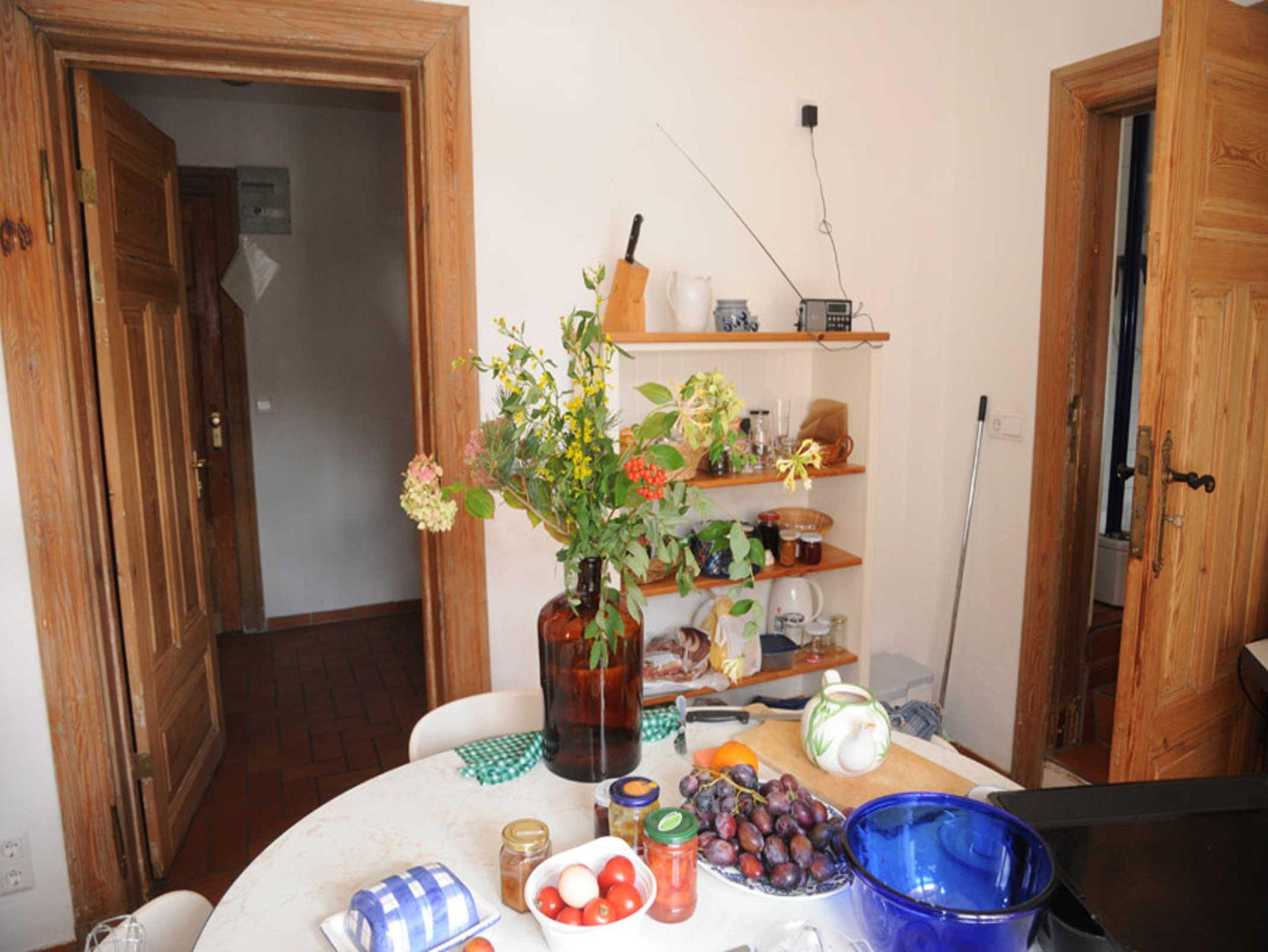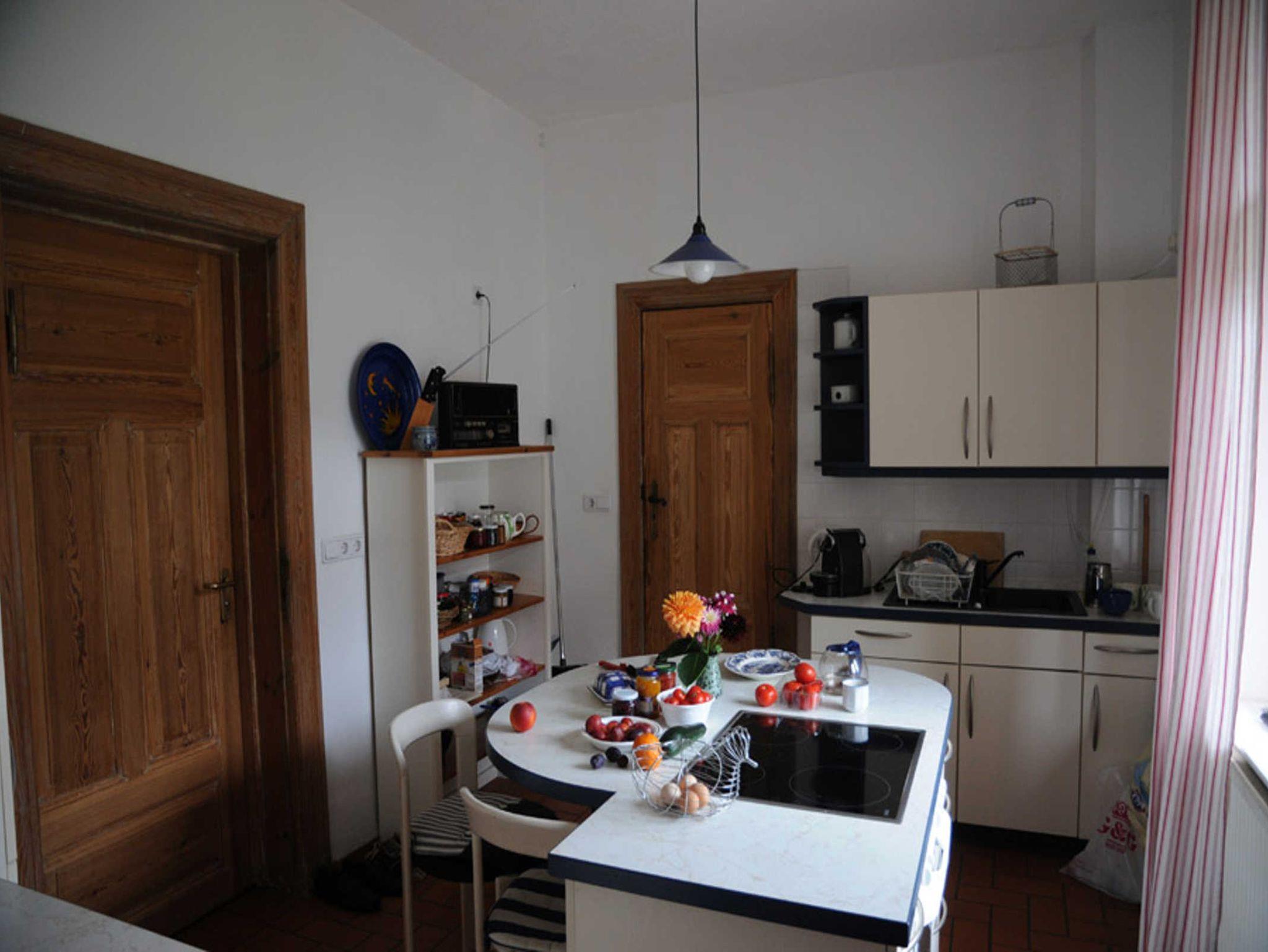 Ferienwohnung mit viel Platz im Haupthaus. Diese großzügig und stilvoll eingerichtete Fewo verfügt u. a. über einen Flur, hochwertig ausgestatteter Küche (Ceranfeld, Backofen, Kühl-/Gefrierkombi)) mit Sitzmöglichkeit für 3 Personen, ein Wohnzimmer mit großem Esstisch und Schlafmöglichkeit im Einzelbett. Die Veranda mit zwei Ledersofas und Spieltisch ist beheizbar und beliebter Treffpunkt. Zwei Schlafzimmer (1x Doppelbett, 1x Schlafcouch für 2 Personen). WLAN.