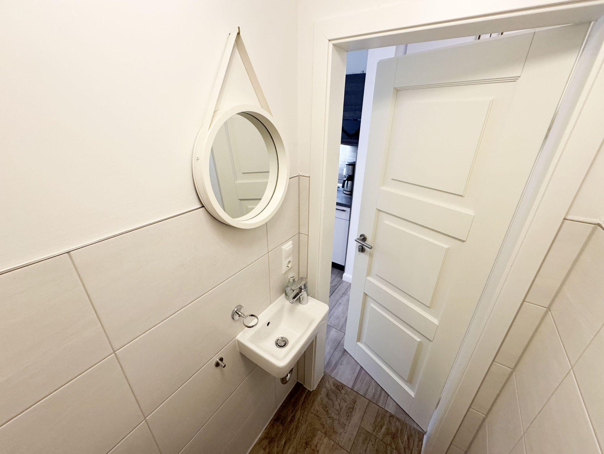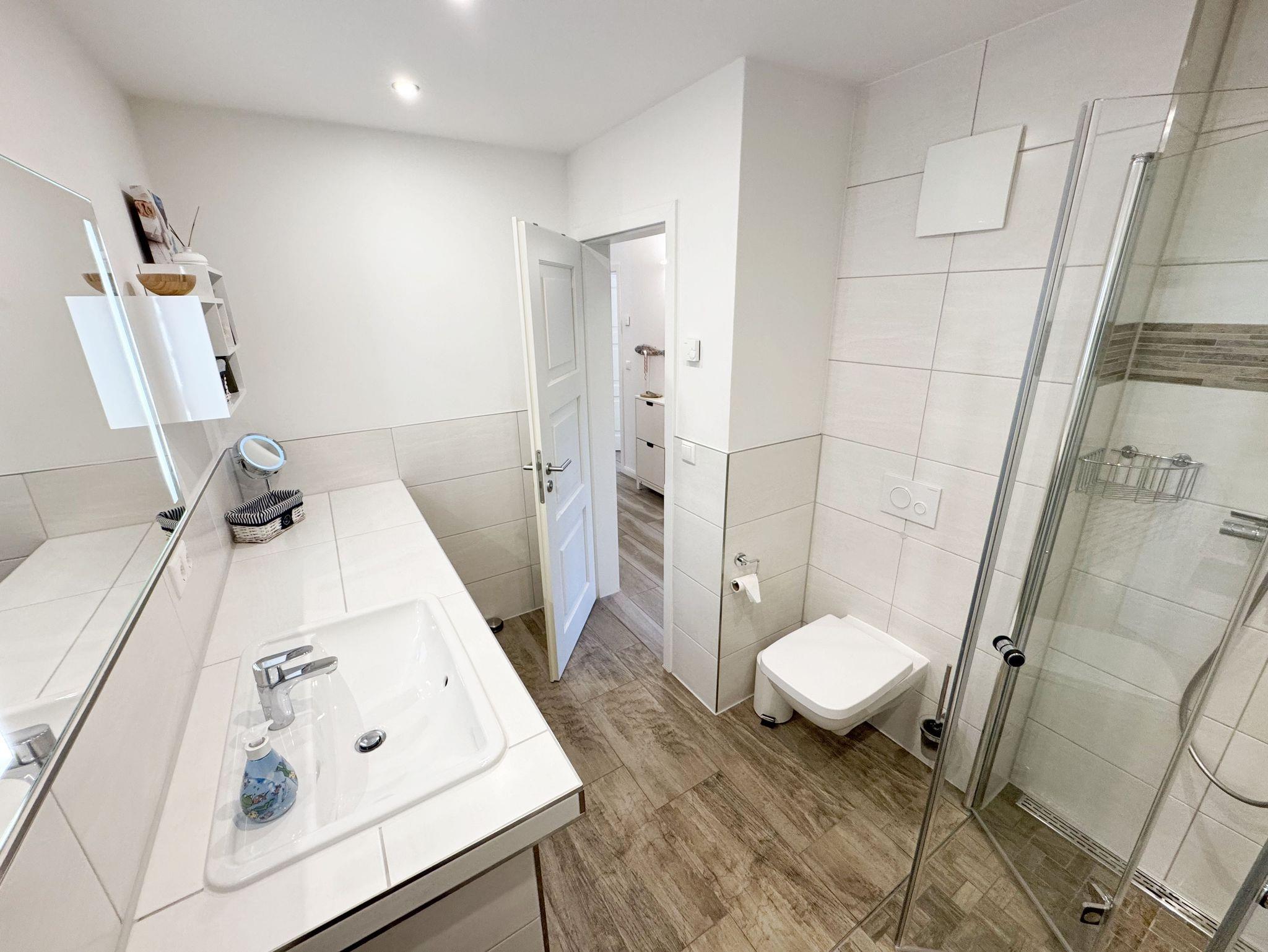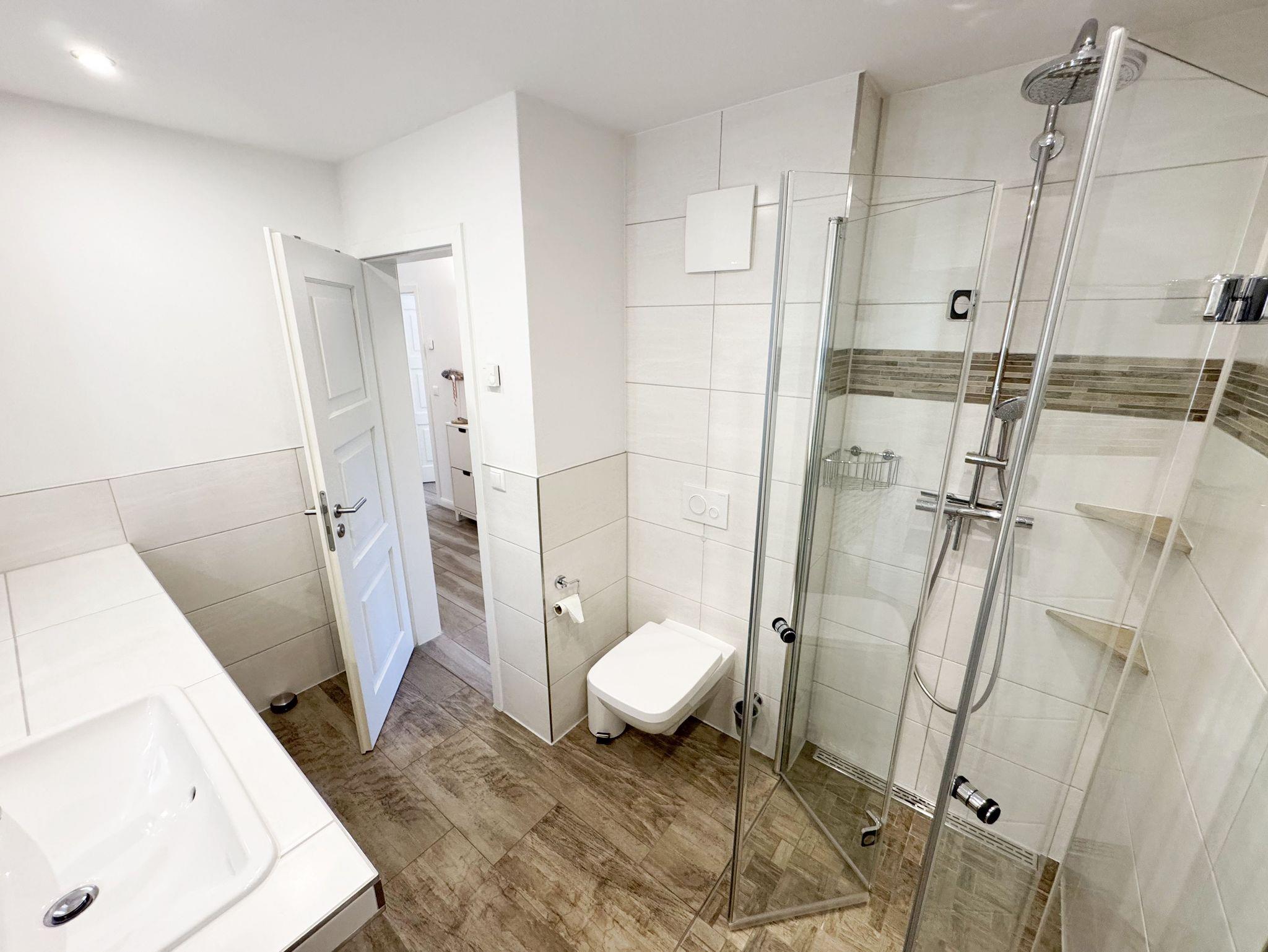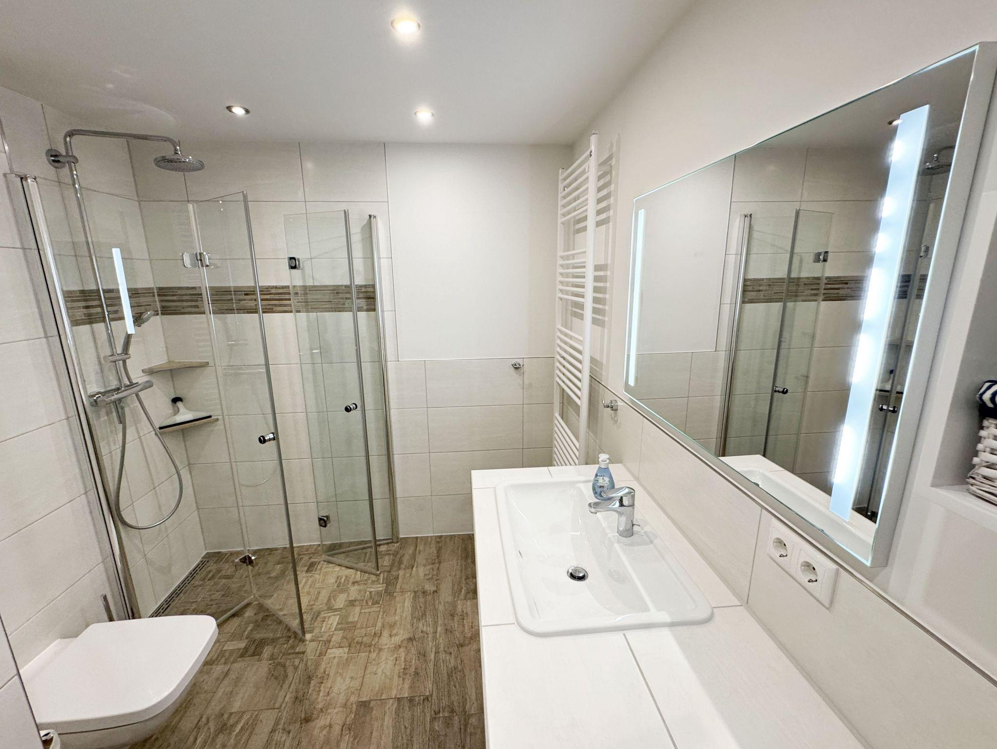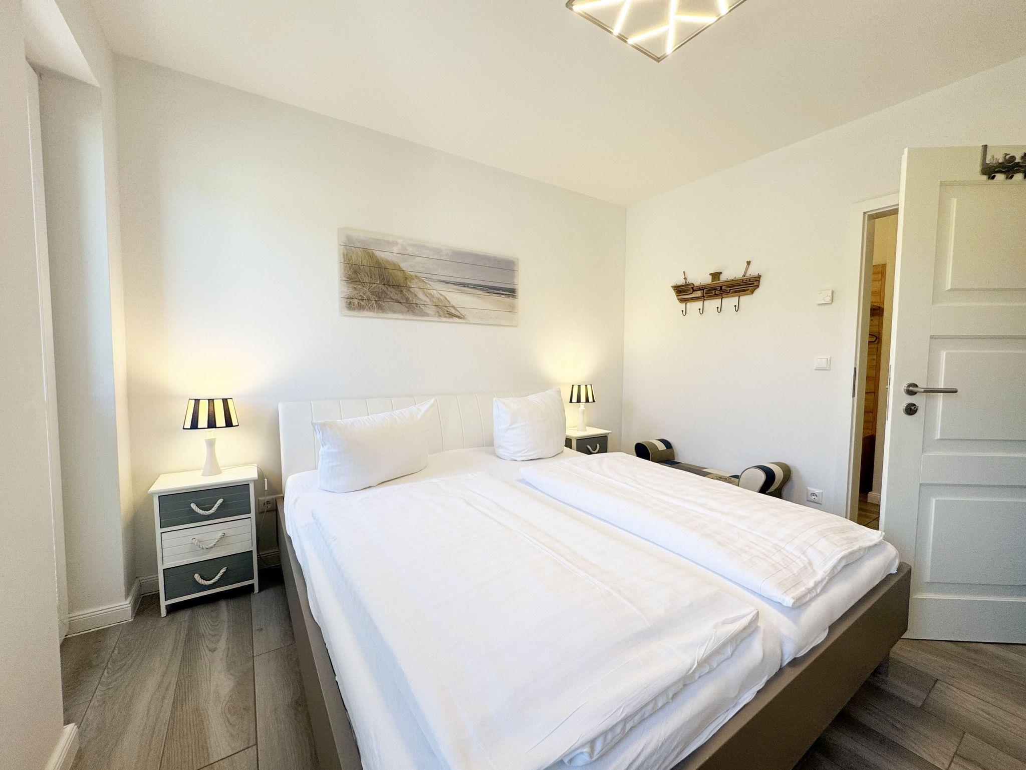 Das komfortable, stilvoll und modern eingerichtete 3-Zimmer-Appartment ?Sturmböe? in der 1. Etage besticht durch seine unvergleichliche Strandnähe und das nordische Flair. Auf ca. 70 m² ist diese Allergiker gerechte Nichtraucherwohnung mit viel Liebe zum Detail eingerichtet und für max. 2 bis 4 Erwachsene + 1 Kleinkind bis Jahre im Kinderreisebett optimal nutzbar. Die Räumlichkeiten sind mit einer Fußbodenheizung, Fensterläden und Insektenschutzgittern versehen. Die hochwertig eingerichtete Einbauküche befindet sich im kombinierten Koch-Ess-/Wohnbereich einschließlich Kühlschrank und Gefrierfach, Geschirrspüler, Induktionsherd mit Backofen, Kaffeemaschine, Tassimo Padmaschine, Mikrowelle, Wasserkocher, Eierkocher, Toaster, diverser Küchenutensilien sowie einem Esstisch. Der offene Wohnbereich verfügt über eine moderne Couch, Couchtisch, Leselampe, Smart-TV mit Satellitenanschluss, Blu-Ray Player und Micro-Hi-Fi System mit Bluetooth und CD/USB/DAB-Radio. Auch auf einen Internetanschluss (WLAN) müssen Sie im Urlaub nicht verzichten. Dieser ist für Sie inklusive! Eine kleine Auswahl an Urlaubslektüre und Gesellschaftsspielen sorgt für eine gelungene Abwechslung. Auf dem großen, überdachten und bestuhlten 12 m²-Balkon (Süd/West) mit Sonnenschirm, können Sie den Abend bei einem Glas Wein ausklingen lassen und den wunderbaren Blick ins Grüne genießen. Eine elektrische Markise rundet den Komfort ab. Für erholsamen Schlaf finden Sie in beiden Schlafzimmern ein bequemes Doppelbett (mit je 1,80 m x 2,00 m), Nachttischablagen sowie einen Kleiderschrank. Auch an eine Verdunklung und Insektenschutzgitter wurde gedacht. Ein Flachbild-TV für sorgt in einem Schlafzimmer zusätzlich an Komfort. Ein Kinderreisebett und ein Kinderhochstuhl sind vorhanden und unentgeltlich nutzbar. Das Appartement verfügt über ein modernes Badezimmer mit Waschplatz, ebenerdiger Glasdusche, WC, Fön, Kosmetikspiegel und Handtuchtrockner sowie zusätzlich über ein separates Gäste-WC mit Waschbecken. Ein zum Appartement gehörender PKW-Stellplatz (Nr. 8) befindet sich hinter dem Haus. Ihre mitgebrachten oder geliehenen Fahrräder können Sie in Ihrem persönlichen Abstellraum unterbringen und sogar E-Bikes aufladen. Haustiere sind nicht erlaubt. Die Erstausstattung eines Wäschepaketes (komplette Bettwäsche, 1 Duschhandtuch, 2 kleine Handtücher) können Sie bis 14 Tage vor Anreise gegen einen Aufpreis dazu buchen oder durch eigene ergänzen. Ab 2 gebuchten Paketen erhalten Sie einmalig 1 Geschirrhandtuch und 1 Duschvorleger hinzu. Wir wünschen Ihnen einen traumhaften Urlaub an der Ostsee, erholen Sie sich gut und genießen Sie die Zeit.