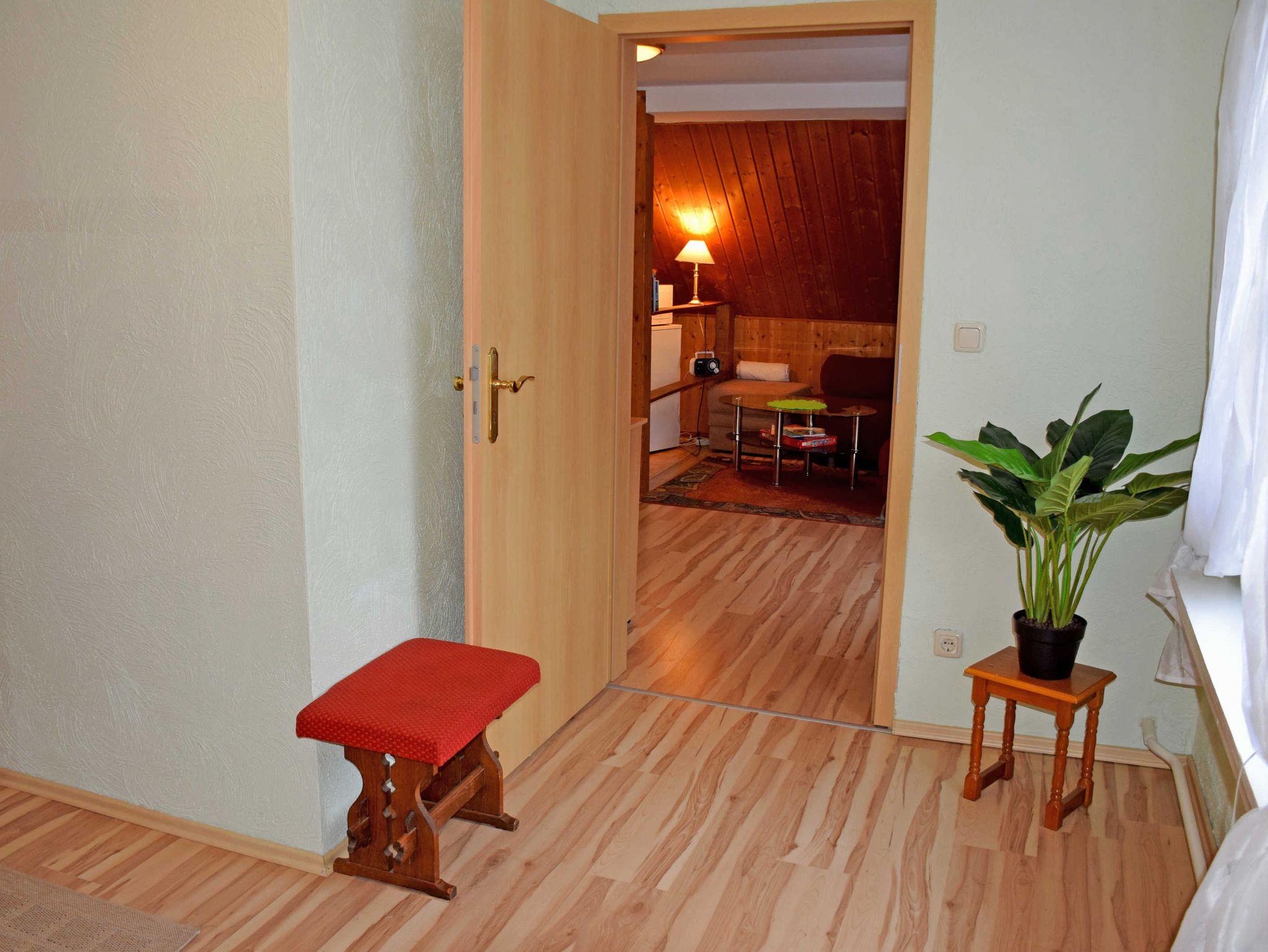 Die beiden Wohnungen liegen in der ersten Etage und verfügen über einen separaten Eingangsbereich. Neben dem Haus kann eine Terrasse mit Gartenmöbeln und Grill genutzt werden. Hinter dem Grundstück liegt ein kleines Wäldchen mit Spielplatz. Bei Ihrer Anreise liegen frische Handtücher bereit und die Betten sind selbstverständlich bereits mit Bettwäsche bezogen. Bei uns können Sie übrigens schon sehr frühzeitig ab 10 Uhr anreisen!! Ausreichend Parkplätze befinden sich direkt am Haus. Für Ihre mitgebrachten Fahrräder steht eine Unterstellmöglichkeit zur Verfügung. Bis zur Bus-Haltestelle des öffentlichen Nahverkehrs sind es nur ca. 50 Meter.