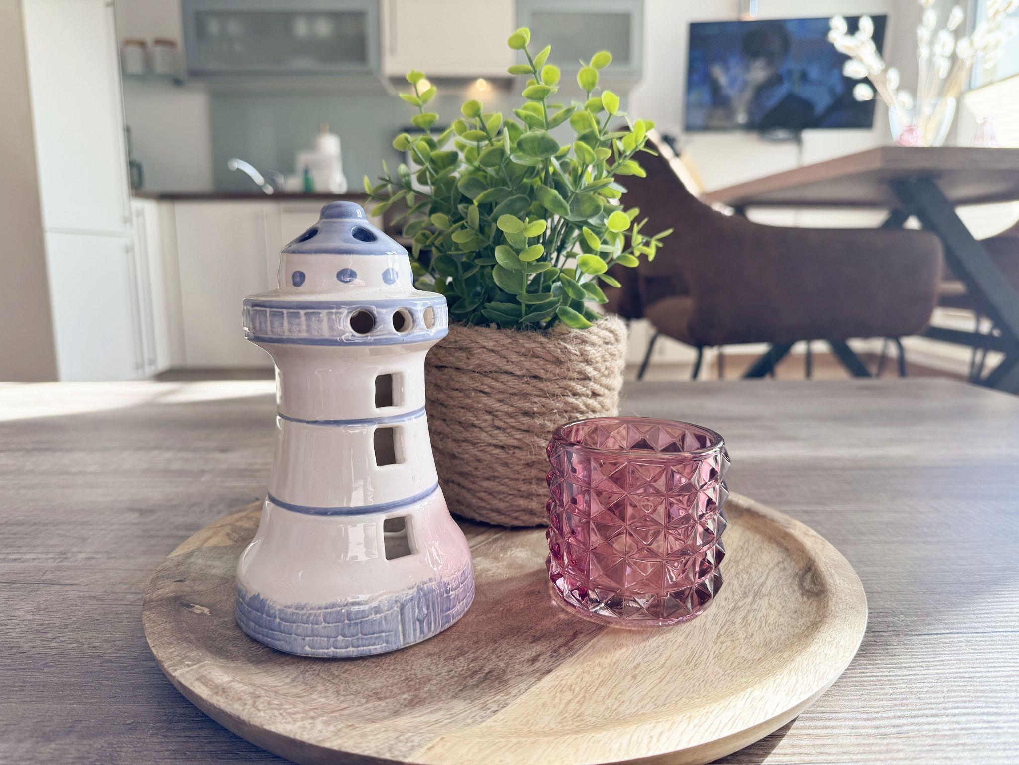 Die Nichtraucherferienwohnung Nr. 07 LUISA befindet sich im Obergeschoss des Hauses und verfügt über eine Wohnfläche von ca. 66 qm, die sich auf 2. Etagen verteilen. Die Maisonettewohnung ist für 2 bis max. 4 Personen ausgelegt. Im kombinierten Wohn- und Essbereich befindet sich eine integrierte Küchenzeile. Die komplett ausgestattete Küchenzeile verfügt über ein Cerankochfeld, Backofen, Dunstabzugshaube, Kühlschrank mit Gefrierfach, Spülmaschine, Kaffeemaschine, Mikrowelle, Wasserkocher, Toaster und weitere diverse Küchenutensilien. Der Esstisch mit Bestuhlung ist für 4 Personen geeignet. Vom Wohnbereich aus gelangen Sie auf den großzügigen Balkon mit Tisch und 4 Stühlen, welcher in Richtung Süden ausgerichtet ist. Weiterhin befinden sich im Wohnbereich ein 3-Sitzer, ein 2-Sitzer, ein Sessel mit kleinem Couchtisch sowie ein Flachbildfernseher zur Unterhaltung. Auch im Urlaub brauchen Sie auf einen Internetanschluss (WLAN) nicht verzichten. Dieser ist für Sie inklusive. Die beiden Schlafzimmer mit je einem Doppelbett (1,60m x 2,00m/ H2/H3) und Nachttischkonsolen sind durch eine Treppe vom Wohnbereich aus erreichbar. Das komfortable Bad rundet mit einem WC, Waschbecken, Dusche und Handtuchwärmeheizkörper die Wohnung komplett ab. In allen Räumen sorgt eine Fußbodenheizung für angenehme Wärme. Ein eigener PKW-Stellplatz Nr. 07 befindet sich auf dem Grundstück. Mitgebrachte oder gemietete Fahrräder können im wohnungseigenen Abstellraum untergestellt werden. Haustiere sind ist in der Wohnung nicht erlaubt. Die Erstausstattung eines Wäschepaketes (komplette Bettwäsche, 1 Duschhandtuch, 2 kleine Handtücher) können Sie bis 14 Tage vor Anreise gegen einen Aufpreis dazu buchen oder durch eigene ergänzen. Ab 2 gebuchten Paketen erhalten Sie einmalig 1 Geschirrhandtuch und 1 Duschvorleger dazu.