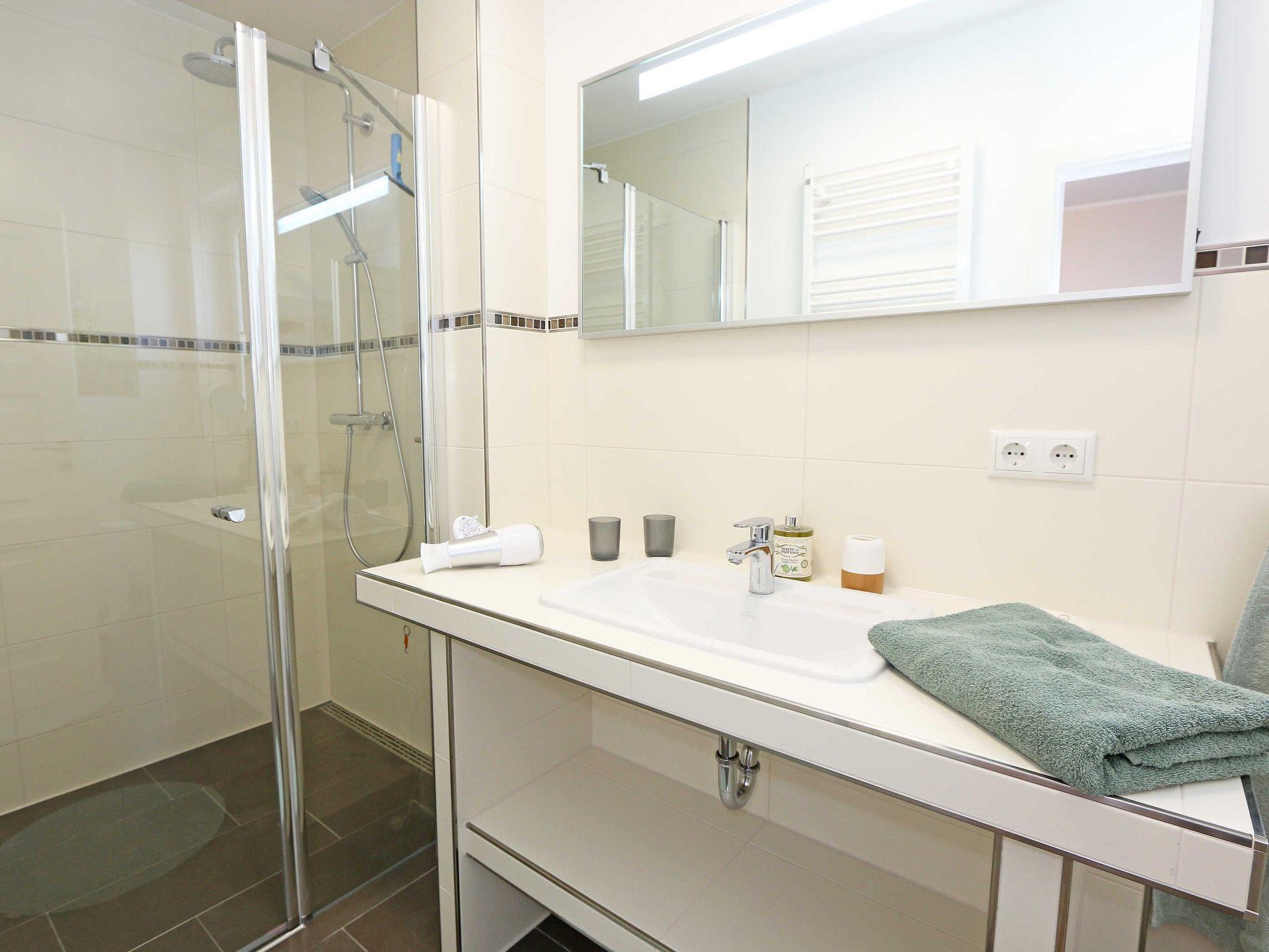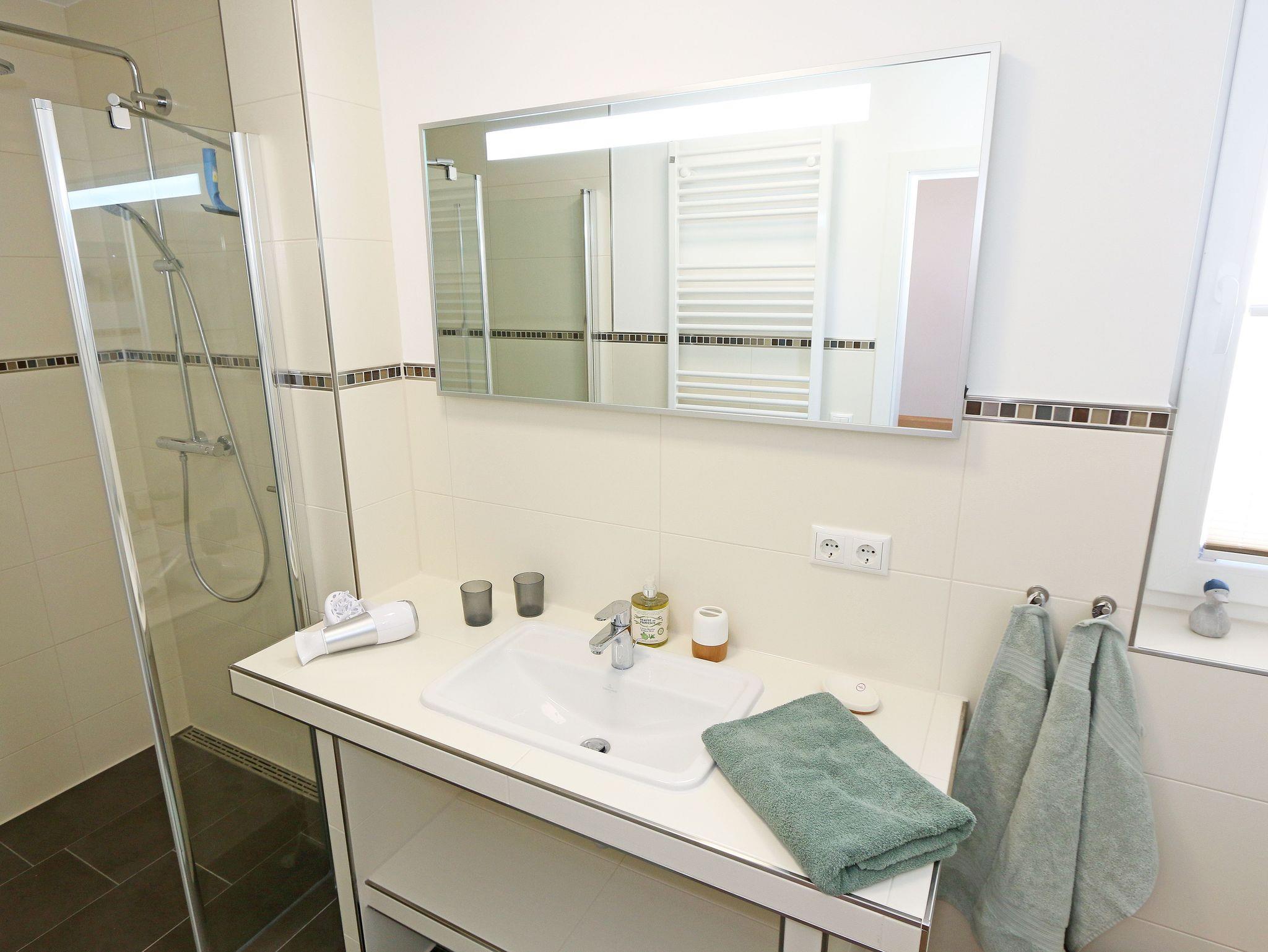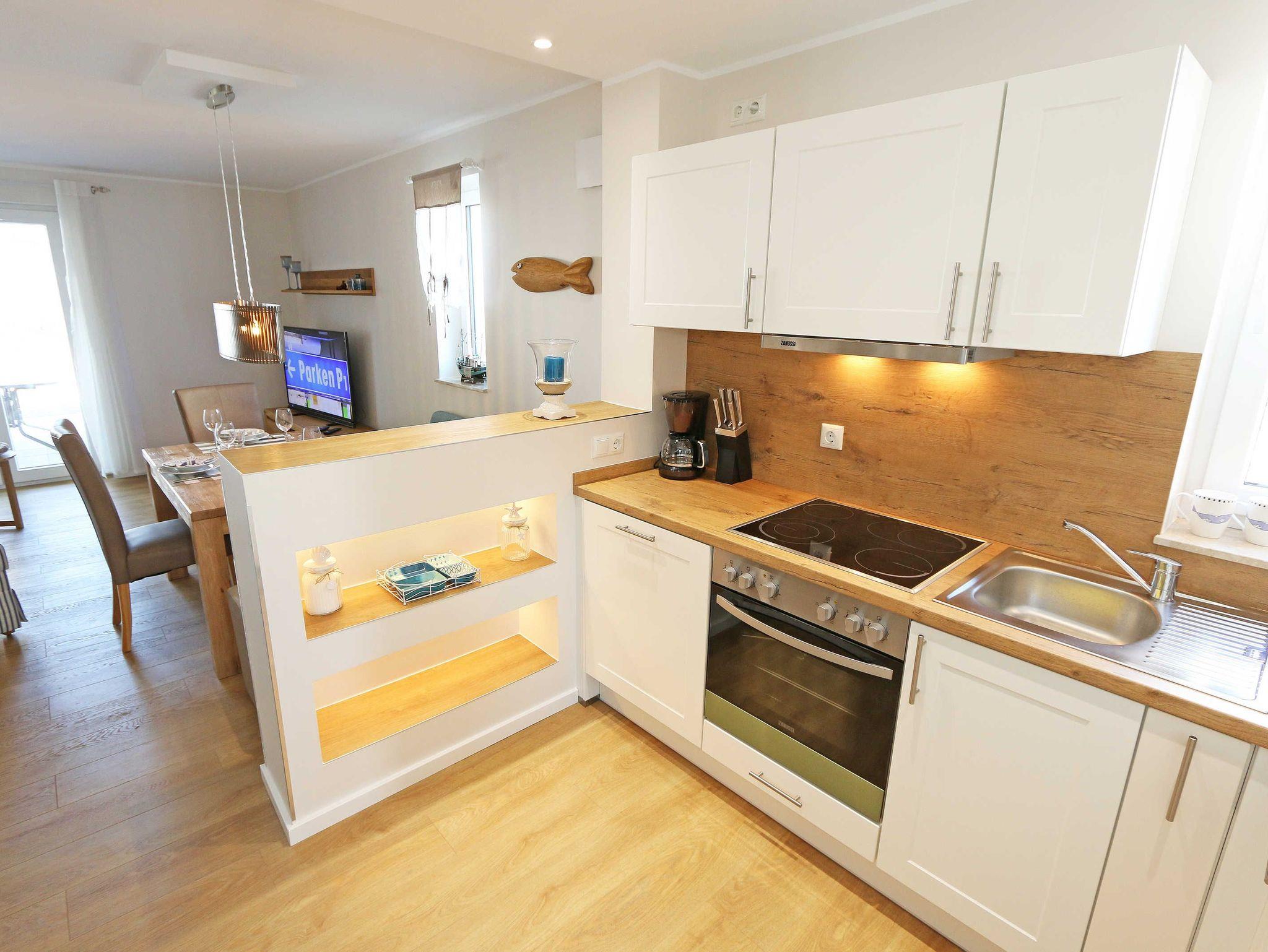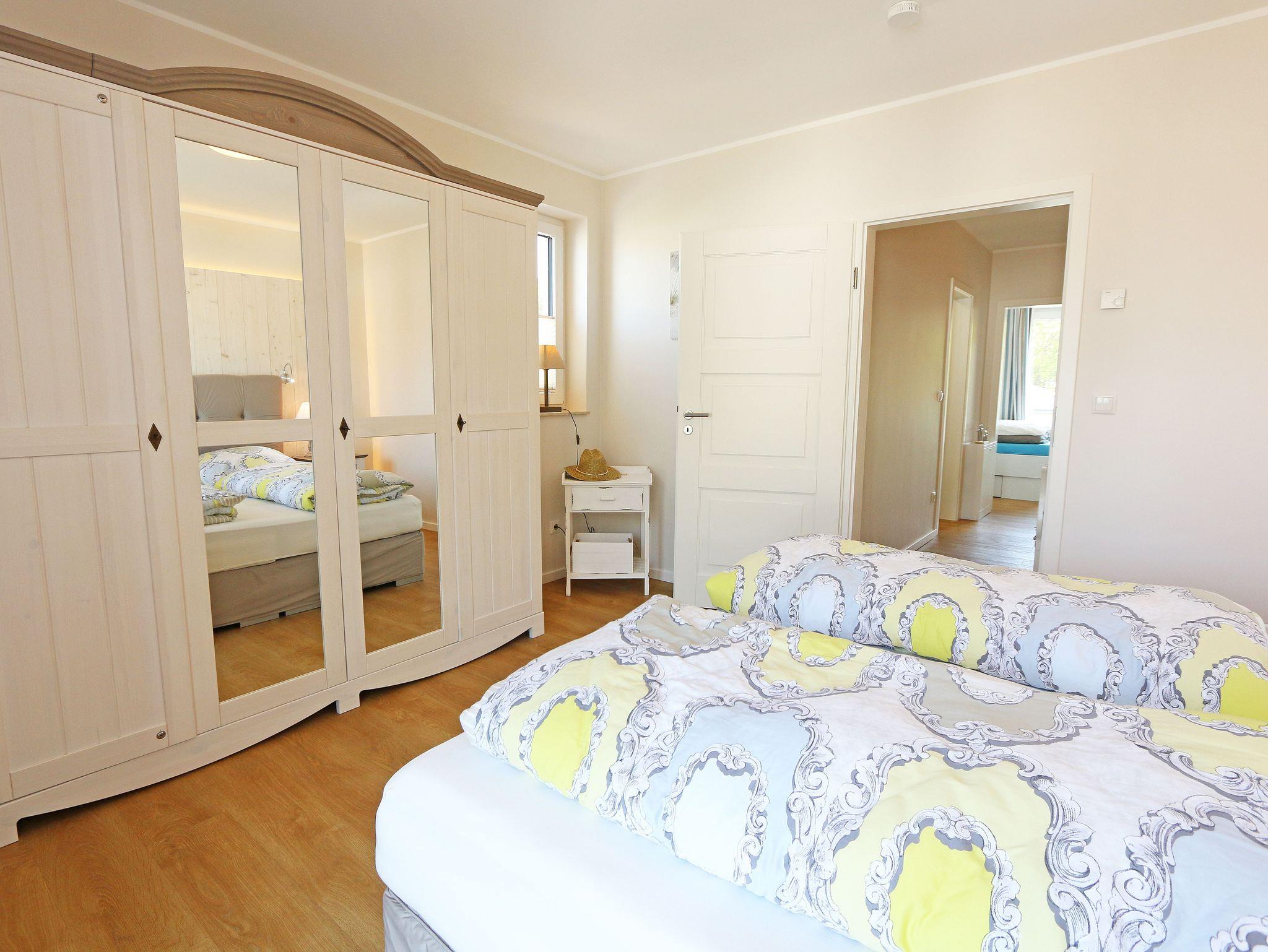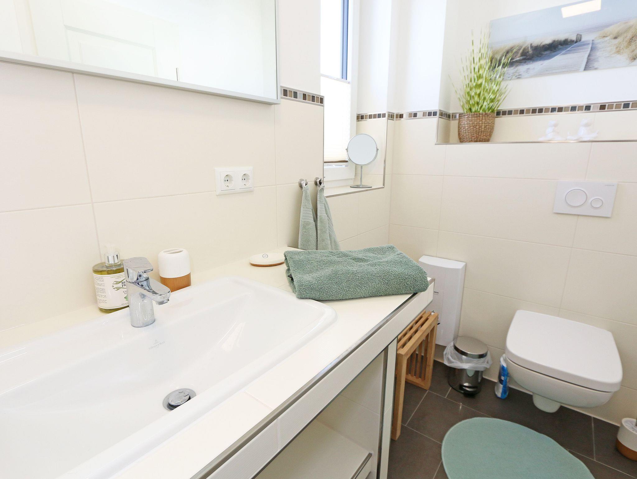 Die 81 qm große Nichtraucherferienwohnung Seehase erstreckt sich über 2 Etagen und bietet Ihnen Platz für 2 bis 4 Personen. Im Erdgeschoss befindet sich ein freundlicher Eingangsbereich mit einer Garderobe und einer Sitzgelegenheit. Daran schließt sich ein Gäste-WC mit Waschplatz. Der offene Wohn-Essbereich ist ausgestattet mit einer gemütlichen Couch, ein Couchtisch, eine Leselampe, ein Lowboard mit großer Smart-TV, mit Blu-Ray-Player, ein DAB-Radio-CD-Player mit USB sowie eine kleine Sammlung an Büchern und Gesellschaftsspielen laden zum Entspannen und Relaxen ein. Auch auf einen Internetzugang (WLAN) müssen Sie im Urlaub nicht verzichten. Dieser ist für Sie inklusive. Im angrenzenden Essbereich steht ein großer Esstisch mit Stühlen und Sitzbank für ein gemütliches Beisammen zur Verfügung. Die offene und integrierte Eck-Küchenzeile mit einem Kühlschrank mit Gefrierfach, einen Geschirrspüler, 4 Zonen Ceranfeld mit Backofen, eine Mikrowelle, eine Kaffeemaschine, Nespresso Maschine, einen Toaster, einen Wasserkocher sowie diverse Küchenutensilien bietet Ihnen somit alles, was man zum Kochen benötigt. Vom Wohnbereich gelangen Sie direkt auf die bestuhlte Terrasse (Süd/West) mit Sonnenschirm. Über eine Treppe vom Wohnbereich gelangen Sie in die obere Etage wo sich die Schlafräume sowie das vollwertige Badezimmer befinden. Das große Schlafzimmer verfügt über ein Boxspringbett (1,80m x 2,00m), mit Nachttischablagen und einem großen Kleiderschrank. Von hier haben Sie den direkten Zugang zum Balkon (Süd/West) wo Sie nicht nur am Tag, sondern auch in den Abendstunden in der Relax Muschel Zeit verbringen können. Das kleine Schlafzimmer ist mit einem Doppelbett (1,60m x 2,00m) und zwei kleinen Schränken sowie ein Flachbild-TV ausgestattet. Das moderne Tageslichtbad mit Waschplatz, WC, Fön, Kosmetikspiegel, einer ebenerdigen Glasdusche und einem Handtuchtrockner runden den Sanitärbereich ab. Alle Räumlichkeiten sind mit einer Fußbodenheizung ausgestattet und können durch Fensterläden verdunkelt werden. Der PKW kann auf dem kostenfreien Stellplatz (Nr.01) direkt vor dem Haus geparkt werden. Gerne dürfen Sie 1 Hund gegen eine Gebühr mitbringen. Da kein Schlafplatz (Körbchen, Decke, etc.) vorhanden ist, bringen Sie bitte Ihr eigenes ?Bettchen? für den Hund mit. Direkt am Haus befindet sich ein Grillplatz mit Sitzgelegenheiten. Ihre mitgebrachten oder geliehenen Fahrräder können Sie in den zur Wohnung gehörenden Abstellraum unterbringen. Die Erstausstattung eines Wäschepaketes (komplette Bettwäsche, 1 Duschhandtuch, 2 kleine Handtücher) können Sie bis 14 Tage vor Anreise gegen einen Aufpreis dazu buchen oder durch eigene ergänzen. Ab 2 gebuchten Paketen erhalten Sie einmalig 1 Geschirrhandtuch und 1 Duschvorleger hinzu. Wir wünschen Ihnen einen traumhaften Urlaub an der Ostsee, erholen Sie sich gut und genießen Sie die Zeit.