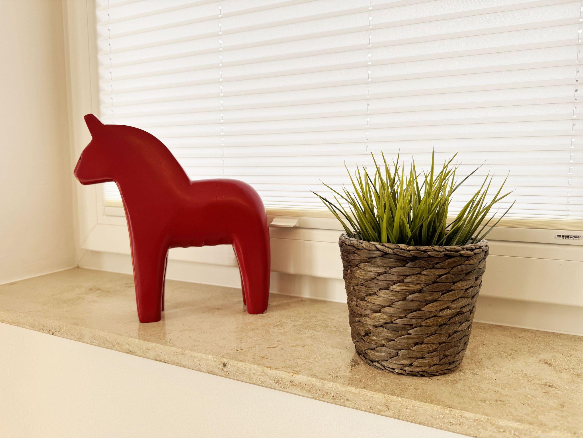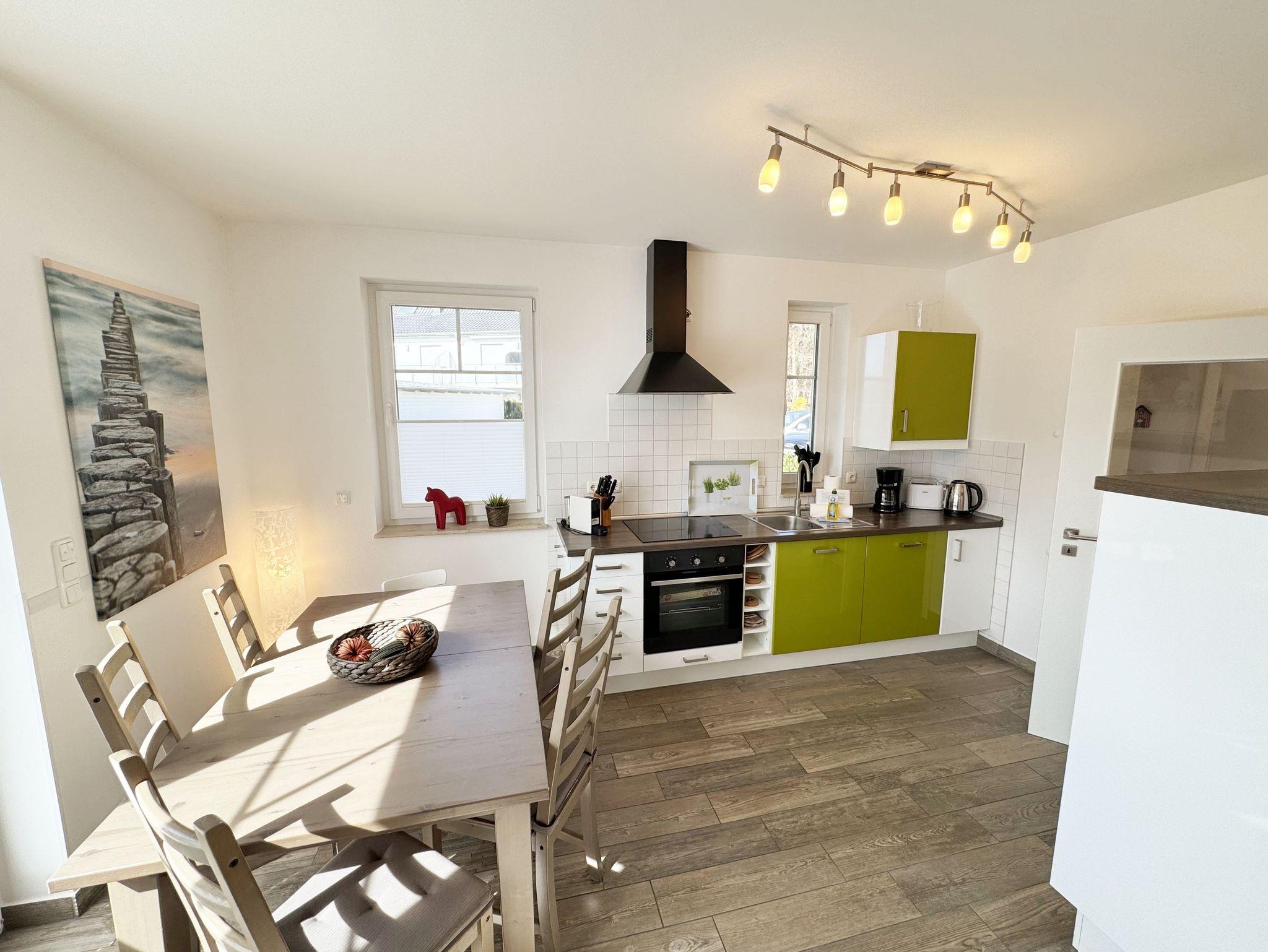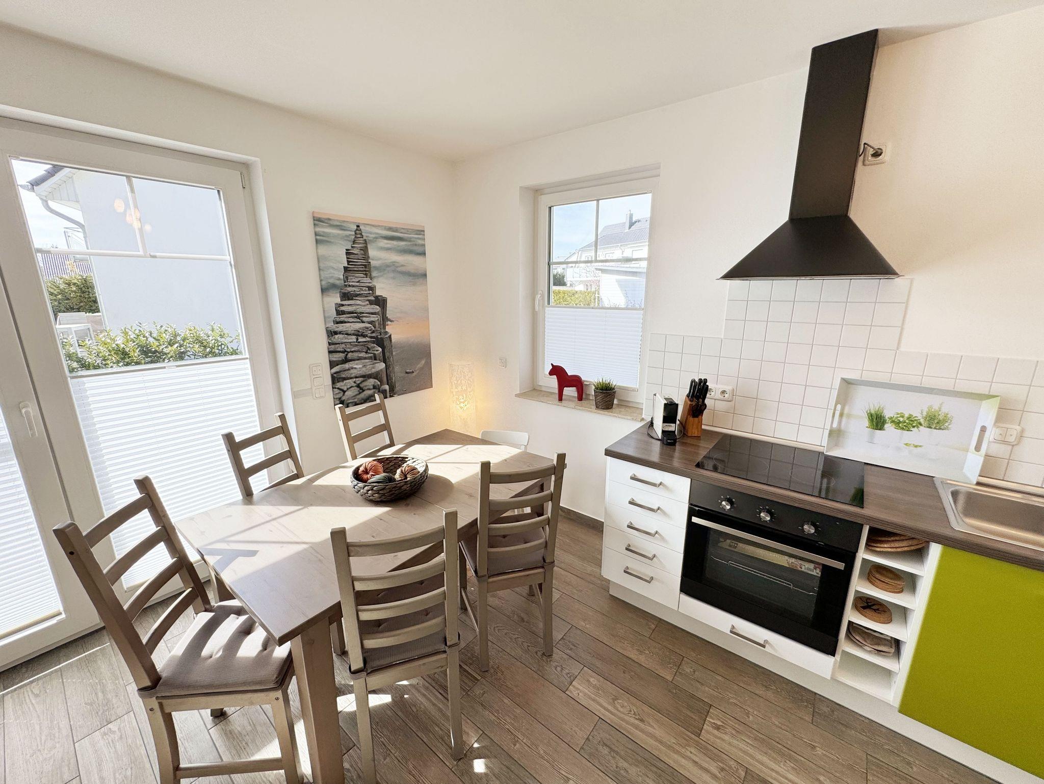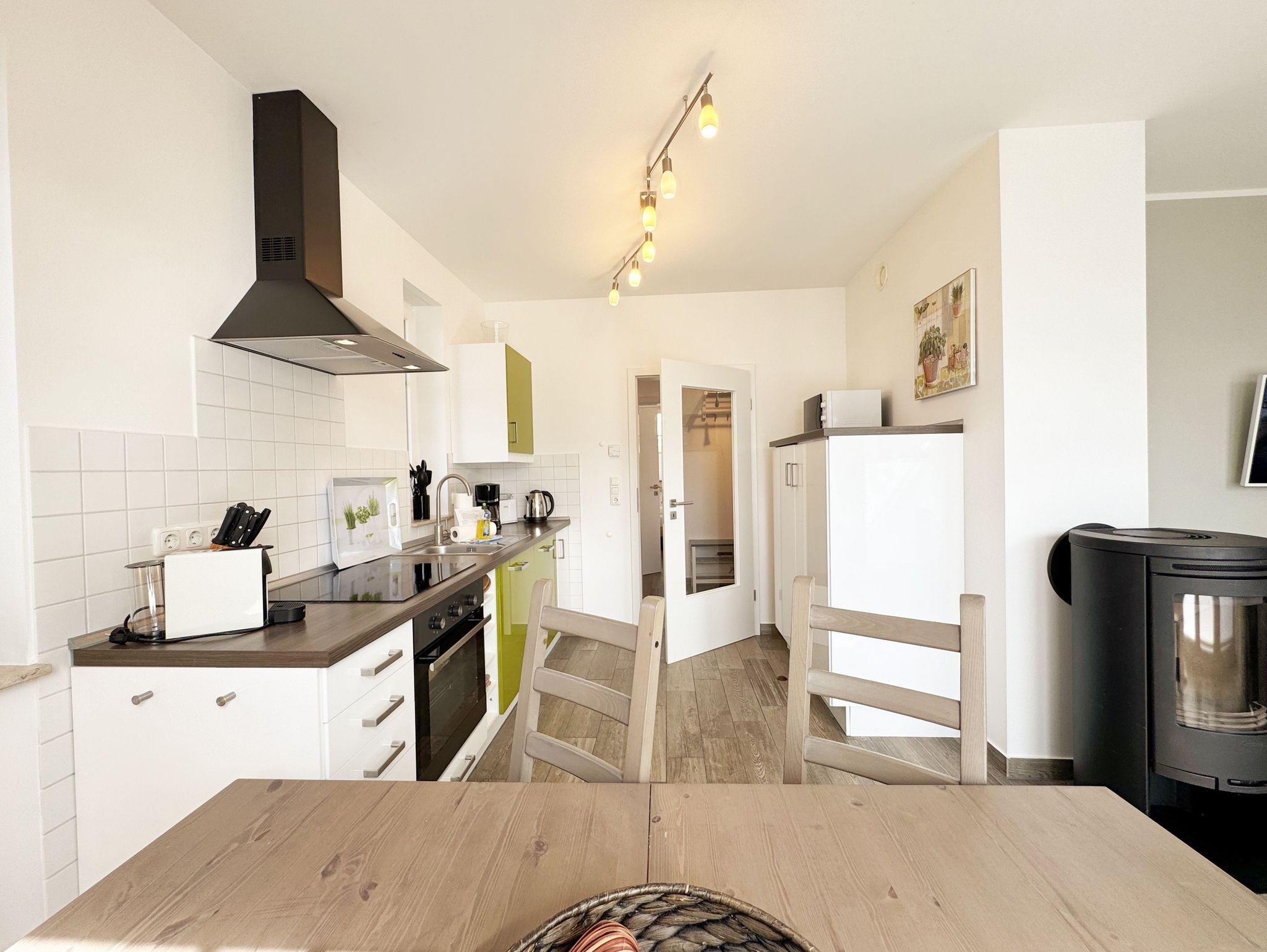Die komfortable ca. 65 m² große, lichtdurchflutete 3-Zimmer-Wohnung (Nichtraucher) befindet sich im Erdgeschoss des Hauses Möwe. Sie ist über einen überdachten und separaten Eingang an der Giebelseite des Hauses zu erreichen und perfekt für 2 bis 4 Erwachsene +1 Kleinkind bis 3 Jahre im Kinderreisebett. Im Flur finden Sie eine Garderobe nebst Sitzbank, von wo Sie auch alle Räumlichkeiten erreichen. Der kombinierte Wohn-/Essbereich ist mit einer gemütlichen Couchecke samt Couchtisch und einer Stehlampe, einem Smart-TV und einer Mini-Stereo-Anlage incl. USB-Anschluss ausgestattet. Abgerundet wird es durch einen WLAN-Zugang. Für gemütliche Stunden in der kalten Jahreszeit steht Ihnen zusätzlich ein Kaminofen zur Verfügung. Angrenzend zum Wohnbereich befindet sich die moderne Küchenzeile mit einem Cerankochfeld, einem Backofen, einer Mikrowelle, einem Geschirrspüler, einem Kühlschrank mit Gefrierfach, einer Kaffeemaschine, einem Wasserkocher, einer Nespresso Maschine, einem Toaster und anderen praktischen Küchenutensilien. Ergänzend passt sich der Esstisch an. Von hier gelangen Sie auf Ihre ca. 16m² große und bestuhlte Südwest-Terrasse mit einem Sonnenschirm sowie einen zugehörigen kleinem Gartenanteil und Holzkohlegrill. Das große Schlafzimmer verfügt über ein Doppelbett (1,80m x 2,00m), verstellbare Lattenroste, Nachttischablagen und einen geräumigen Kleiderschrank mit Safe. Im kleinen Schlafzimmer befinden sich zwei Einzelbetten (0,90m x 2,00m) mit verstellbaren Lattenrosten und zwei Kommoden. Für einen ruhigen Schlaf sorgen zusätzlich Plissees, elektrische Außenrollos sowie Insektenschutzgitter. Zum innenliegenden Badezimmer gehören eine Dusche mit flachem Einstieg, ein Waschplatz, ein WC, ein beheizter Handtuchhalter, eine Waschmaschine, einen Fön sowie einen Kosmetikspiegel. In der kleinen vom Flur aus erreichbarer Abstellkammer stehen für Sie ein Staubsauger, ein Wäscheständer und Reinigungsutensilien bereit. Alle Räumlichkeiten sind mit durchgehend holzlimitierten Steinfußböden, einer Fußbodenheizung und einer automatischen Be- und Entlüftung ausgestattet. Haustiere sind nicht erlaubt. Der zur Wohnung gehörende PKW-Stellplatz (Nr.03) liegt vis-a-vis Ihrer Eingangstür. Auch der exklusiv durch Sie nutzbare großzügige Abstellraum (Nr. 03) für Ihre oder geliehene Fahrräder, Surf- und Strandutensilien befindet sich in unmittelbarer Nähe auf dem Grundstück. Die Erstausstattung eines Wäschepaketes (komplette Bettwäsche, 1 Duschhandtuch, 2 kleine Handtücher) können Sie bis 14 Tage vor der Anreise gegen einen Aufpreis dazu buchen oder durch eigene ergänzen. Ab 2 gebuchten Paketen erhalten Sie einmalig 1 Geschirrtuch und einen Duschvorleger dazu.