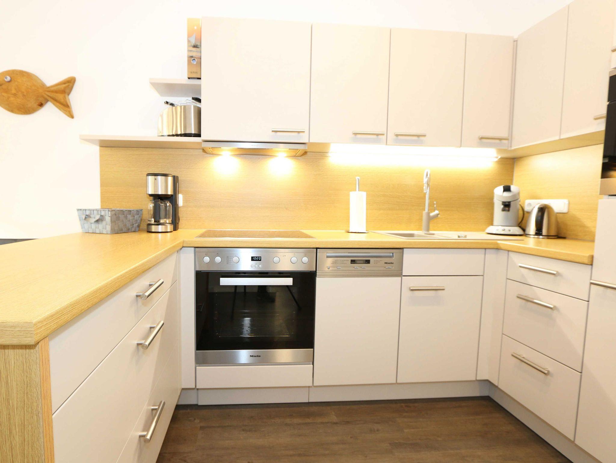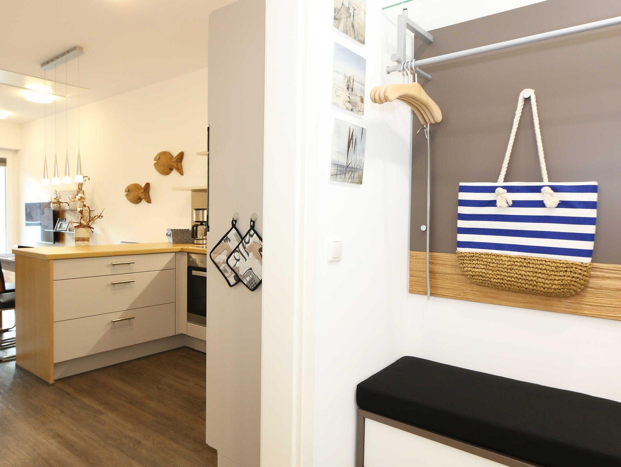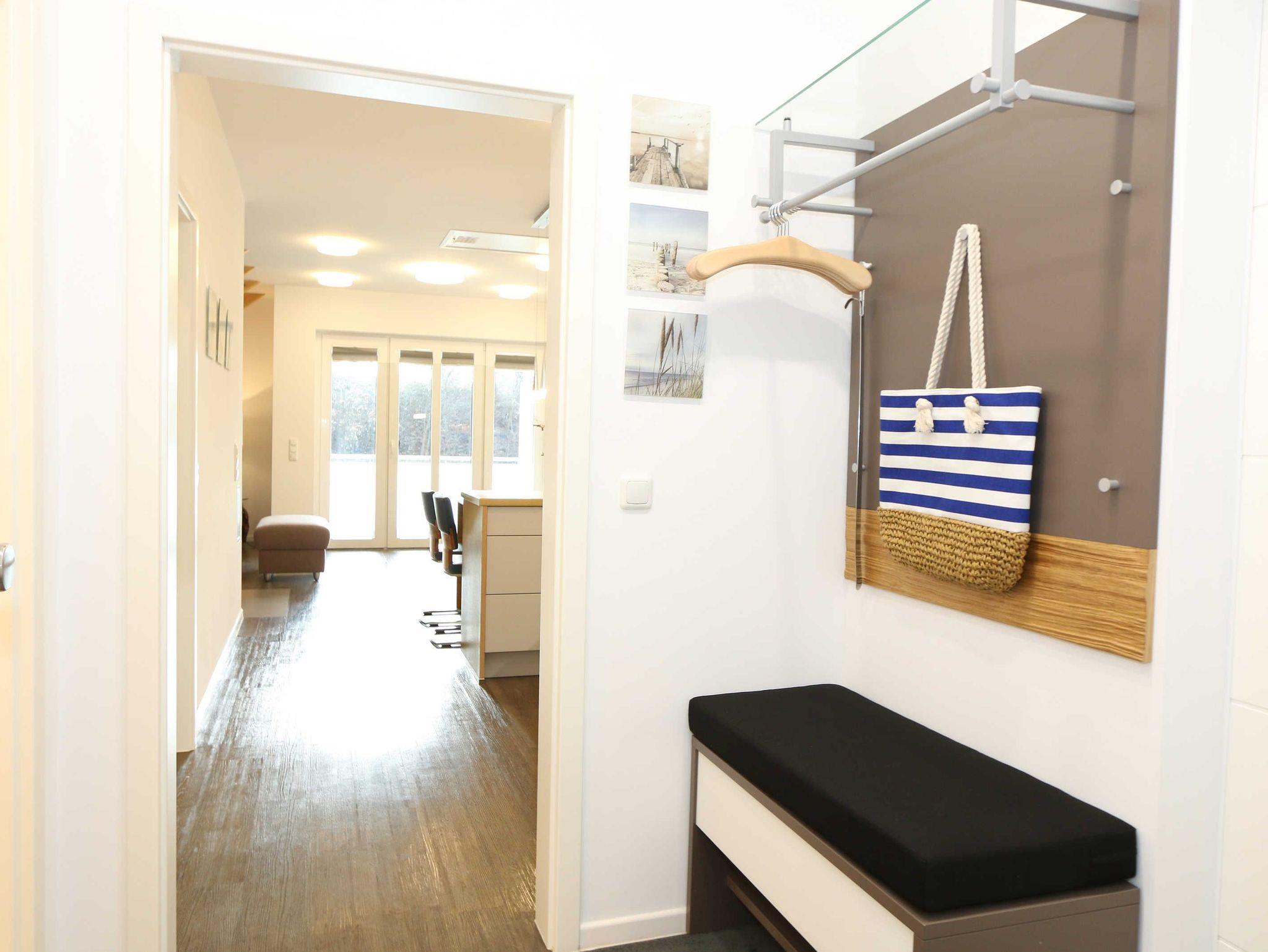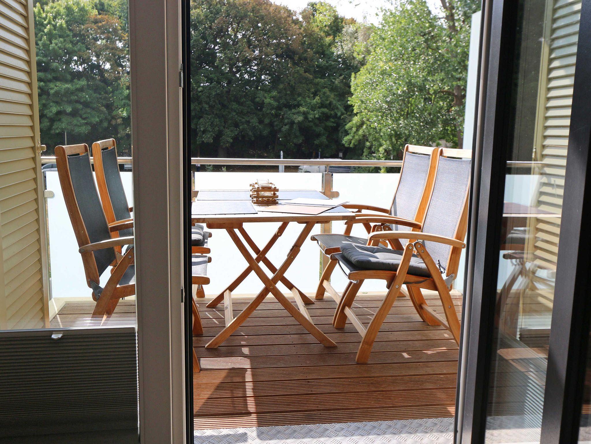 Das komfortabel und stilvoll eingerichtete Feriendomizil besticht durch viele mit Liebe zum Detail ausgesuchte Accessoires und einen traumhaften Balkonblick nach Süden auf den Lotsenberg. Die ca. 58 m² große Nichtraucherwohnung im 1. Obergeschoss ist mit Fußbodenheizung ausgestattet und bietet Ihnen Platz für 2 bis 4 Personen. Öffnen Sie die Wohnungstür und Sie betreten den hellen Flur mit Flurgarderobe nebst Sitzgelegenheit und bodentiefem Spiegel. Im vorderen Wohnbereich befindet sich eine hochwertige Küchenzeile mit Mikrowelle, Kühlschrank mit Gefrierfach, Backofen, Induktionskochfeld und Geschirrspüler. Auch Elektrogeräte wie Kaffeemaschine, Pad-Maschine (Senseo), Wasserkocher, Eierkocher, Toaster und Handmixer sowie viele andere nützliche Küchenhelfer sind hier vorhanden. Direkt dahinter fügt sich ein mit großem Eichen-Massivholztisch, modernen Freischwing-Stühlen und einer bequemen Sitzbank ausgestatteter Essbereich an. Von hier aus können Sie bereits beim Frühstück die Morgensonne durch die bodentiefen Wohnzimmerfenster genießen. Angrenzend öffnet sich der Raum zum großzügigen Wohnbereich, in dem Sie auf einer gemütlichen Sitzlandschaft - die sich mit wenigen Handgriffen zur vollwertigen Schlafgelegenheit ausklappen lässt ? entspannen können. Das komplette Ensemble, bestehend aus Couch mit Longchair (1,40 m x 2,00 m), Eiche-Couchtisch, Hockerbank und Beistelltisch mit Tischlampe im maritimen Stil, befindet sich auf der einen; ein Lowboard mit einer Spielesammlung, einem Smart-TV, Blu-Ray-Player und einer HiFi-Anlage mit Bluetooth und USB-Anschluss auf der anderen Seite. Auch auf einen Internetanschluss (WLAN) müssen Sie im Urlaub nicht verzichten. Dieser ist für Sie inklusive. In der kühlen Jahreszeit sorgt ein exklusiver Design-Kaminofen zusätzlich für wohlige Wärme. Durch die nach Süden ausgerichtete Glasfront des Wohnbereiches betreten Sie den mit Bangkirai belegten und mit einer Teakholz-Sitzgruppe möblierten Balkon mit Insektenschutzgitter und Sonnenschirm. Von hier aus genießen Sie einen herrlichen Blick ins Grüne, während Sie vor neugierigen Blicken durch eine mit Milchglas ausgefachte Edelstahl-Balkonbrüstung geschützt sind. Da sich der Balkon windgeschützt in das Obergeschoß einfügt und großzügig überdacht ist, können Sie hier auch die Abende genießen. Erholsame Ruhe finden Sie im geräumigen Schlafzimmer, in dem ein herrlich bequemes, individuell einstellbares Doppelbett (1,80 m x 2,00 m) in Komforthöhe mit verstellbaren Lattenrosten auf Sie wartet. Das elektrisch betriebene große Dachfenster, kann für einen ungestörten Schlaf völlig abgedunkelt werden und verfügt darüber hinaus über ein Insektenschutz-Rollo. Zwei Nachttischablagen mit dezenten Lampen laden zum Schmökern ein. Ein weiterer Smart-TV befindet sich hier an der Wand. In zwei großen Kleiderschränken sowie einer breiten Schubkastenkommode und auf 2 Herrendienern findet Ihre Kleidung Platz. Das geräumige, innenliegende Bad verfügt über eine große und bodentiefe Echtglas-Dusche, WC, einen Kosmetikspiegel, einen Fön, Ablageflächen und neben der Fußbodenheizung auch über einen elektrischen Handtuchtrockner. Im Abstellraum finden Sie unter anderem Staubsauger, Aschesauger für den Kamin, diverse Reinigungsutensilien, Wäscheständer sowie Balkonauflagen. Haustiere sind nicht erlaubt. Ihr PKW steht auf einem zur Wohnung gehörenden Stellplatz Nr. 06. Ihre mitgebrachten oder auch geliehenen Fahrräder sowie Strandutensilien und Co. können Sie im eigenen Schuppen aufbewahren. Hier befindet sich auch eine Anschlussmöglichkeit zum Aufladen von Ihren E-Bikes. Die Erstausstattung eines Wäschepaketes (komplette Bettwäsche, 1 Duschhandtuch, 2 kleine Handtücher) können Sie bis 14 Tage vor Anreise gegen einen Aufpreis dazu buchen oder durch eigene ergänzen. Ab 2 gebuchten Paketen erhalten Sie einmalig 1 Geschirrhandtuch und 1 Duschvorleger hinzu.