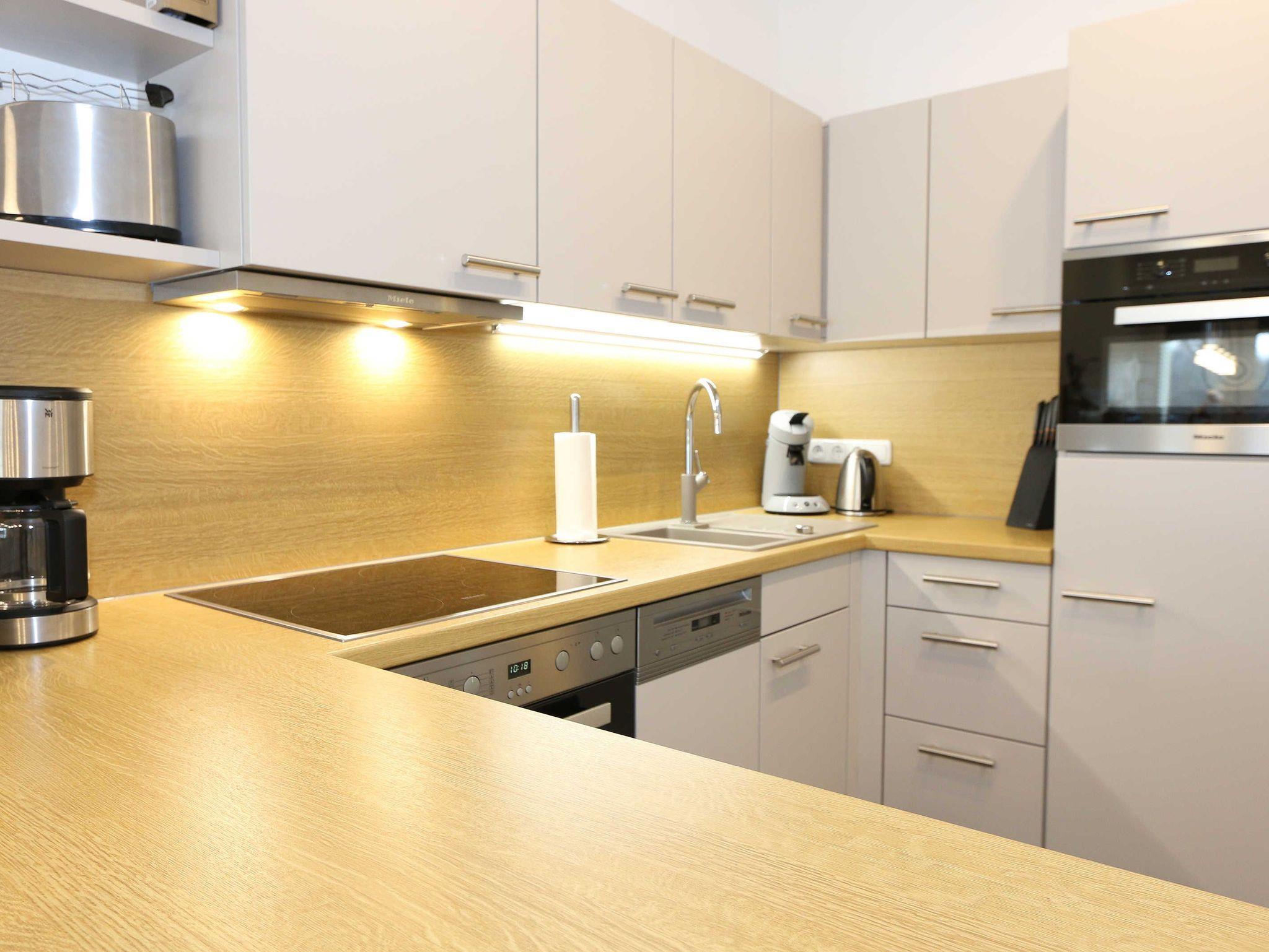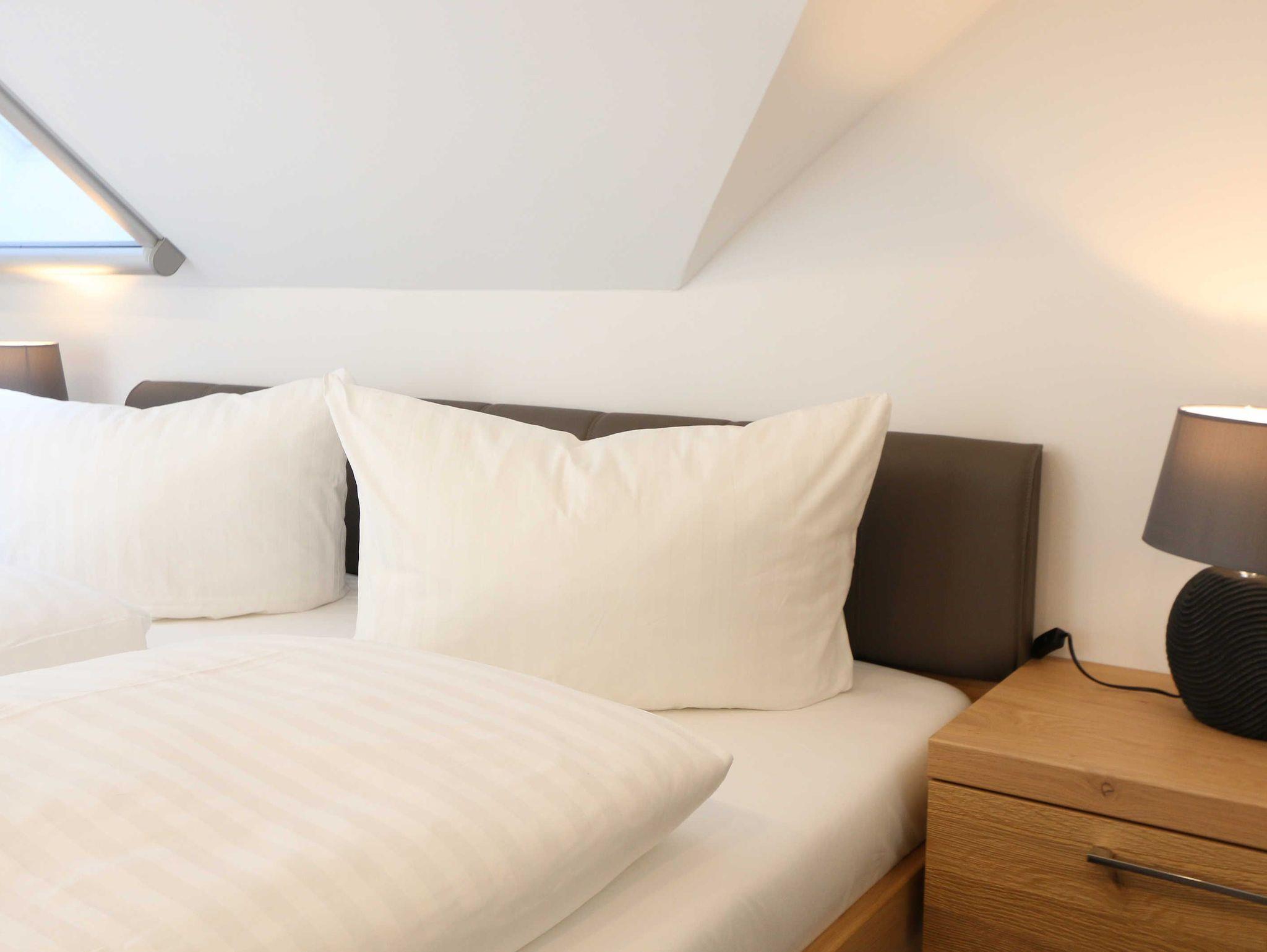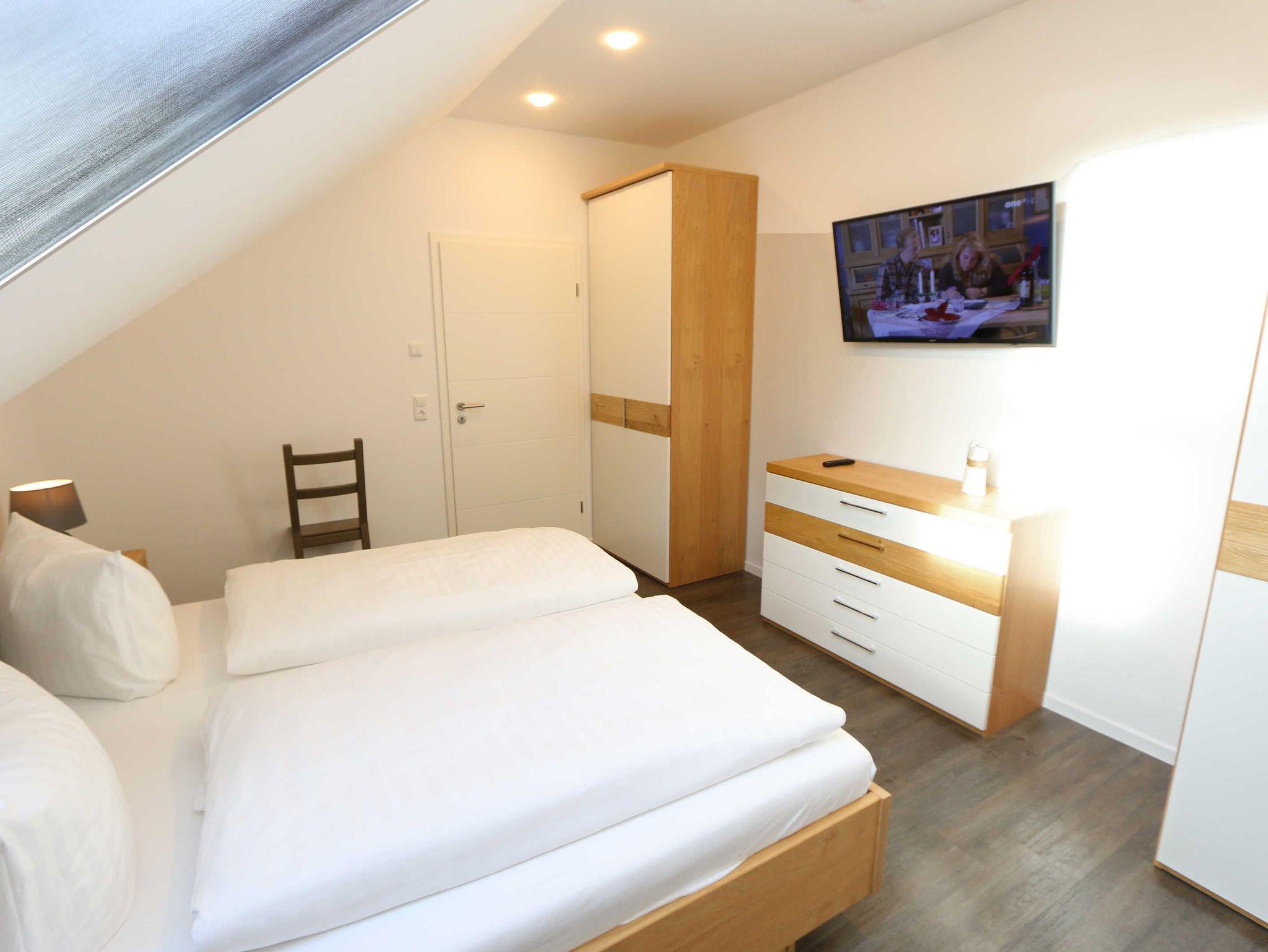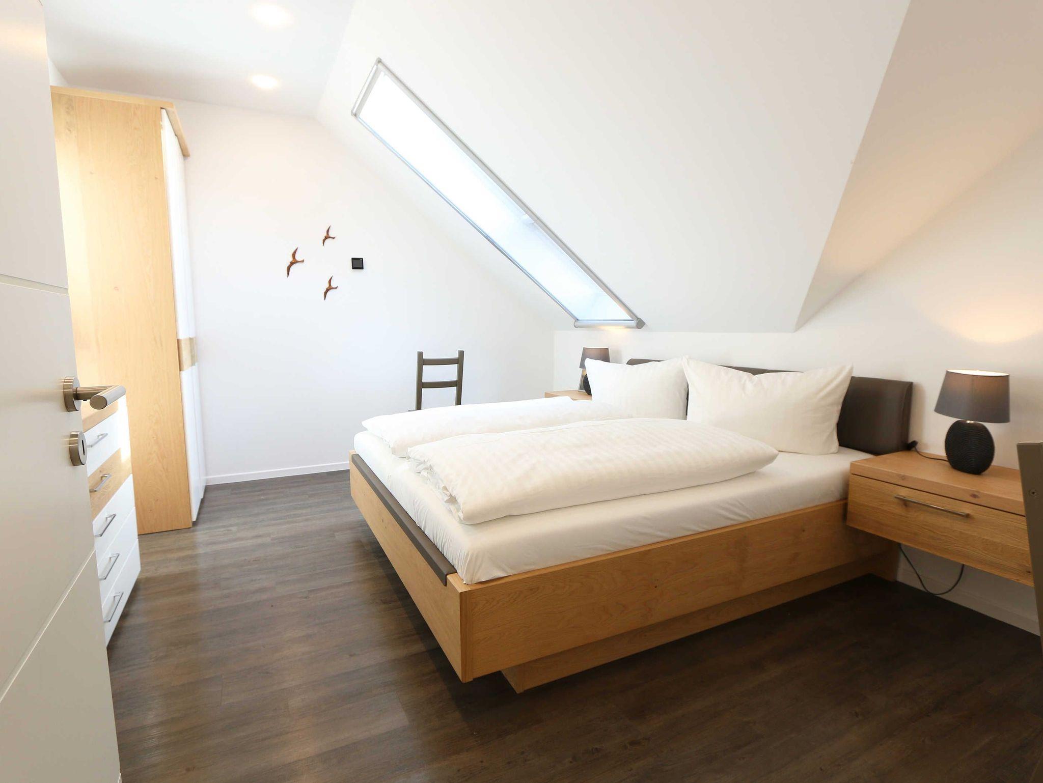 Das komfortabel und stilvoll eingerichtete Feriendomizil besticht durch viele mit Liebe zum Detail ausgesuchte Accessoires und einen traumhaften Balkonblick nach Süden auf den Lotsenberg. Die ca. 58 m² große Nichtraucherwohnung im 1. Obergeschoss ist mit Fußbodenheizung ausgestattet und bietet Ihnen Platz für 2 bis 4 Personen. Öffnen Sie die Wohnungstür und Sie betreten den hellen Flur mit Flurgarderobe nebst Sitzgelegenheit und bodentiefem Spiegel. Im vorderen Wohnbereich befindet sich eine hochwertige Küchenzeile mit Mikrowelle, Kühlschrank mit Gefrierfach, Backofen, Induktionskochfeld und Geschirrspüler. Auch Elektrogeräte wie Kaffeemaschine, Pad-Maschine (Senseo), Wasserkocher, Eierkocher, Toaster und Handmixer sowie viele andere nützliche Küchenhelfer sind hier vorhanden. Direkt dahinter fügt sich ein mit großem Eichen-Massivholztisch, modernen Freischwing-Stühlen und einer bequemen Sitzbank ausgestatteter Essbereich an. Von hier aus können Sie bereits beim Frühstück die Morgensonne durch die bodentiefen Wohnzimmerfenster genießen. Angrenzend öffnet sich der Raum zum großzügigen Wohnbereich, in dem Sie auf einer gemütlichen Sitzlandschaft - die sich mit wenigen Handgriffen zur vollwertigen Schlafgelegenheit ausklappen lässt ? entspannen können. Das komplette Ensemble, bestehend aus Couch mit Longchair (1,40 m x 2,00 m), Eiche-Couchtisch, Hockerbank und Beistelltisch mit Tischlampe im maritimen Stil, befindet sich auf der einen; ein Lowboard mit einer Spielesammlung, einem Smart-TV, Blu-Ray-Player und einer HiFi-Anlage mit Bluetooth und USB-Anschluss auf der anderen Seite. Auch auf einen Internetanschluss (WLAN) müssen Sie im Urlaub nicht verzichten. Dieser ist für Sie inklusive. In der kühlen Jahreszeit sorgt ein exklusiver Design-Kaminofen zusätzlich für wohlige Wärme. Durch die nach Süden ausgerichtete Glasfront des Wohnbereiches betreten Sie den mit Bangkirai belegten und mit einer Teakholz-Sitzgruppe möblierten Balkon mit Insektenschutzgitter und Sonnenschirm. Von hier aus genießen Sie einen herrlichen Blick ins Grüne, während Sie vor neugierigen Blicken durch eine mit Milchglas ausgefachte Edelstahl-Balkonbrüstung geschützt sind. Da sich der Balkon windgeschützt in das Obergeschoß einfügt und großzügig überdacht ist, können Sie hier auch die Abende genießen. Erholsame Ruhe finden Sie im geräumigen Schlafzimmer, in dem ein herrlich bequemes, individuell einstellbares Doppelbett (1,80 m x 2,00 m) in Komforthöhe mit verstellbaren Lattenrosten auf Sie wartet. Das elektrisch betriebene große Dachfenster, kann für einen ungestörten Schlaf völlig abgedunkelt werden und verfügt darüber hinaus über ein Insektenschutz-Rollo. Zwei Nachttischablagen mit dezenten Lampen laden zum Schmökern ein. Ein weiterer Smart-TV befindet sich hier an der Wand. In zwei großen Kleiderschränken sowie einer breiten Schubkastenkommode und auf 2 Herrendienern findet Ihre Kleidung Platz. Das geräumige, innenliegende Bad verfügt über eine große und bodentiefe Echtglas-Dusche, WC, einen Kosmetikspiegel, einen Fön, Ablageflächen und neben der Fußbodenheizung auch über einen elektrischen Handtuchtrockner. Im Abstellraum finden Sie unter anderem Staubsauger, Aschesauger für den Kamin, diverse Reinigungsutensilien, Wäscheständer sowie Balkonauflagen. Haustiere sind nicht erlaubt. Ihr PKW steht auf einem zur Wohnung gehörenden Stellplatz Nr. 06. Ihre mitgebrachten oder auch geliehenen Fahrräder sowie Strandutensilien und Co. können Sie im eigenen Schuppen aufbewahren. Hier befindet sich auch eine Anschlussmöglichkeit zum Aufladen von Ihren E-Bikes. Die Erstausstattung eines Wäschepaketes (komplette Bettwäsche, 1 Duschhandtuch, 2 kleine Handtücher) können Sie bis 14 Tage vor Anreise gegen einen Aufpreis dazu buchen oder durch eigene ergänzen. Ab 2 gebuchten Paketen erhalten Sie einmalig 1 Geschirrhandtuch und 1 Duschvorleger hinzu.