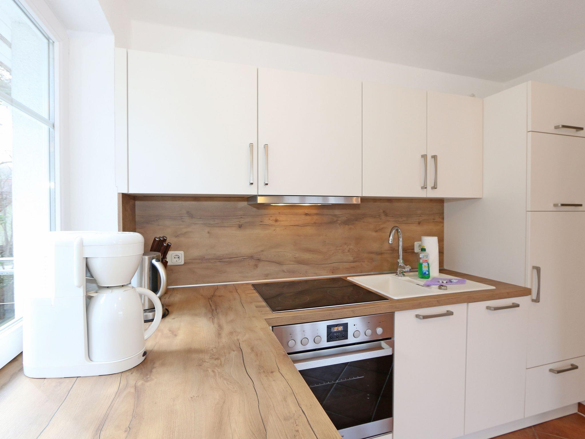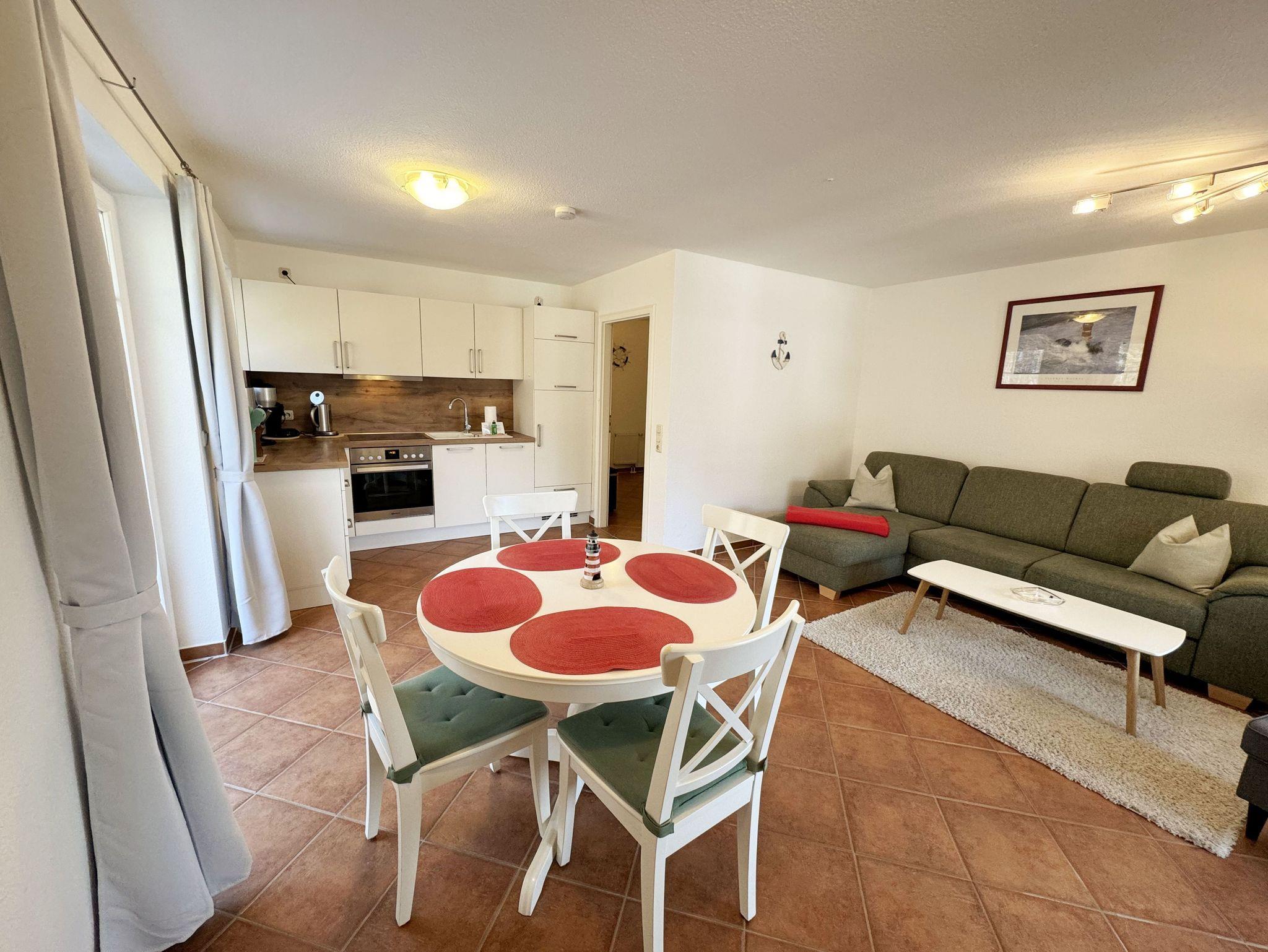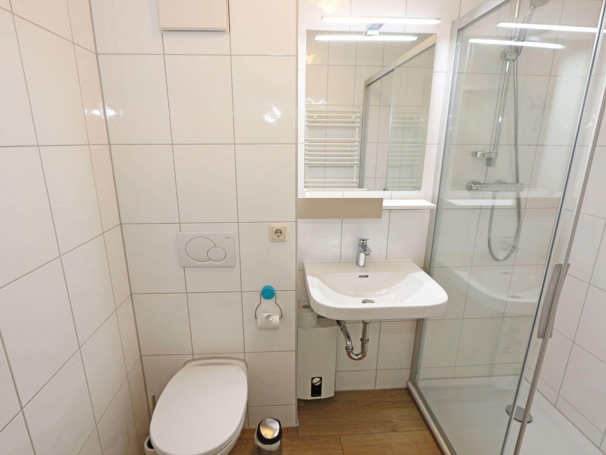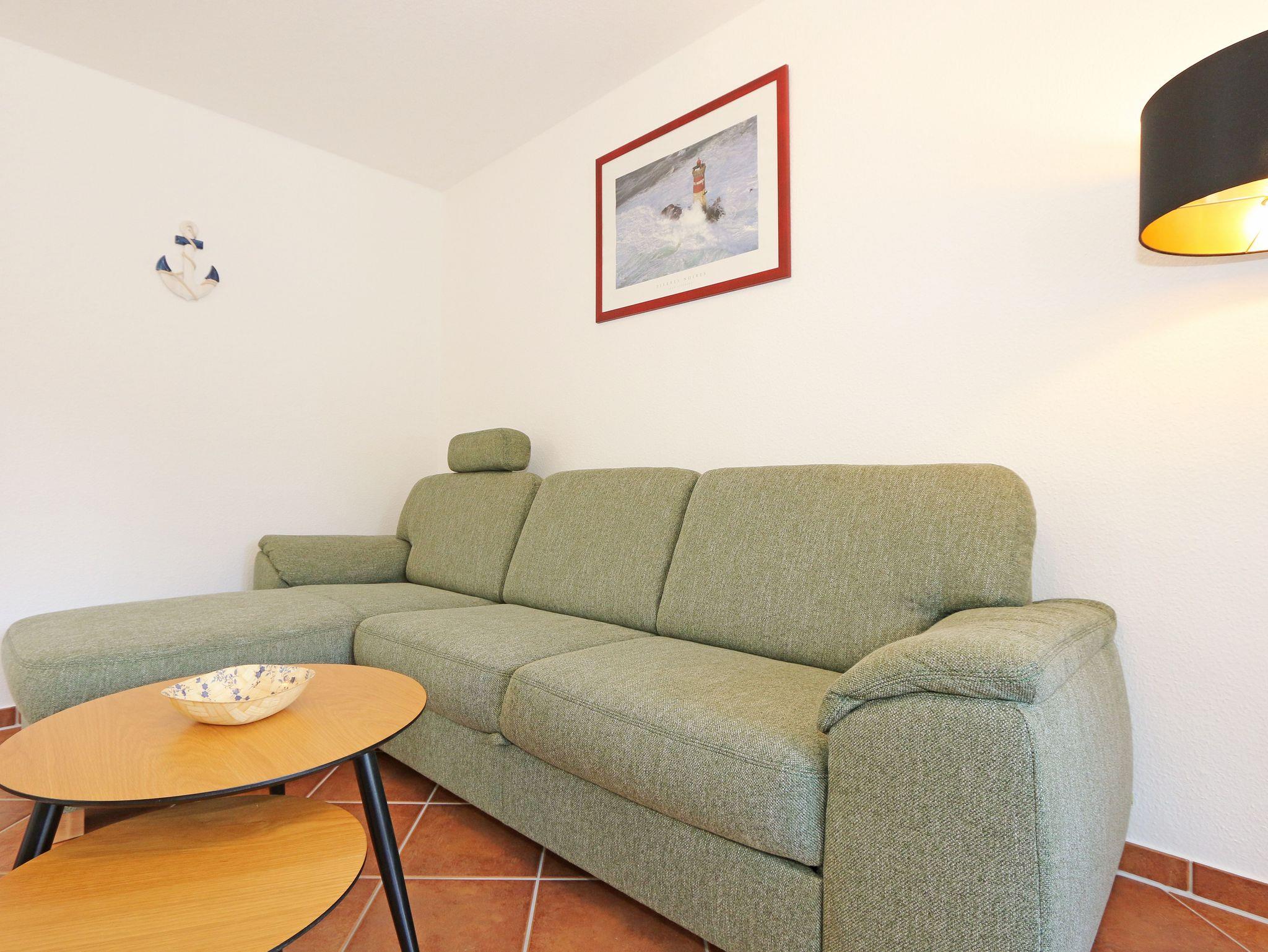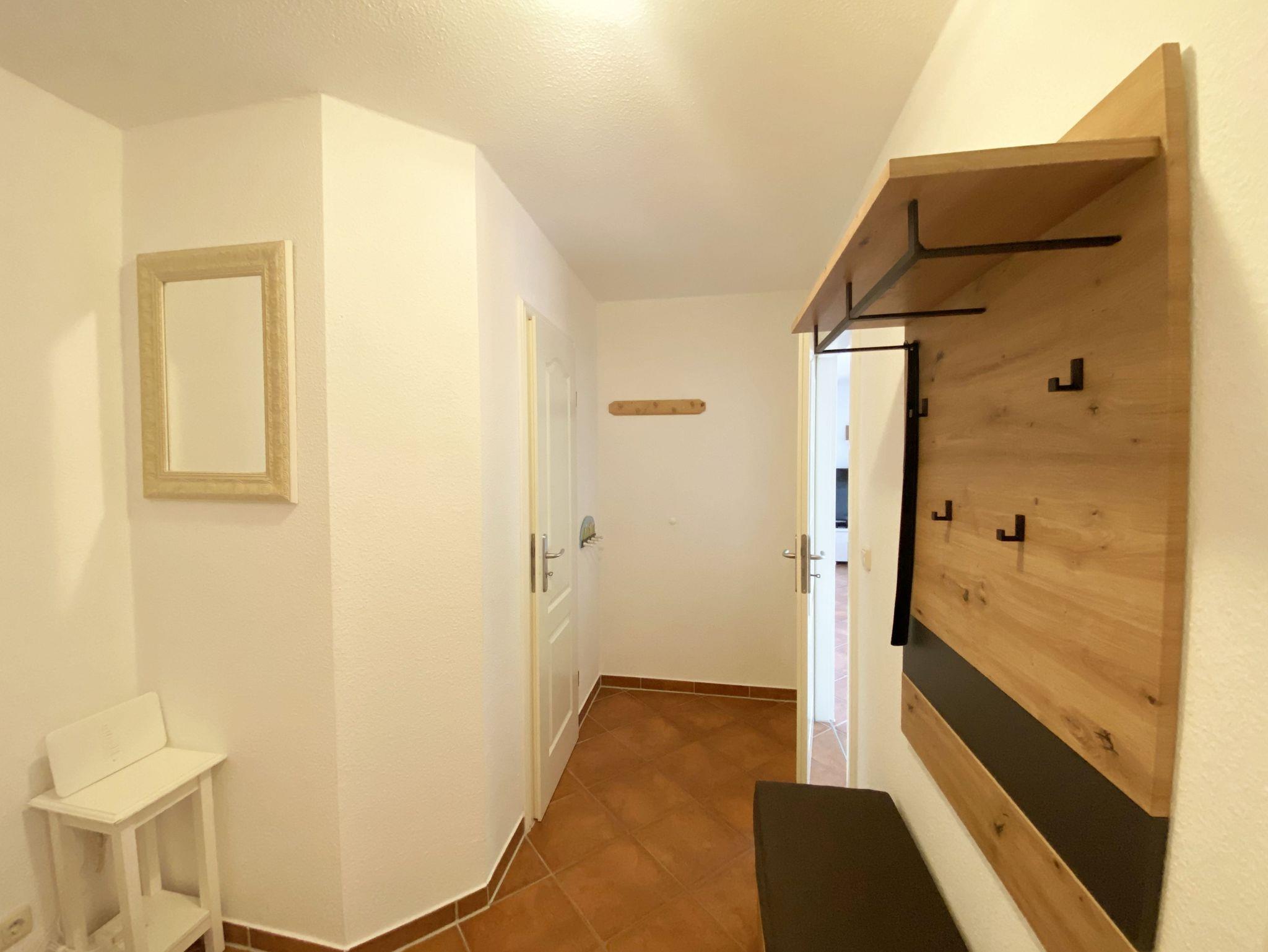 Die gemütlich eingerichtete und ruhig gelegene Nichtraucherwohnung mit ca. 55 m² und ist ideal für 2 bis max. 4 Personen geeignet. Die Wohnung 12 befindet sich in der 1. Etage. Der Wohnbereich besteht aus einem Smart-TV, Blue-Ray-Player und Mini-Stereo-Anlage, WLAN, einer Eck-Couch mit Ausziehfunktion für die 3./4. Person (1,15m x 2,20), Couchtisch, einen Ohrensessel mit Hocker, Leselampe sowie einen Esstisch mit 4 Stühlen. Angrenzend zum Wohnbereich finden Sie eine offene Küchenzeile. Diese verfügt über diverse Küchenhelfer wie zum Beispiel einem Ceranfeld mit Backofen, Kühlschrank, Geschirrspüler, Mikrowelle, Wasserkocher, Toaster, Kaffeemaschine, Pad-Maschine (Senseo) und weitere Küchenutensilien. Vom Wohn- und Essbereich aus haben Sie jeweils einen Zugang zum Balkon die beide bestuhlt sind und zusätzlich einen Sonnenschirm und eine Sonnenliege bietet. Das separate Schlafzimmer mit bodentiefen Fenstern ist mit einem Boxspringbett (1,80 m x 2,00 m), Nachttischkonsolen und einem Kleiderschrank ausgestattet. Auch vom Schlafzimmer können Sie auf den östlichen Balkon gelangen. Im innenliegenden Badezimmer runden eine Dusche, WC, Fön und ein Waschtisch den Bereich ab. Alle Räumlichkeiten sind gefliest, außer das Schlafzimmer, in dem Laminat verlegt ist. Insektenschutzgitter befinden sich zusätzlich in allen Räumlichkeiten. Ein PKW-Stellplatz (7B/12) ist für Sie reserviert und befindet sich hinter dem Haus. Für Ihre geliehenen oder auch mitgebrachten Fahrräder ist eine abschließbare Unterstellmöglichkeit vorhanden. Für unsere kleinen Gäste sind 1x Kinderreisebett (ohne Matratze und Bett Inlett) sowie 1x Hochstuhl inklusive. Haustiere nicht erlaubt. Die Erstausstattung eines Wäschepaketes (komplette Bettwäsche, 1 Duschhandtuch, 2 kleine Handtücher) können Sie bis 14 Tage vor Anreise gegen einen Aufpreis dazu buchen oder durch eigene ergänzen. Ab 2 gebuchten Paketen erhalten Sie einmalig 1 Geschirrhandtuch und 1 Duschvorleger hinzu.