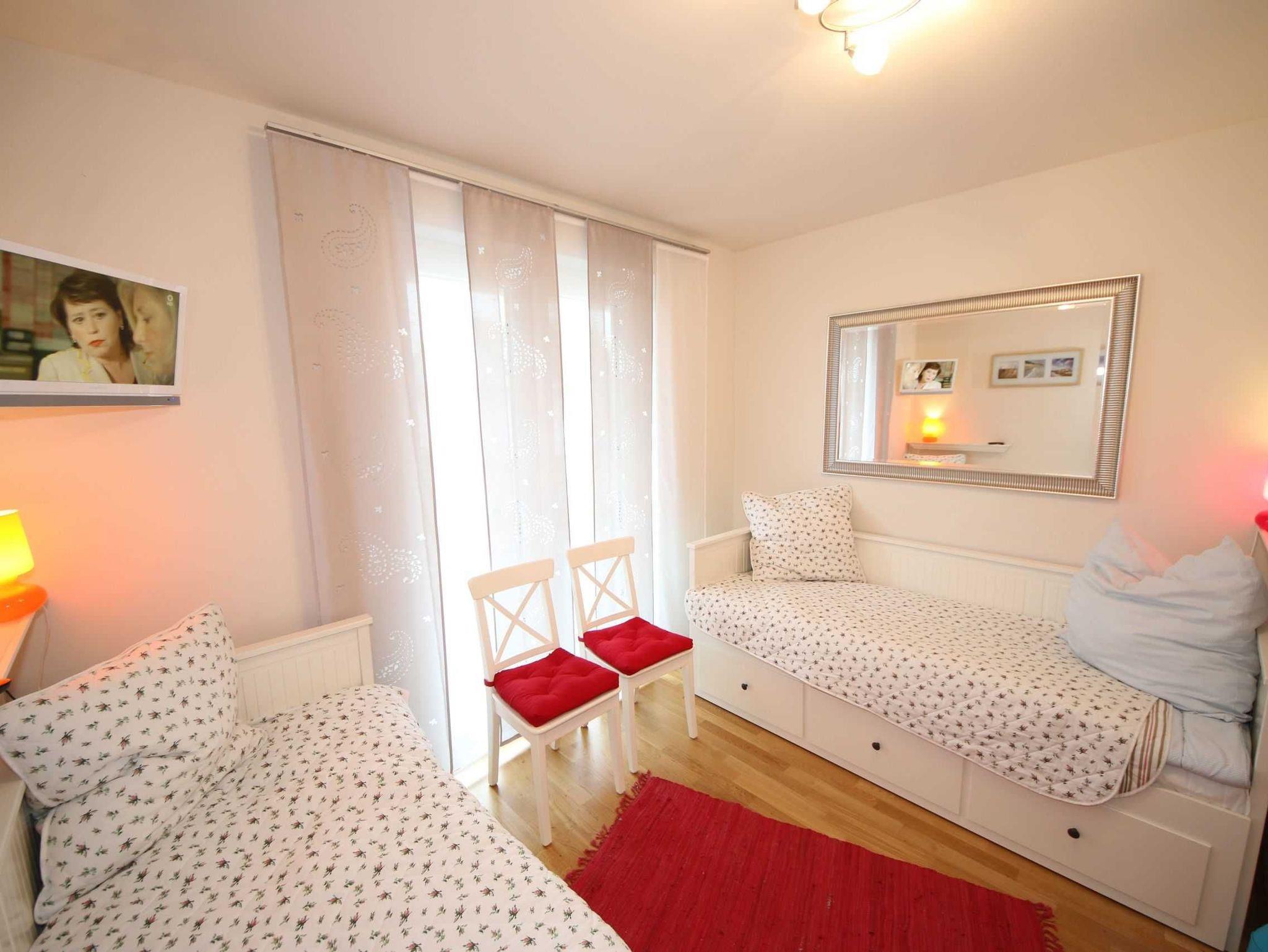 Die 3-Zimmer-Ferienwohnung, die für 2 bis max. 4 Erwachsene und 1 Kleinkind bis 3 Jahre im Kinderreisebett ausgelegt ist, ist eine komfortable ca. 67 qm große Nichtraucherwohnung die sich im Erdgeschoss befindet. Im kombinierten Wohn- und Essbereich finden Sie eine gemütliche Couch mit Couchtisch und Relax Sessel sowie LCD-Flachbild-TV, Blu-Ray-Player, Mini-Stereo-Anlage mit USB-Anschluss sowie eine Spielesammlung auf einem Flachboard. Der technische Bereich wird zusätzlich durch einen WLAN-Zugang abgerundet. Für die kalte Jahreszeit bringt Ihnen der Kamin ein angenehmes Raumklima in den Wohnbereich. Die Küchenzeile mit Cerankochfeld, Backofen, Mikrowelle, Geschirrspüler, Kühlschrank mit Gefrierfach, Kaffeemaschine, Wasserkocher, Toaster und anderen praktischen Küchenutensilien wird durch den runden Essplatz mit 4 Stühlen komplettiert. Das Schlafzimmer ist mit einem Doppelbett (1,60 m x 2,00 m) und einem geräumigen Kleiderschrank ausgestattet. Das 2. Schlafzimmer verfügt über 2 Einzelbetten (je 0,90 m x 2,00 m), einen Kleiderschrank und einem 23 Zoll LCD-TV. Verdunkelungsgardinen schützen Sie in der Wohnung vor fremden Blicken von außerhalb. Das Badezimmer mit ebenerdiger Dusche, Waschplatz, WC, einen beheizten Handtuchhalter und einen Fön runden den Sanitärbereich ab. Wohnbereich und Bad sind mit einer Fußbodenheizung versehen und hochwertige Fliesen verlegt worden. Alle Fenster und Balkontüren haben elektrische Außenjalousien. Durch den Wohnbereich gelangen Sie auf beide Terrassen (Richtung Süden und Westen) mit gemütlicher Bestuhlung und Sonnenschirm von denen Sie wahlweise die Mittags- bzw. Abendsonne genießen können. In der Abstellkammer der Wohnung finden Sie einen Staubsauger sowie Wäschetrockner für den Balkon. Ein eigener PKW-Stellplatz Nr. 01 befindet sich auf dem Grundstück. Ein Fahrradschuppen für den Unterstand von 2 Fahrräder gehört zur Wohnung dazu. Haustiere sind nicht gestattet. Die Erstausstattung eines Wäschepaketes (komplette Bettwäsche, 1 Duschhandtuch, 2 kleine Handtücher) können Sie bis 14 Tage vor Anreise gegen einen Aufpreis dazu buchen oder durch eigene ergänzen. Ab 2 gebuchten Paketen erhalten Sie einmalig 1 Geschirrhandtuch und 1 Duschvorleger dazu.
