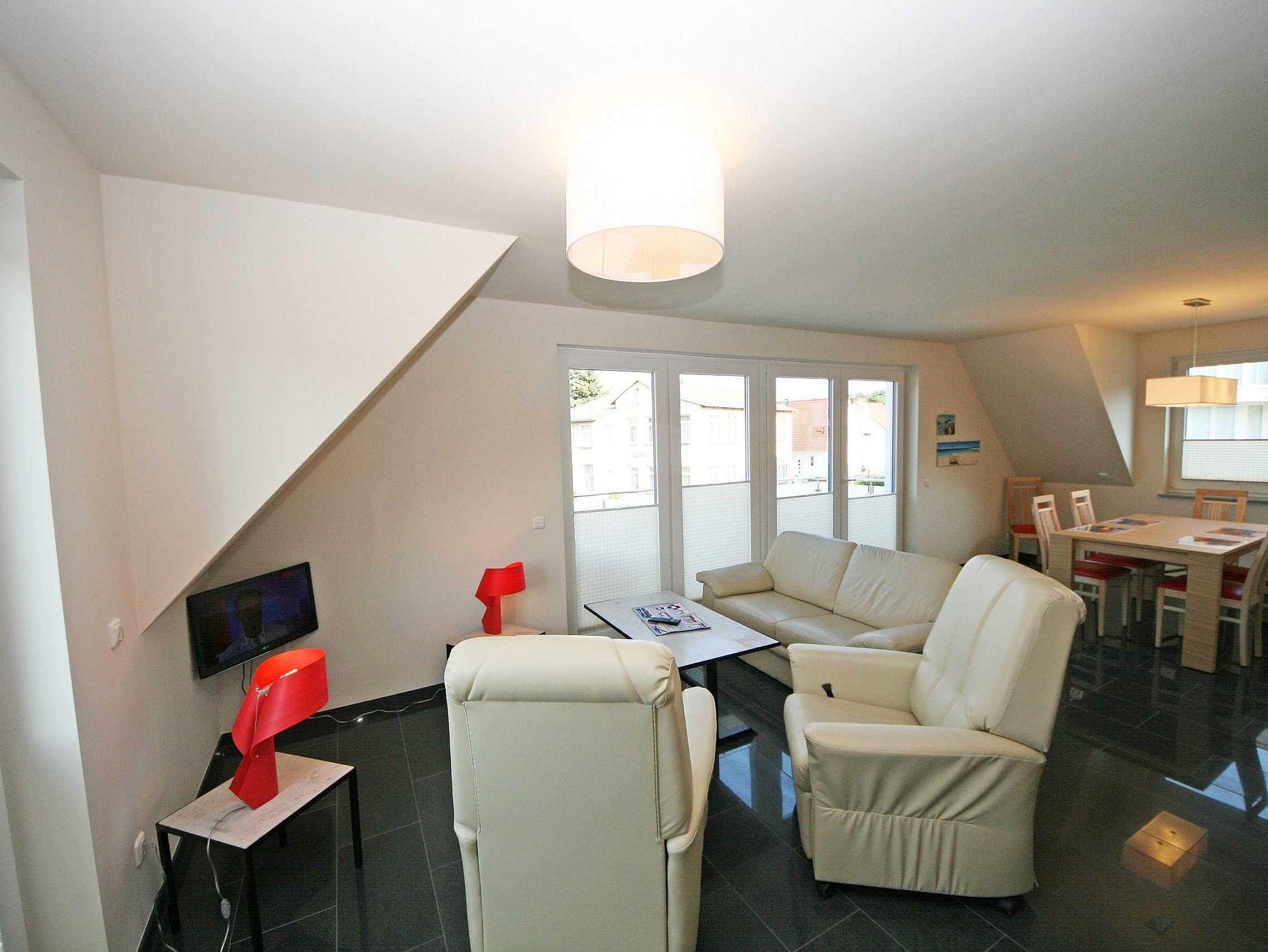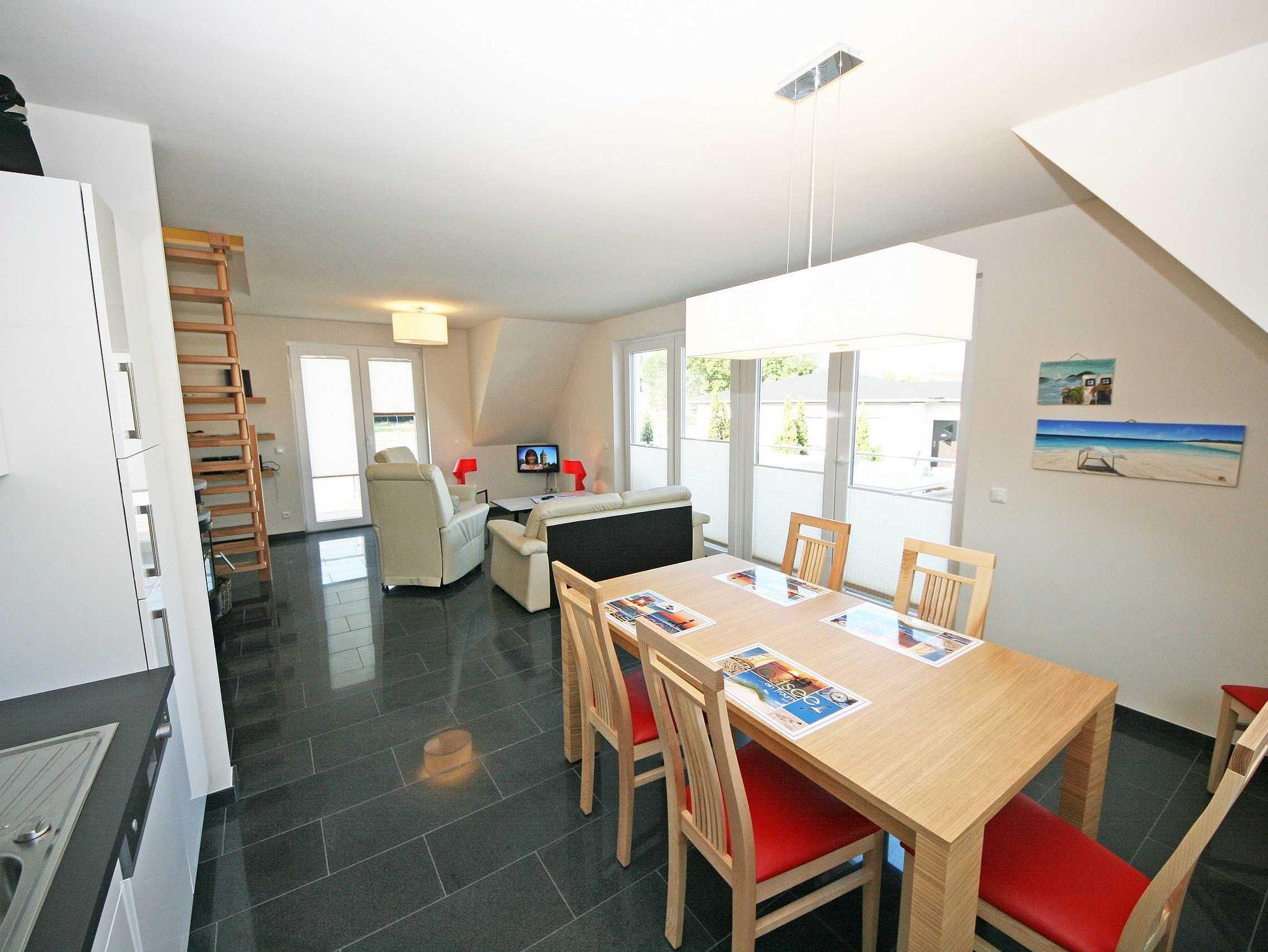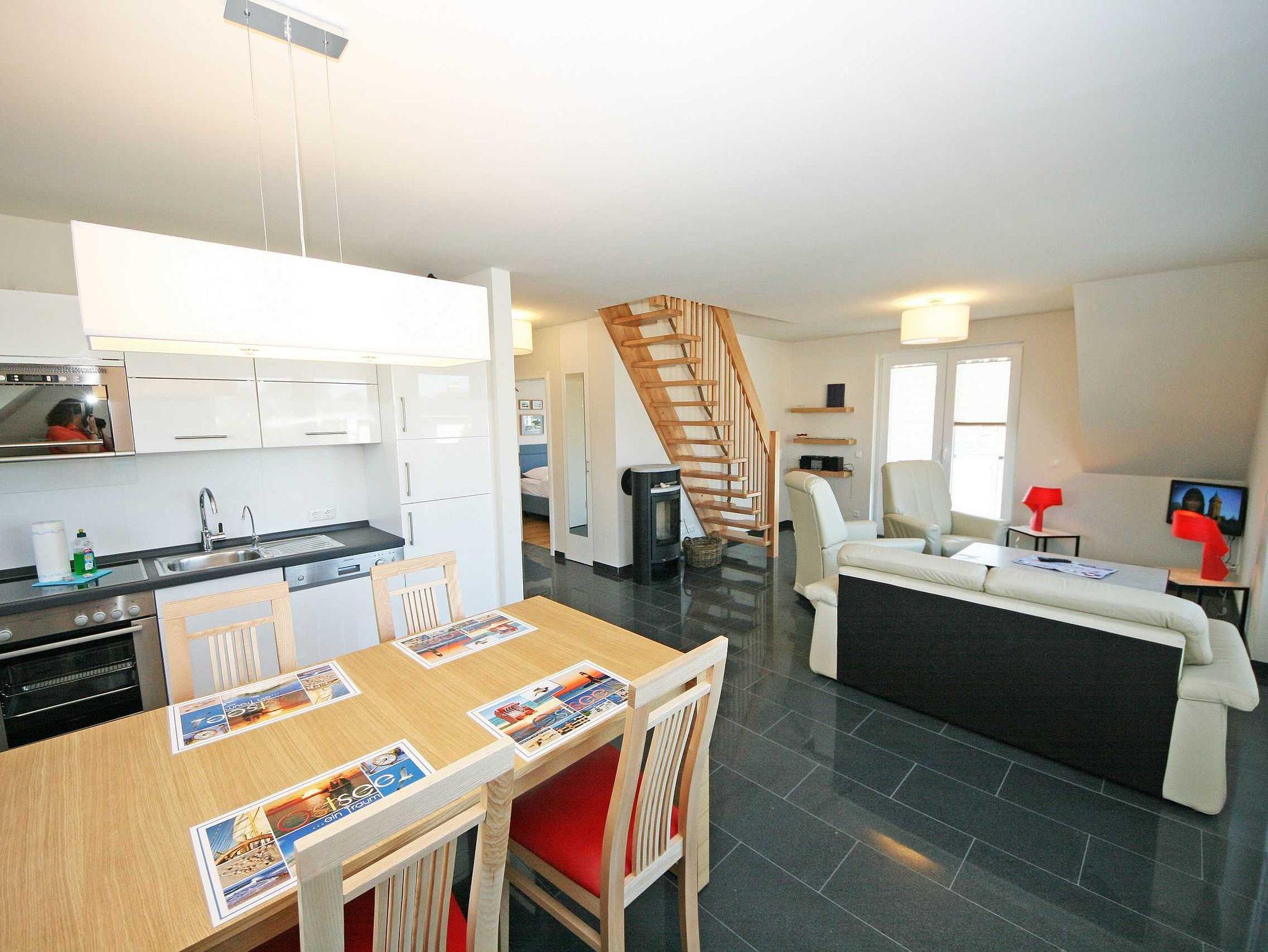 Das Appartementhaus Haus Sanddorn liegt nur 130m vom schönen breiten Sandstrand entfernt. Die ca. 75qm große Maisonettenwohnung verfügt über einen gehobenen Standard und ist perfekt für 2 - 4 Personen geeignet. Auf 2 großen wohnungseigenen Balkone scheint den ganzen Tag die Sonne. Ein Supermarkt (ca. 700m) und gastronomische Einrichtungen mit frischen Fischgerichten gibt es in der Nähe. Unweit von Ihnen laden Strände (ideale Surf - und Kitereviere), die Klein-Zicker-Alpen, Deiche und ein kleiner Hafen zu einem Rundgang ein. Mit dem Rad erschließt sich auf gut ausgebauten Radwegen die ganze Halbinsel Mönchgut mit dem kilometerlangen feinsandigen Strand, den Hügeln der Zicker-Alpen und idyllischen Dörfern und Landstraßen.