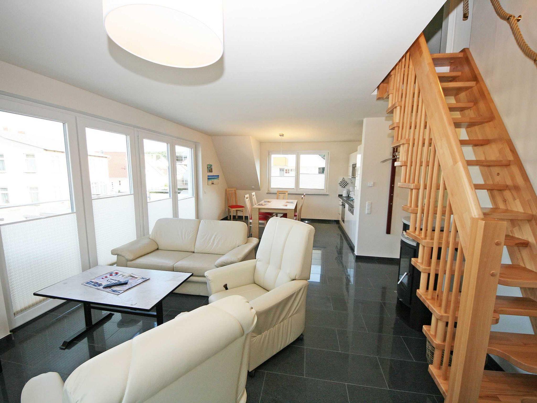Das Maisonette-Appartement Haus Sanddorn liegt nur 130m vom Sandstrand bei Thiessow mit zwei sonnigen Balkonen.