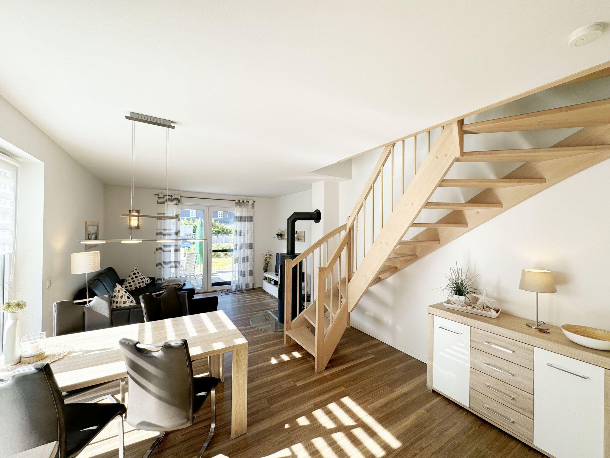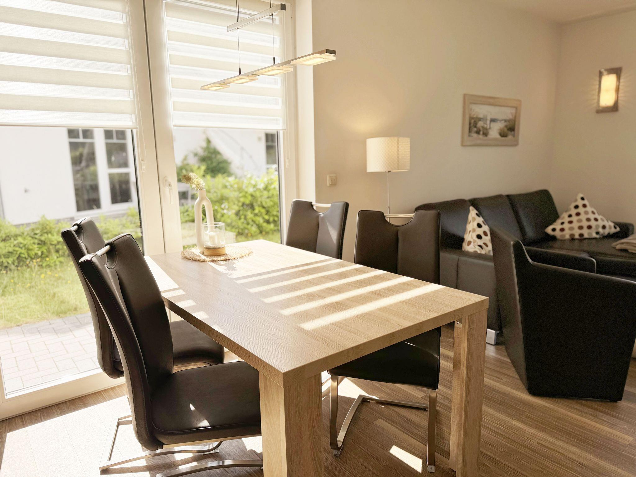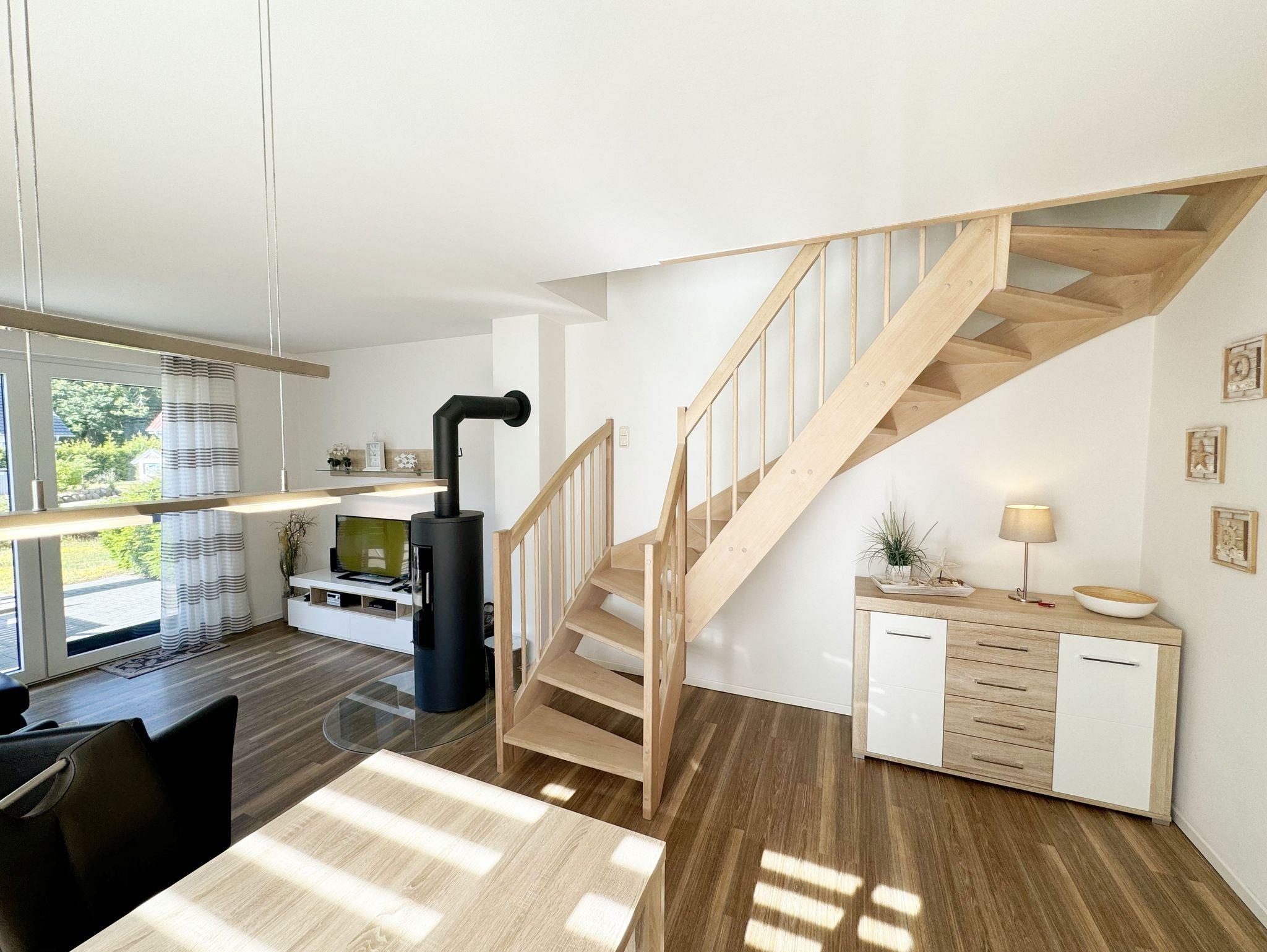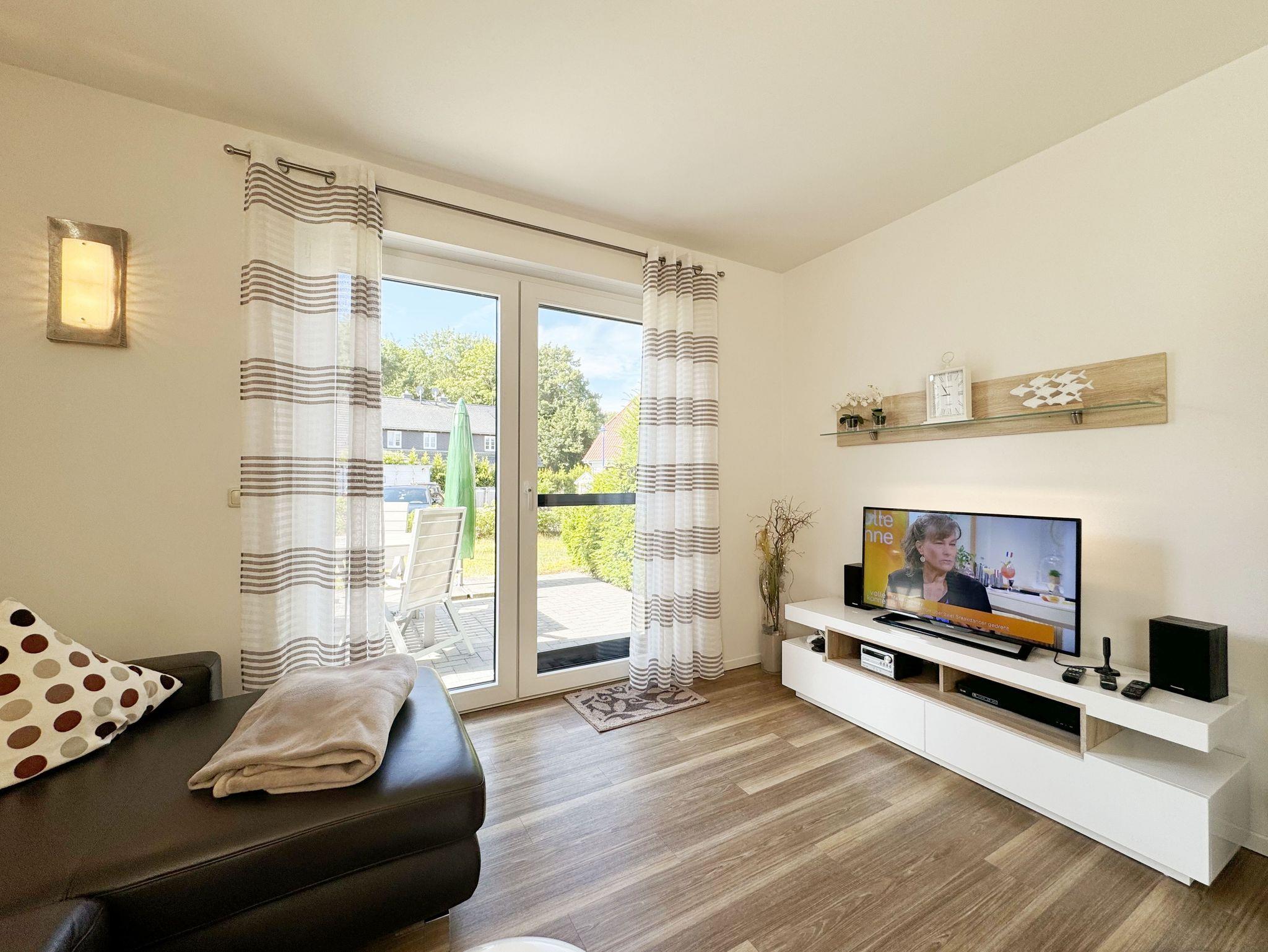 Modern eingerichtete Ferienwohnung mit Kamin und Südterrasse in Thiessow nahe Ostseestrand.