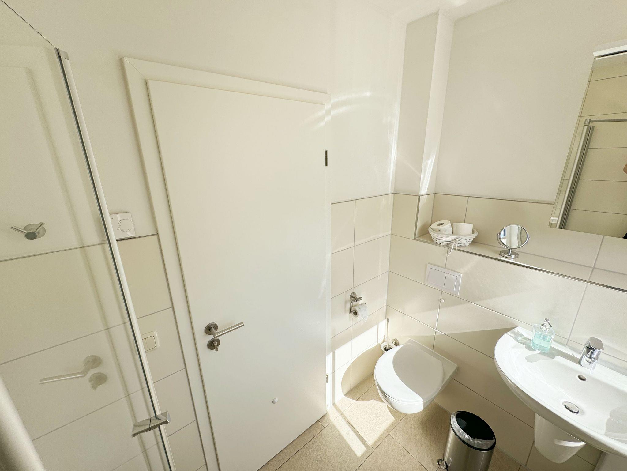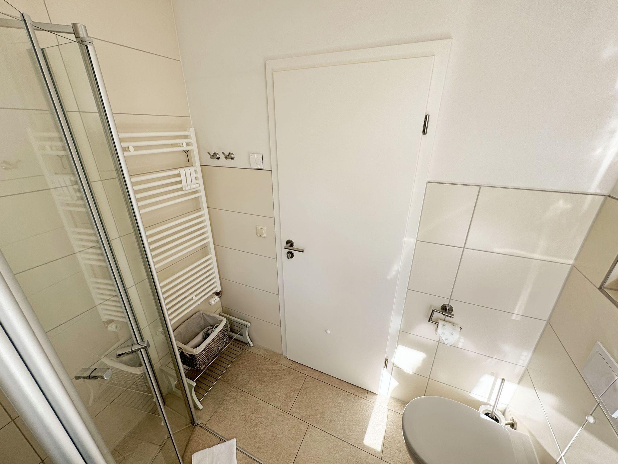 Die modern und liebevoll eingerichtete, helle Nichtraucher-Ferienwohnung im Stil einer Maisonettwohnung mit separatem Eingang für max. 4 Erwachsene und 1 Kleinkind im Kinderreisebett bis 3 Jahre, besitzt eine Grundfläche von ca. 62 m², aufgeteilt in einen Wohn-/Essbereich im Erdgeschoss und 2 Schlafzimmern im Dachgeschoss. Im Wohn- und Essbereich laden ein großer Esstisch mit 5 Stühlen und ein Leder-Ecksofa und eine Leselampe zum Verweilen ein. Genießen Sie an kühleren Tagen die wohlige Wärme des Kaminofens. Zur technischen Ausstattung gehört ein 42-Zoll Flachbildfernseher, Blu-Ray-/DVD-Player und eine Musikanlage mit DAB-Radio. Ein WLAN-Zugang zur kostenlosen Nutzung ist selbstverständlich vorhanden. In der komplett ausgestatteten Küche finden Sie ein Cerankochfeld, Backofen, Mikrowelle mit Grillfunktion, einen Geschirrspüler, Kühlschrank mit Eisfach, Toaster, Kaffeemaschine, Mixer, Wasserkocher, Waffeleisen und weitere praktische Helfer. Staubsauger, Waschmaschine, Bügeleisen, Bügelbrett und ein Wäscheständer machen die Ausstattung komplett. Im Obergeschoss finden Sie zwei Schlafzimmer, davon eines mit Doppelbett (2 x 0,90 m x 2,00 m) und eines mit zwei Einzelbetten (jeweils 0,90 m x 2,00 m). Das Schlafzimmer mit Doppelbett ist zusätzlich mit einem 32 Zoll Flachbildfernseher ausgestattet. Nachtischablagen, Kleiderschränke und Verdunklungsplissees runden die Ausstattung der Schlafzimmer ab. Im Dachgeschoss befindet sich ferner ein Tageslichtbad mit ebenerdiger Dusche, Kosmetikspiegel, Waschbecken, WC, Fön und beheizbarem Handtuchhalter. Ein weiteres Gäste-WC befindet sich im Erdgeschoss. Sämtliche Fenster im Erdgeschoss sind mit Rollläden ausgestattet, im Wohn-/Essbereich elektrisch. Die Fenster der Schlafräume verfügen über je ein Fenster mit Plissee und Rollladen und je ein kleines Fenster mit Plissee. Alle Räume sind mit einer Fußbodenheizung versehen und zum Teil auch mit Insektenschutzgitter. Eine Abstellmöglichkeit für mitgebrachte Surfbretter und Fahrräder im abschließbaren Schuppen ist vorhanden. Eine Waschmaschine steht Ihnen inklusive zur Verfügung. Freuen Sie sich auf sonnige Urlaubstage und sommerliche Abende auf der 28 qm großen Südterrasse mit Terrassenmöbeln, kleinem Grill und Sonnenschirm. Eine kleine Rasenfläche zur eigenen Nutzung und ein PKW-Stellplatz Nr. 01 befinden sich direkt vor dem Haus. Für die kleinen Gäste sind 1x Kinderreisebett (110 x 63 cm) und 1x Hochstuhl inklusive vorhanden. Haustiere sind nicht erlaubt. Die Erstausstattung eines Wäschepaketes (komplette Bettwäsche, 1 Duschhandtuch, 2 kleine Handtücher) können Sie bis 14 Tage vor Anreise gegen einen Aufpreis dazu buchen oder durch eigene ergänzen. Ab 2 gebuchten Paketen erhalten Sie einmalig 1 Geschirrhandtuch und 1 Duschvorleger hinzu.