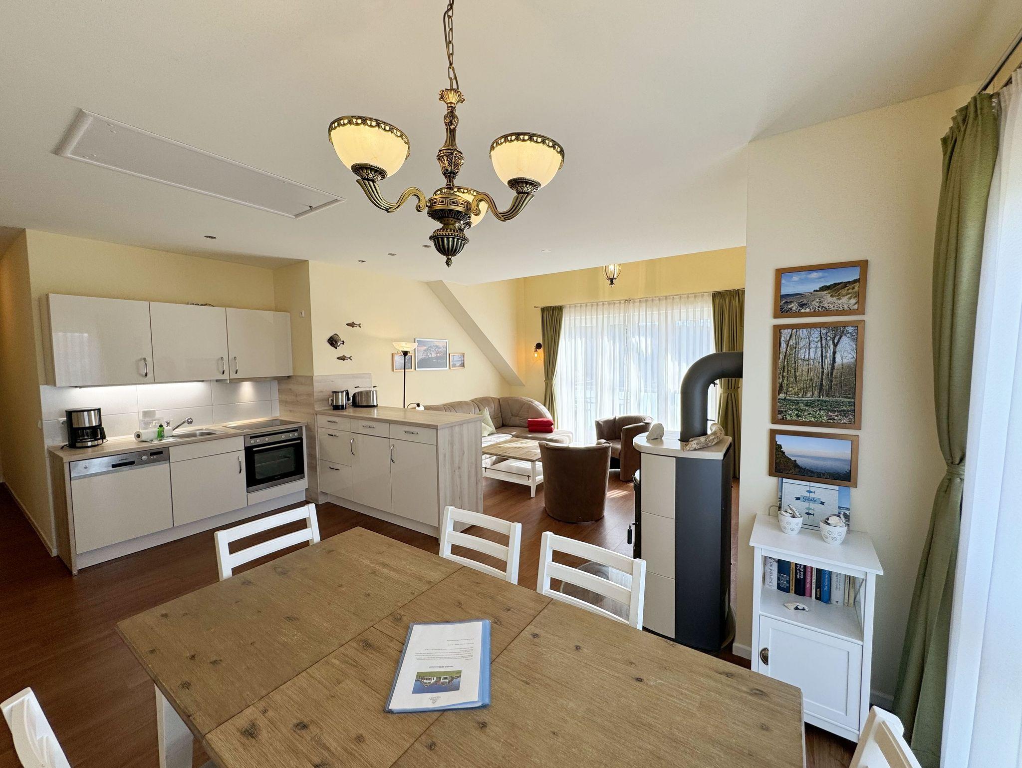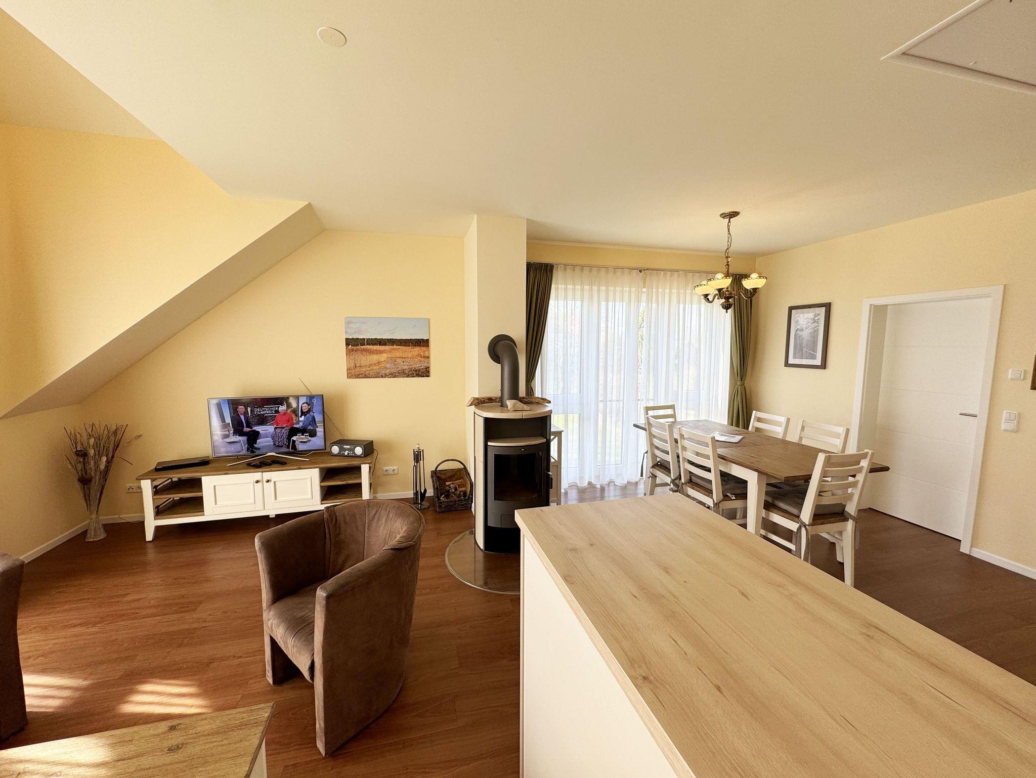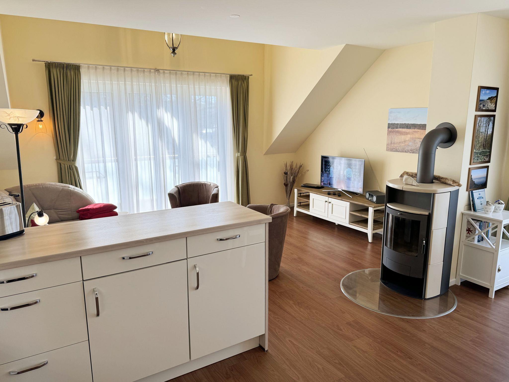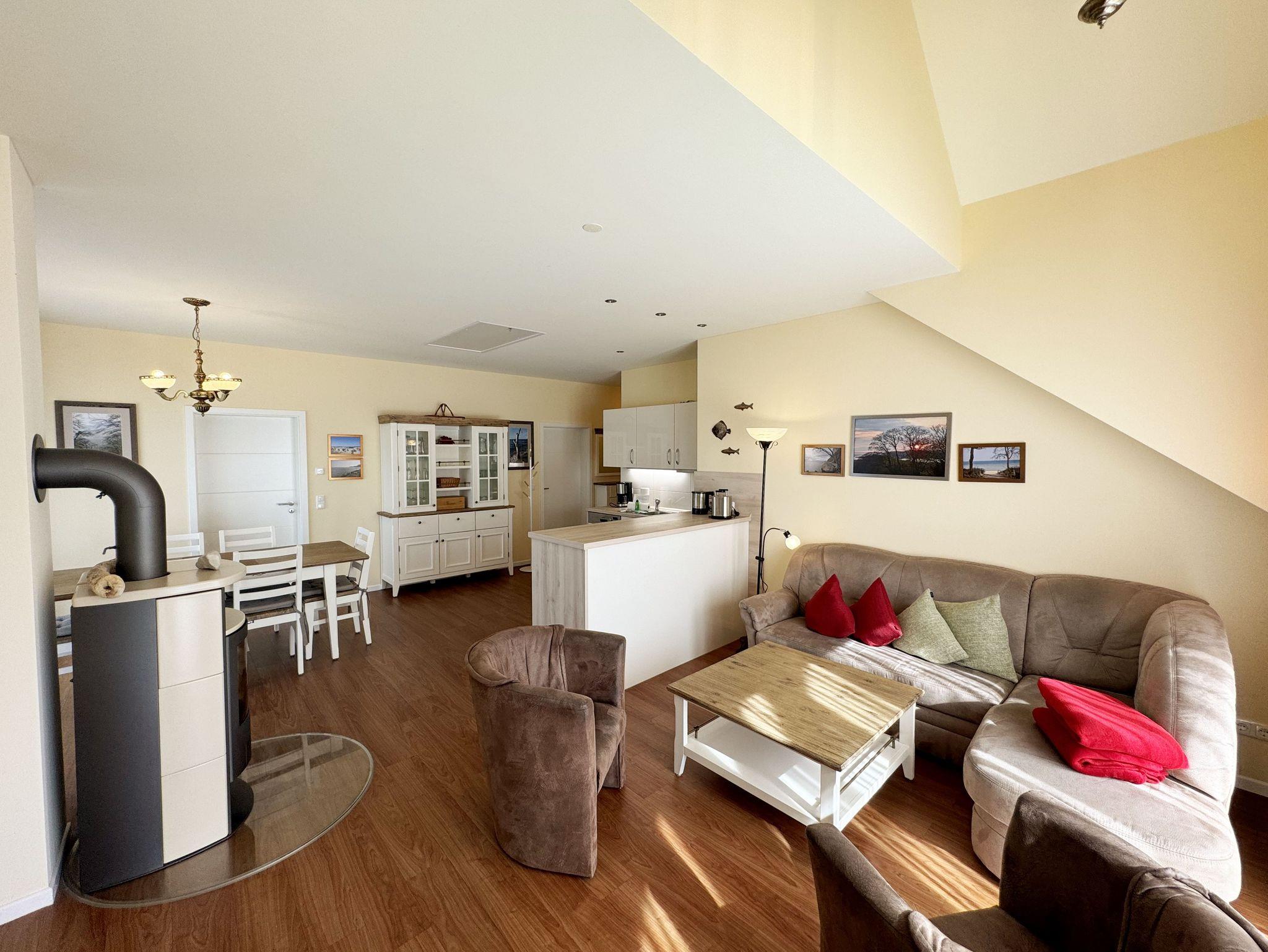 Moderne Dachgeschosswohnung mit Kamin, Balkon und Nähe zum feinen Sandstrand in Thiessow auf Rügen.