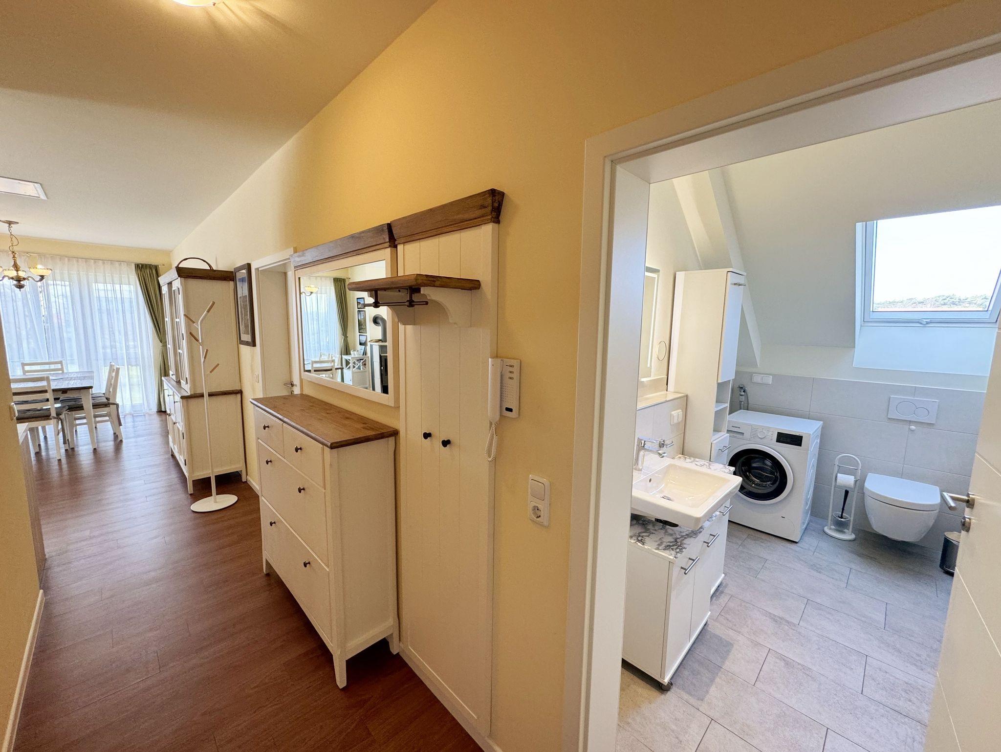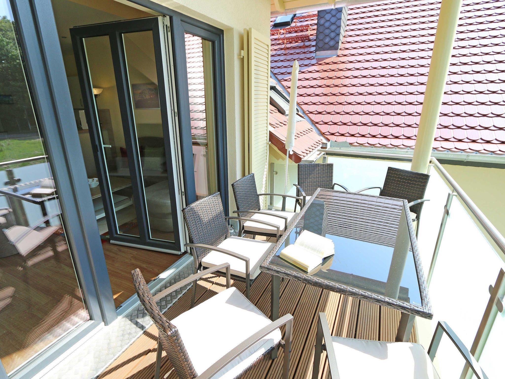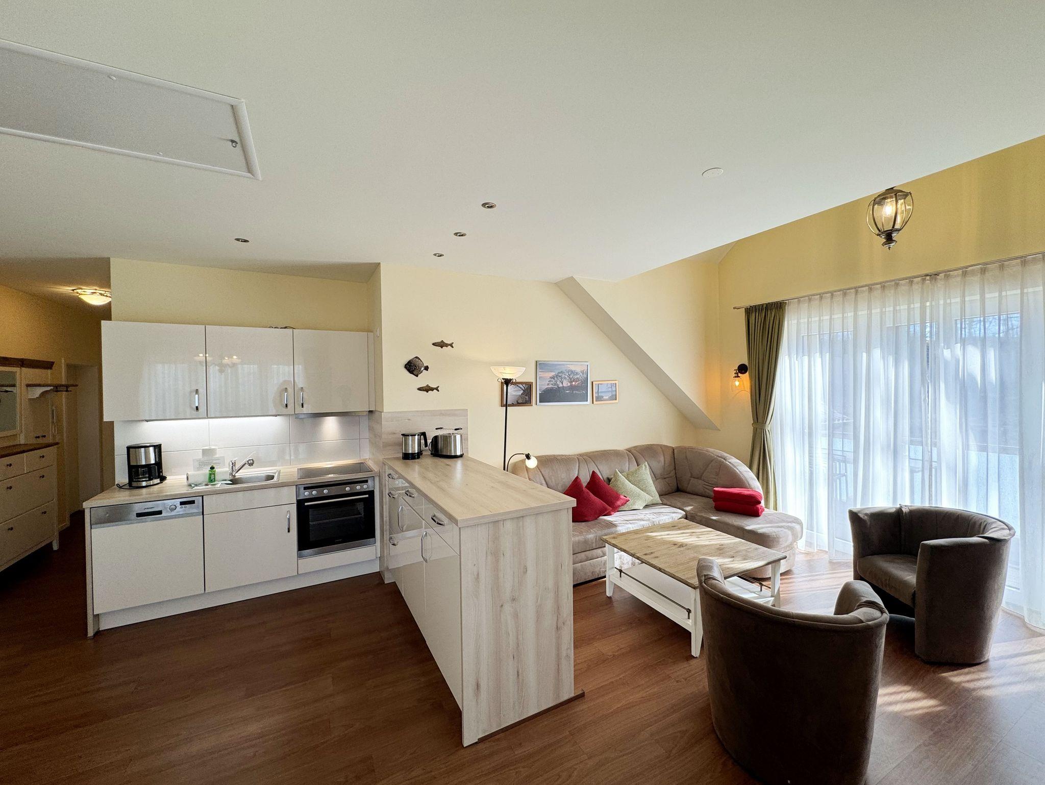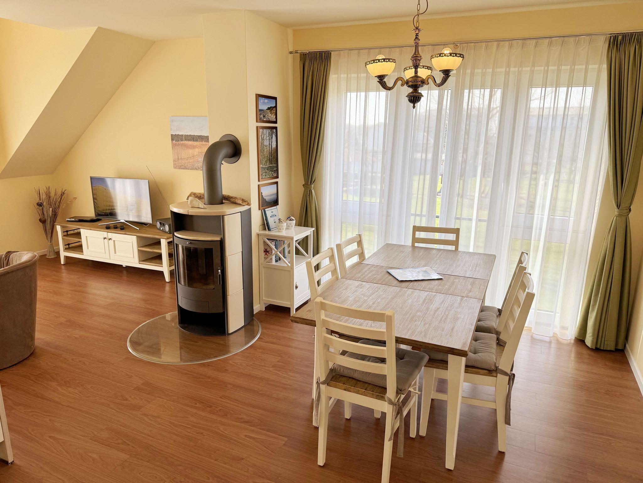 Moderne Dachgeschosswohnung mit Kamin, Balkon und Nähe zum feinen Sandstrand in Thiessow auf Rügen.