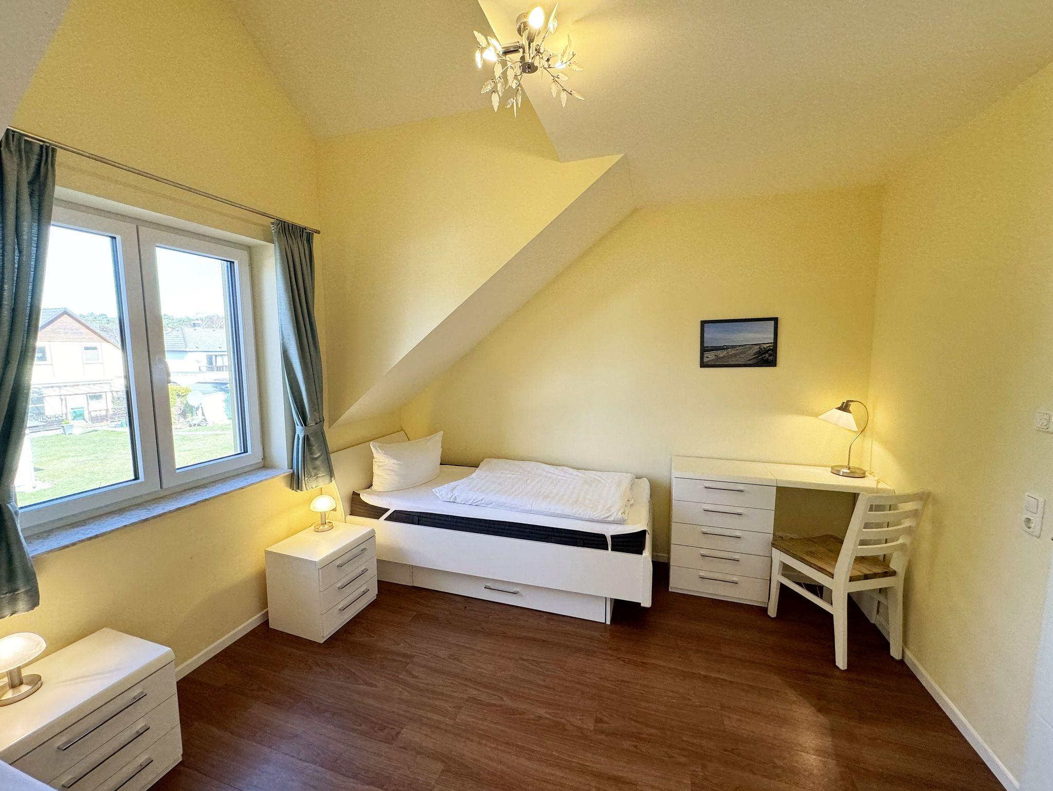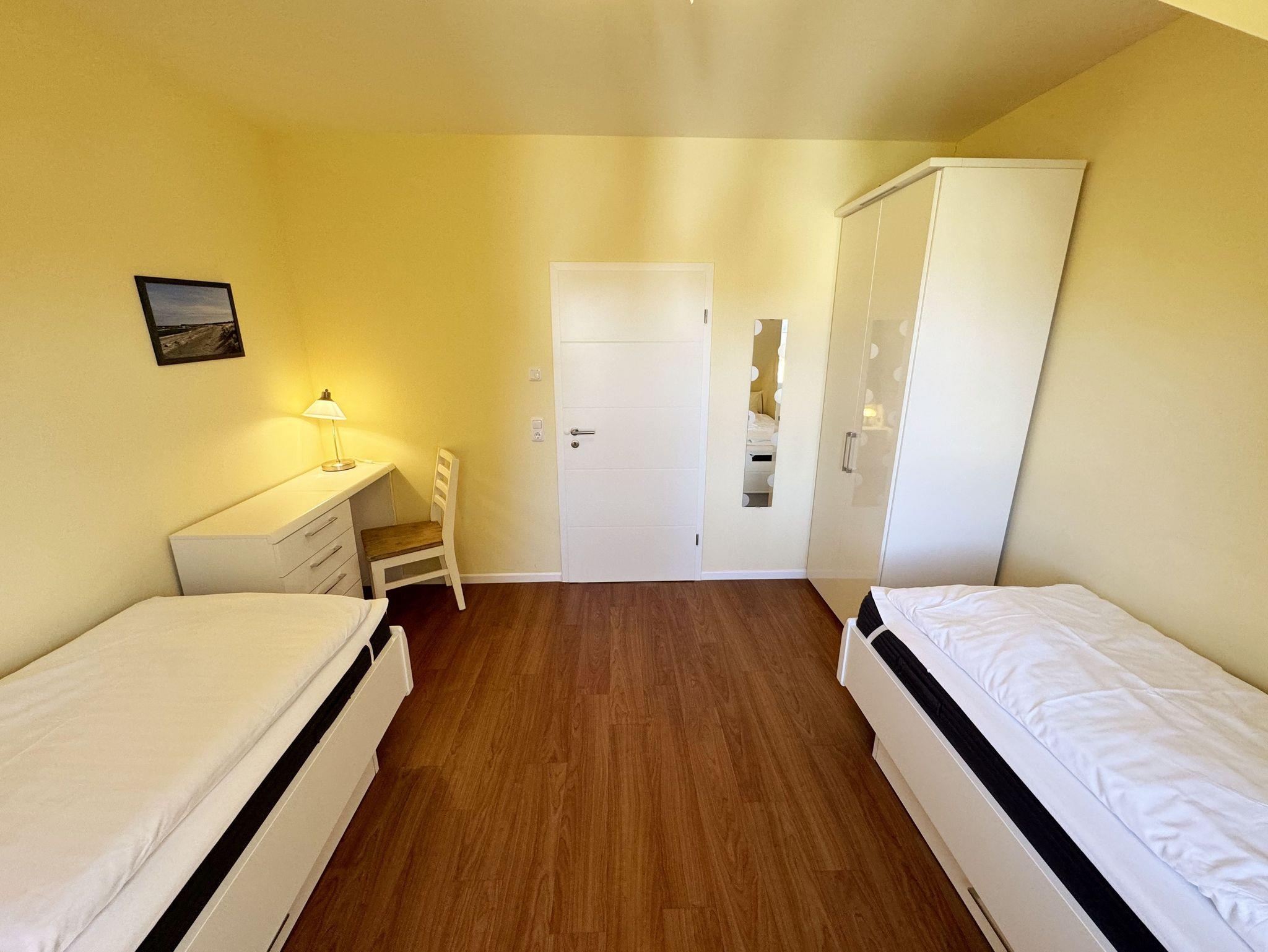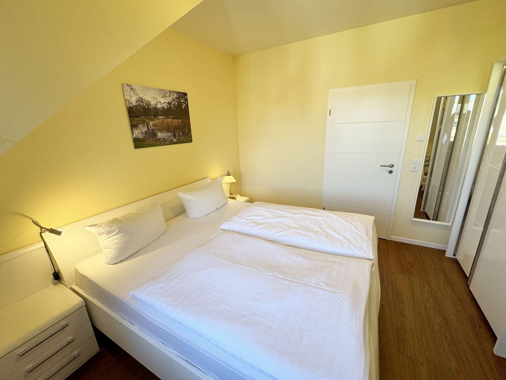 Die ca. 80 qm große Dachgeschosswohnung ist Teil des im Stile der Bäderarchitektur erbauten Ferienhauses Sterntaucher mit 8 Wohnungen. Die Nichtraucherwohnung ist modern und mit hohem Standard eingerichtet. Sie bietet Platz für 2 bis 5 Personen. Das im Landhausstil mit Massivmöbel eingerichtete Wohn-/Esszimmer besticht durch seine bodentiefen Fenster, die viel Tageslicht in die großzügigen Räume bringen. Abgerundet wird der Wohnbereich mit einer Couch (Aufbettungsmöglichkeit für die 5. Person/ 1,20m x 2,00m) mit Couchtisch, einer Leselampe, Smart-TV, Blu-Ray-Player sowie ein Radio mit CD-Player und USB-Anschluss. Diverse Gesellschaftsspiele und Bücher laden zum Entspannen in geselliger Runde oder zur gemütlichen Zweisamkeit ein. In der kälteren Jahreszeit ist der Kamin ein besonderes Highlight. Auch auf einen Internetanschluss (WLAN) müssen Sie nicht verzichten. Dieser ist für Sie inklusive. Vom Wohnbereich gelangen Sie auf den bestuhlten mit Sonnenschirm und nach Süden ausgerichteten Balkon. Die angrenzende und komfortable Küchenzeile fügt sich dem Wohnbereich an. Durch ein Cerankochfeld, einem Backofen, einem Kühlschrank mit Gefrierkombination, einer Spülmaschine, einer Kaffeemaschine, einem Wasserkocher, einem Toaster und mit ausreichenden Kochutensilien können Sie sich nach Herzenslust selbstverpflegen. Das größere Schlafzimmer verfügt über ein Doppelbett (1,80 m x 2,00 m mit Komforthöhe), Nachttischablagen, einen Kleiderschrank und Schreibtisch sowie einen Flachbild-TV. Im kleineren Schlafzimmer befinden sich neben den beiden Einzelbetten (0,90 m x 2,00 m) Nachttischablagen, ein Garderobenschrank sowie ein Schreibtisch. Beide Schlafzimmer können mit Fensterläden verdunkelt werden. Das Badezimmer mit Tageslicht ist mit einer ebenerdige Glasdusche, einem Waschtisch, einem WC, einer Waschmaschine, einem Kosmetikspiegel, einem Fön und einem beheizbarem Handtuchtrockner ausgestattet. Alle Räumlichkeiten wurden mit einer mit Fußbodenheizung ausgestattet. Im Hauswirtschaftsraum befinden sich diverse Reinigungsutensilien sowie ein Wäscheständer, ein Bügelbrett und ein Bügeleisen. Im Schlafzimmer und in der Balkontür befinden sich Insektenschutzgitter. Haustiere sind nicht erlaubt. Für unsere kleinen Gäste steht 1x Kinderreisebett (ohne Bett Inlett/ohne Zusatzmatratze) und 1x Hochstuhl inklusive zur Verfügung. Einen PKW-Stellplatz (Nr. 08) finden Sie direkt am Objekt sowie auch einen wohnungseigenen Schuppen (Nr. 08), wo Sie Ihre geliehenen oder mitgebrachten Fahrräder unterstellen können. Die Erstausstattung eines Wäschepaketes (komplette Bettwäsche, 1 Duschhandtuch, 2 kleine Handtücher) können Sie bis 14 Tage vor Anreise gegen einen Aufpreis dazu buchen oder durch eigene ergänzen. Ab 2 gebuchten Paketen erhalten Sie einmalig 1 Geschirrhandtuch und 1 Duschvorleger hinzu.