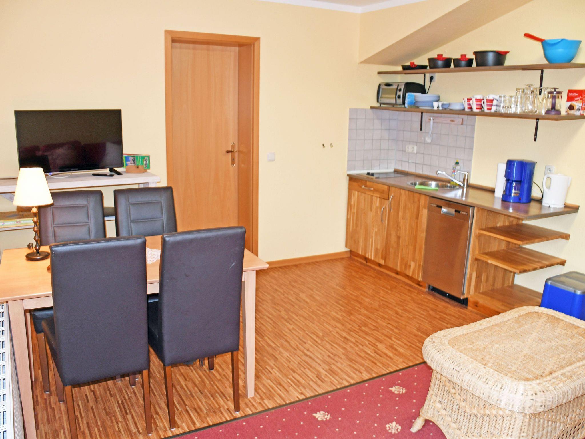 Dieses Ferienappartement verfügt über den Hintereingang und liegt im Obergeschoss. Sie ist ca. 35 qm groß, bietet Platz für maximal 4 Erwachsene und wurde modern eingerichtet. Es handelt sich um ein 2-Raum-Appartement.