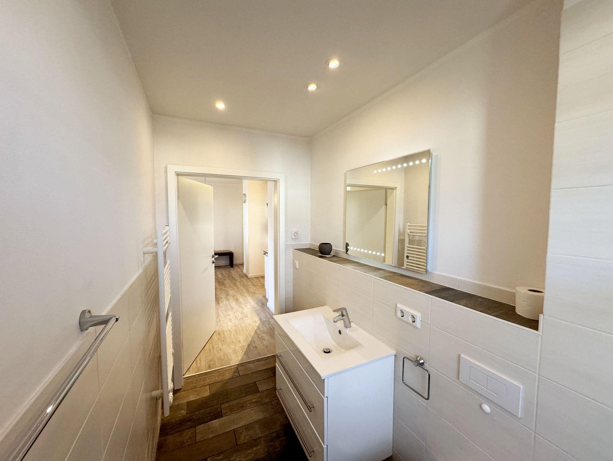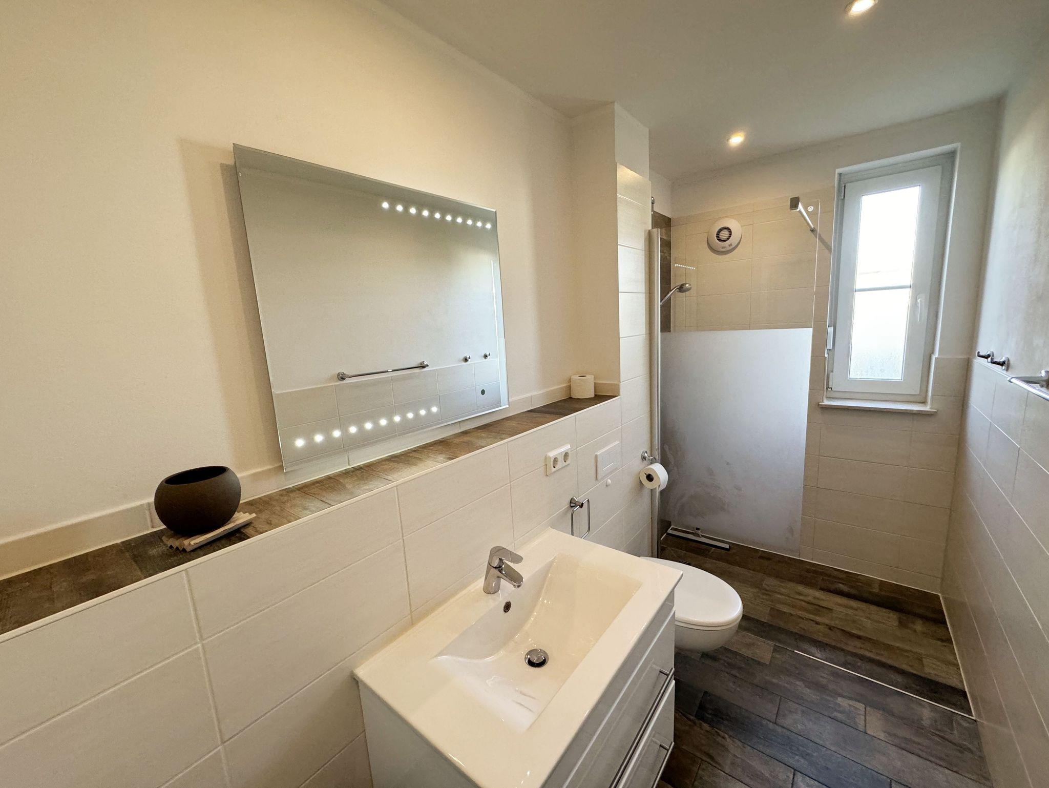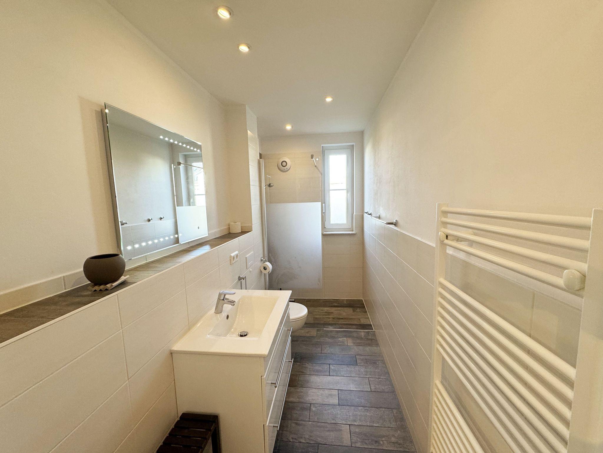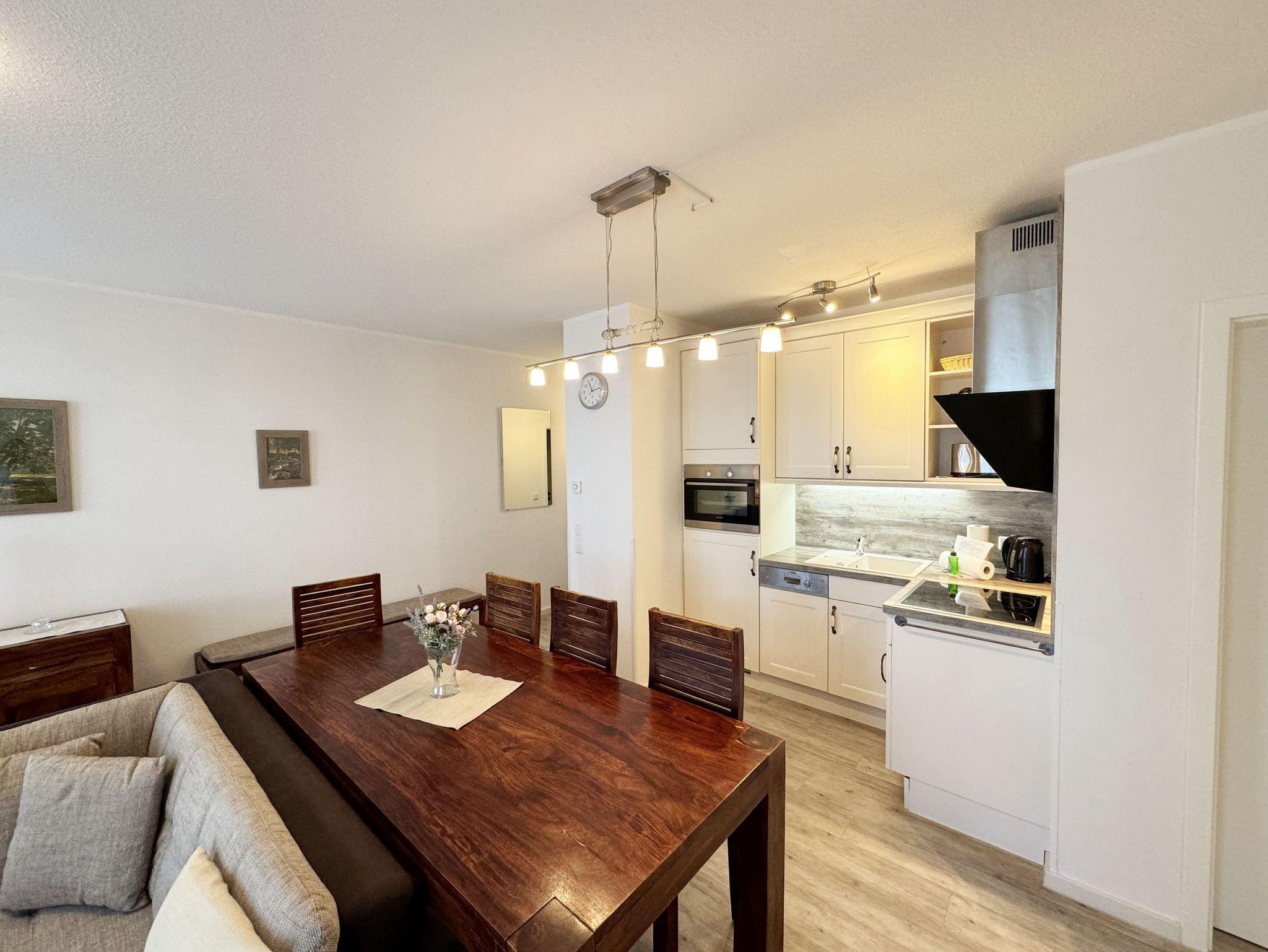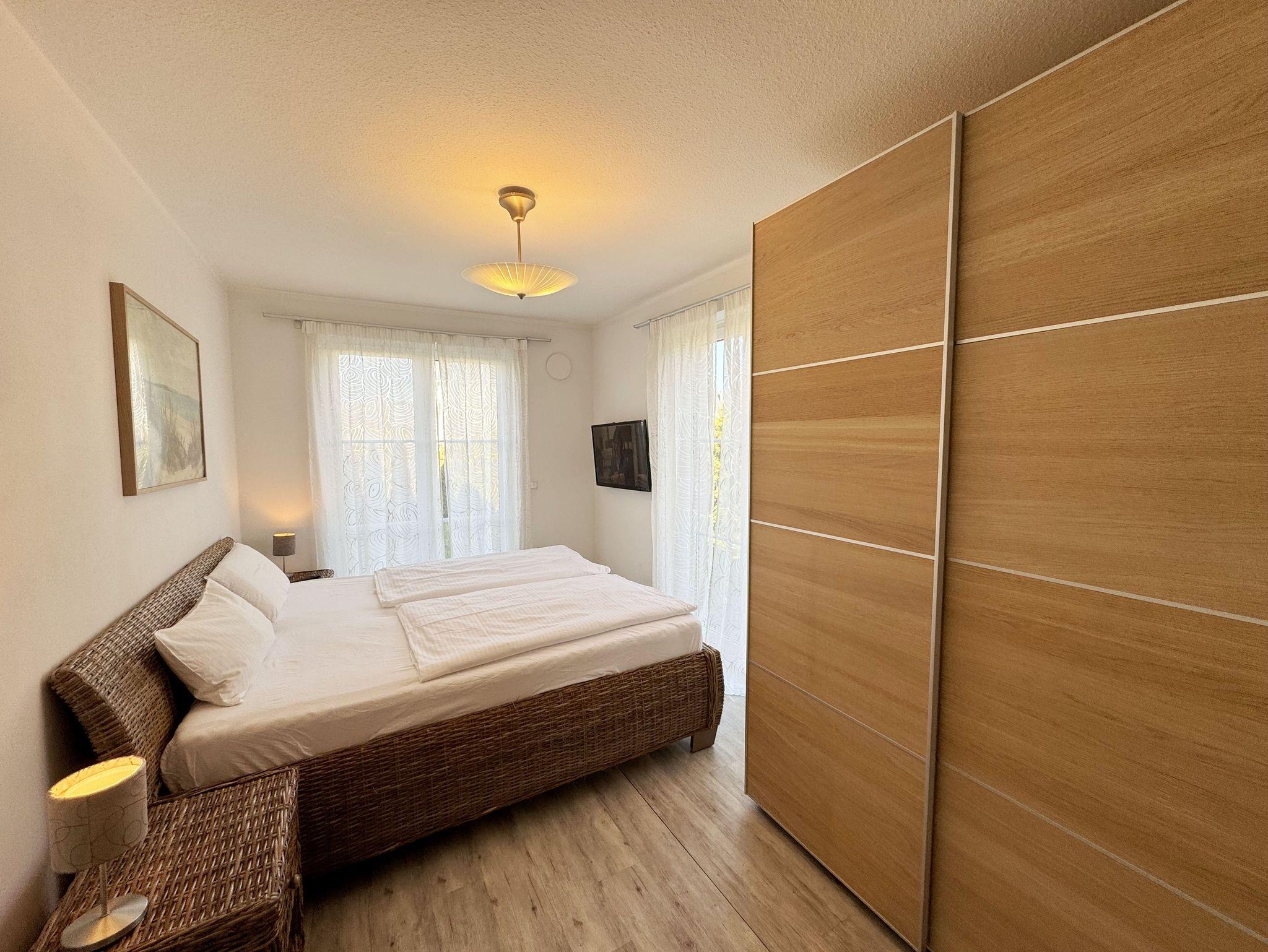 Die ca. 68m² große Erdgeschosswohnung (Nichtraucher) mit dem Namen Sandperle bietet Platz für 2 bis 6 Personen. Der offene Wohnbereich wurde mit Massivholzmöbeln, einer gemütlichen Eckcouch sowie mit einem 50 Zoll LED-Flachbildschirm mit Blu-ray-Player und einer Stereoanlage ausgestattet. Auch im Urlaub brauchen Sie auf einen Internetanschluss (WLAN) nicht verzichten. Dieser ist für Sie inklusive. Auch textiles Kinderspielzeug, eine kleine Sammlung von Büchern sowie Gesellschaftsspiele können genutzt werden. Im angrenzenden Essbereich befinden sich ein großer Esstisch mit 4 Stühlen und eine Sitzbank, wo Sie tolle Urlaubsstunden mit Freunden oder Familie verbringen können. Die integrierte Küchenzeile mit Kühlschrank + Gefrierfach, Ceranfeld, Backofen, Geschirrspüler, Wasserkocher, Toaster, Kaffeemaschine, Handmixer, Kindergeschirr + Besteck und diversen Küchenutensilien laden zum selbst kochen ein. Vom Wohnbereich hat man einen direkten Zugang zur ostseitigen und bestuhlten Terrasse mit Grill. Im ersten Schlafzimmer befindet sich ein Doppelbett (2x 0,90 m x 2,00m) in Komforthöhe (60cm) und zwei 7 -Zonenkaltschaummatratzen, Nachttischablagen sowie ein Kleiderschrank mit Ordnungssystem und großem Wandspiegel. Ein 40 Zoll LED - Flachbild TV runden das Schlafzimmer ab. Im zweiten Schlafzimmer stehen 2 Kojenbetten (0,80m x 2,00m), die mit wenigen Handgriffen auf eine Liegefläche von 1,60 m als Doppelbett vergrößert, werden können zur Verfügung. Der Kleiderschrank hat ebenfalls ein Ordnungssystem. Das Tageslicht - Bad besitzt eine bodengleiche Dusche, eine separate Lüftung, Fön, WC und Waschtisch mit Spiegelbeleuchtung. Alle Räumlichkeiten sind mit einer Fußbodenheizung, elektrische Rollläden und mit einer kontrollierten Be- & Entlüftungsanlage versehen. Im Wirtschaftsraum steht Ihnen eine Waschmaschine zur inklusiven Nutzung zur Verfügung sowie diverse Reinigungsutensilien. Für unsere kleinen Gäste sind 1x Kinderreisebett (ohne Matratze und Bettinlett), 1x Hochstuhl, eine Wickelauflage und ein Töpfchen inklusive. Ein PKW-Stellplatz Nr. 01 und ein eigener abschließbarer Fahrradschuppen sind direkt am Haus. Haustiere sind nicht erlaubt. Die Erstausstattung eines Wäschepaketes (komplette Bettwäsche, 1 Duschhandtuch, 2 kleine Handtücher) können Sie bis 14 Tage vor Anreise gegen einen Aufpreis dazu buchen oder durch eigene ergänzen. Ab 2 gebuchten Paketen erhalten Sie einmalig 1 Geschirrhandtuch und 1 Duschvorleger hinzu.