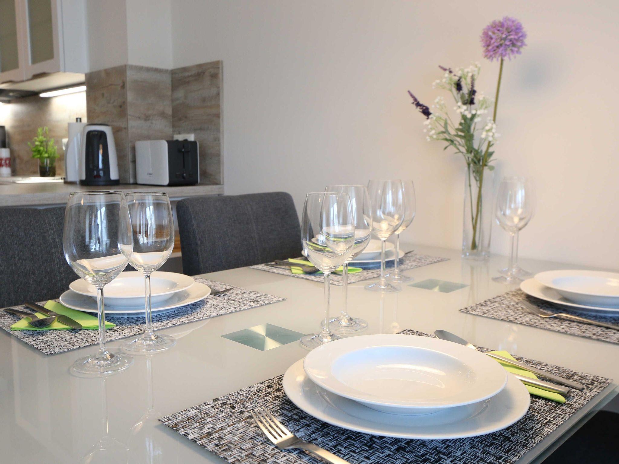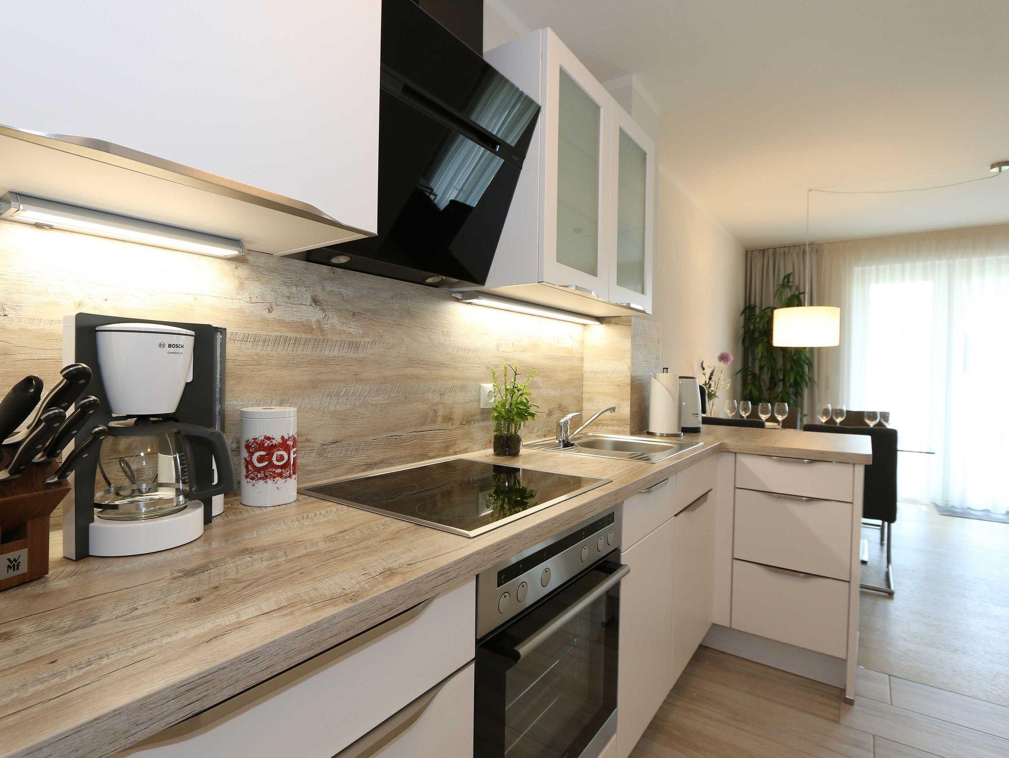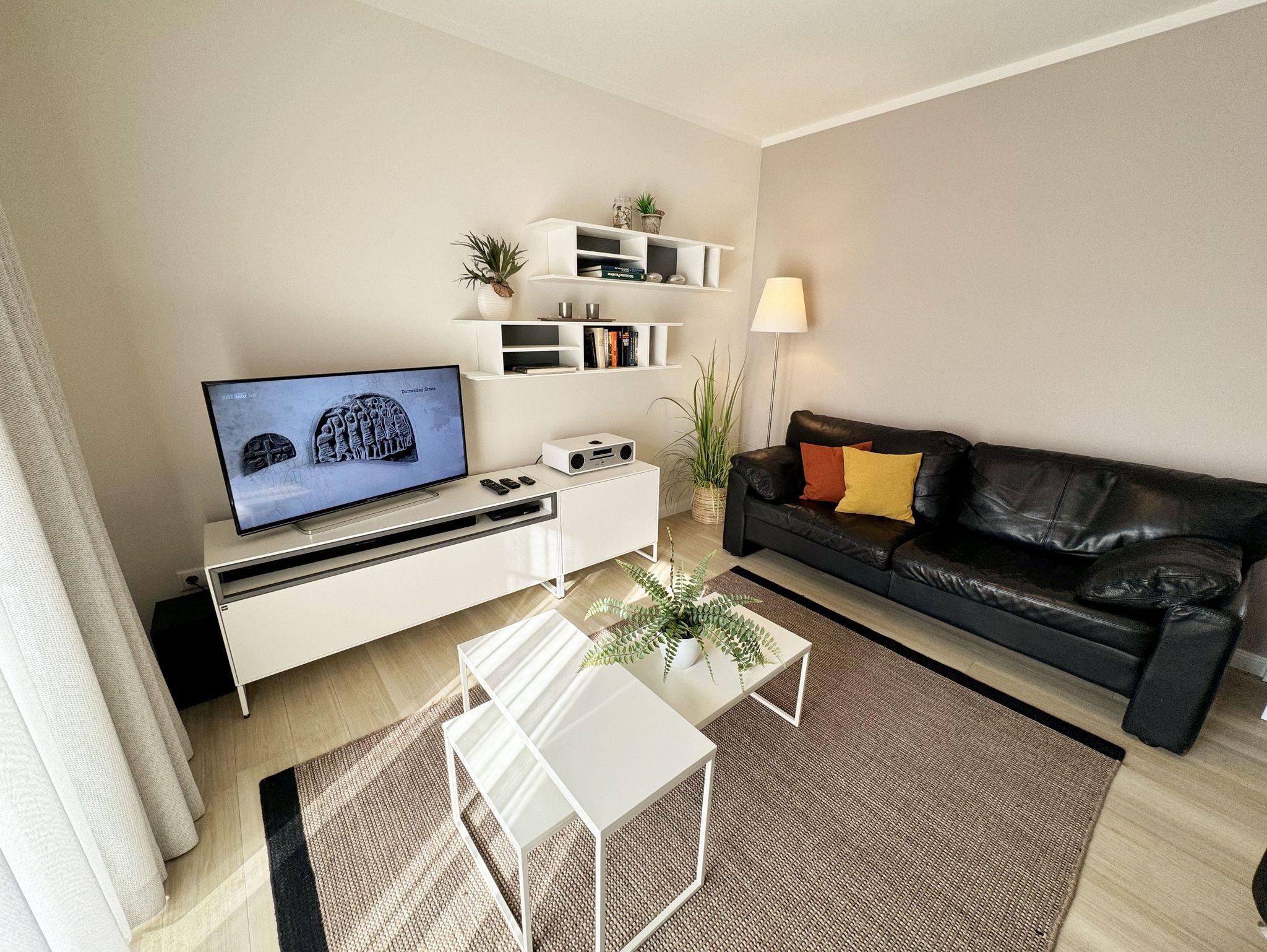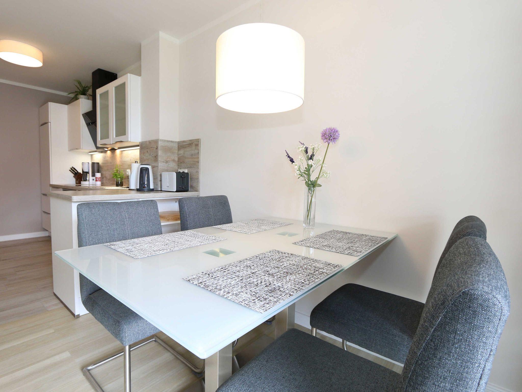 Die 70 m² große Nichtraucherwohnung Nr. 02 Seeschwalbe im Haus Windrose befindet sich im Erdgeschoss und bietet Ihnen Platz für 2 bis max. 4 Erwachsene. Eine durchdachte Raumaufteilung sowie eine hochwertige Ausstattung bieten Ihnen alle Möglichkeiten für einen erholsamen Urlaub. Die eingerichtete Einbauküche befindet sich im kombinierten Koch-/Essbereich. Ein Geschirrspüler, ein Kühlschrank mit Eisfach, 4 Zonen Ceranfeld mit Backofen, eine Kaffeemaschine Mokkamaster KBG Select, ein Toaster, ein Wasserkocher, sowie diverse Küchenutensilien bietet Ihnen somit alles, was Sie zum Kochen benötigen. Im angrenzenden Essbereich steht ein großer Esstisch mit 4 Stühlen zur Verfügung. Von dem Ess-/Wohnbereich gelangen Sie direkt auf die bestuhlte 26 m² Terrasse (Süd/West) davon 13 m² überdacht sowie ein Sonnenschirm und Relaxsessel. Entspannen und Relaxen Sie in einem Wohnbereich der mit modernen weißen Hülsta Möbeln, eine gemütliche Ledercouch sowie 2 Sessel, zwei Couchtischen und zwei Stehlampen ausgestattet ist. Ein DAB-Radio mit CD-Player und Bluetooth, ein Smart-TV mit Soundbar, ein Blu-Ray-Player sowie diverse Gesellschaftsspiele tragen zu Ihrer Unterhaltung bei. Auch im Urlaub brauchen Sie auf einen Internetanschluß (WLAN) nicht verzichten. Dieser ist für Sie inklusive. Ein Schlafzimmer ist mit einem großen Schwebetürenschrank für Ihre Urlaubsgarderobe, mit einem bequemen Boxspringbett Hülsta (1,80 m x 2,00 m, durchgehender Topper), zwei Nachttischablagen und zwei Leselampen ausgestattet. Das kleine Schlafzimmer ist mit zwei übereckstehenden Liegen (0,80 m x 2,00 m), zwei Leselampen, diversen Ablagemöglichkeiten und zwei kleinen Schränken eingerichtet. Das moderne Bad mit Waschplatz, WC, Fön, Spiegelschrank, Kosmetikspiegel, einer ebenerdigen komfortablen Regendusche mit Echtglasabtrennung und einen Handtuchtrockner runden den Sanitärbereich ab. Eine Waschmaschine, ein Wäscheständer, ein Bügeleisen mit Bügelbrett, sowie ein Staubsauger stehen Ihnen zur Verfügung. Alle Räumlichkeiten sind mit Insektenschutzgitter, einer Fußbodenheizung sowie einer Raumlüftungsanlage ausgestattet und können durch Fensterläden verdunkelt werden. Ein PKW kann auf dem kostenfreien Stellplatz Nr. 02 direkt am Haus geparkt werden. Ihre mitgebrachten oder geliehenen Fahrräder können Sie in den zur Wohnung gehöhrenden abschließbaren Abstellraum Nr. 02 (am PKW Stellplatz) unterbringen. Hier befindet sich auch eine Anschlussmöglichkeit zum Aufladen von Pedelecs. Direkt am Haus befindet sich ein Grillplatz mit Sitzgelegenheiten. Haustiere sind nicht erlaubt. Die Erstausstattung eines Wäschepaketes (komplette Bettwäsche, 1 Duschhandtuch, 2 kleine Handtücher) können Sie bis 14 Tage vor Anreise gegen einen Aufpreis dazu buchen oder durch eigene ergänzen. Ab 2 gebuchten Paketen erhalten Sie einmalig 1 Geschirrhandtuch und 1 Duschvorleger hinzu. Wir wünschen Ihnen einen traumhaften und angenehmen Urlaub an der Ostsee, erholen Sie sich gut.