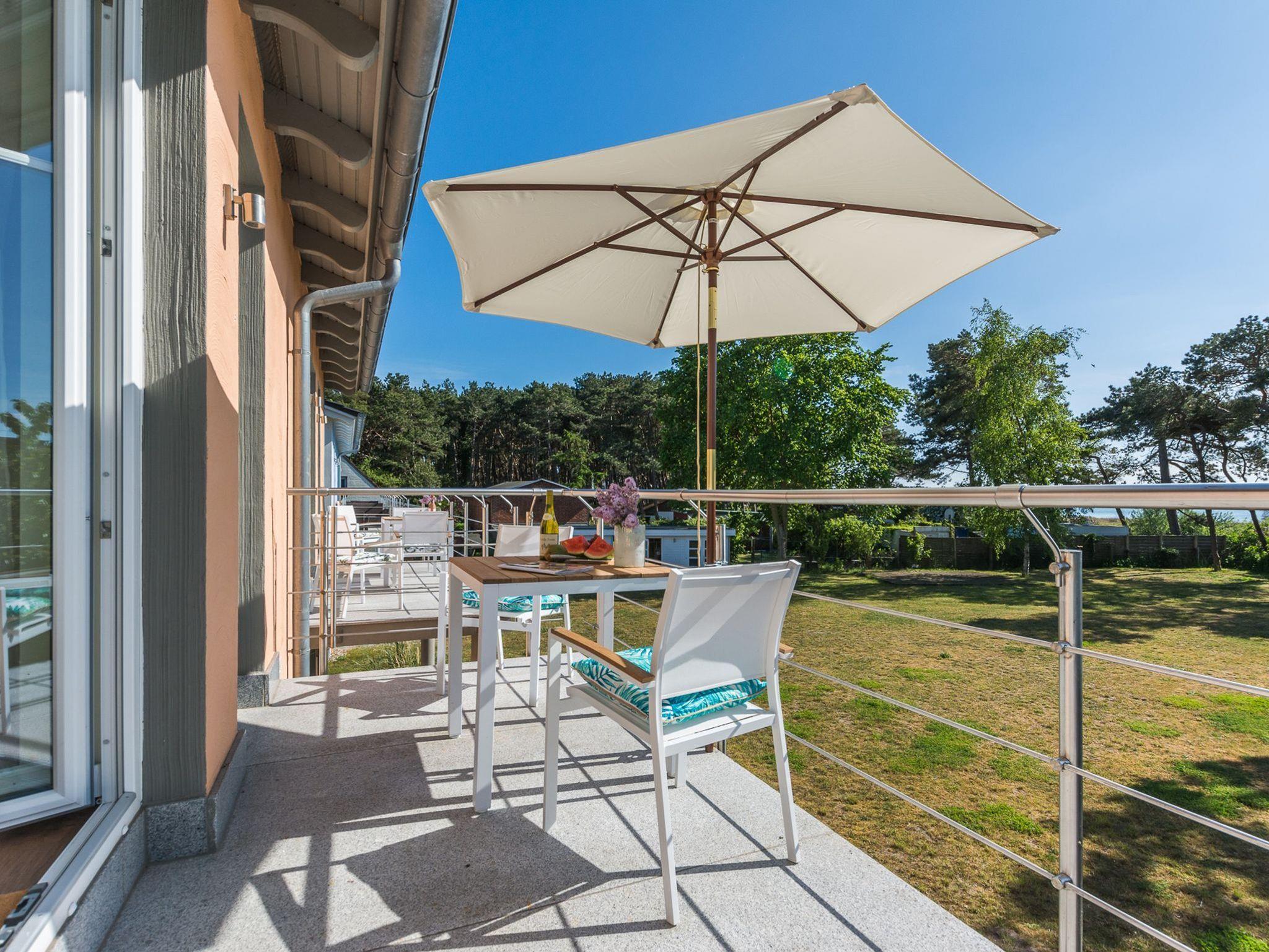 Exklusive Ferienwohnung mit Balkon und Meerblick in der Villa Westwind, direkt hinter dem Deich in Thiessow.