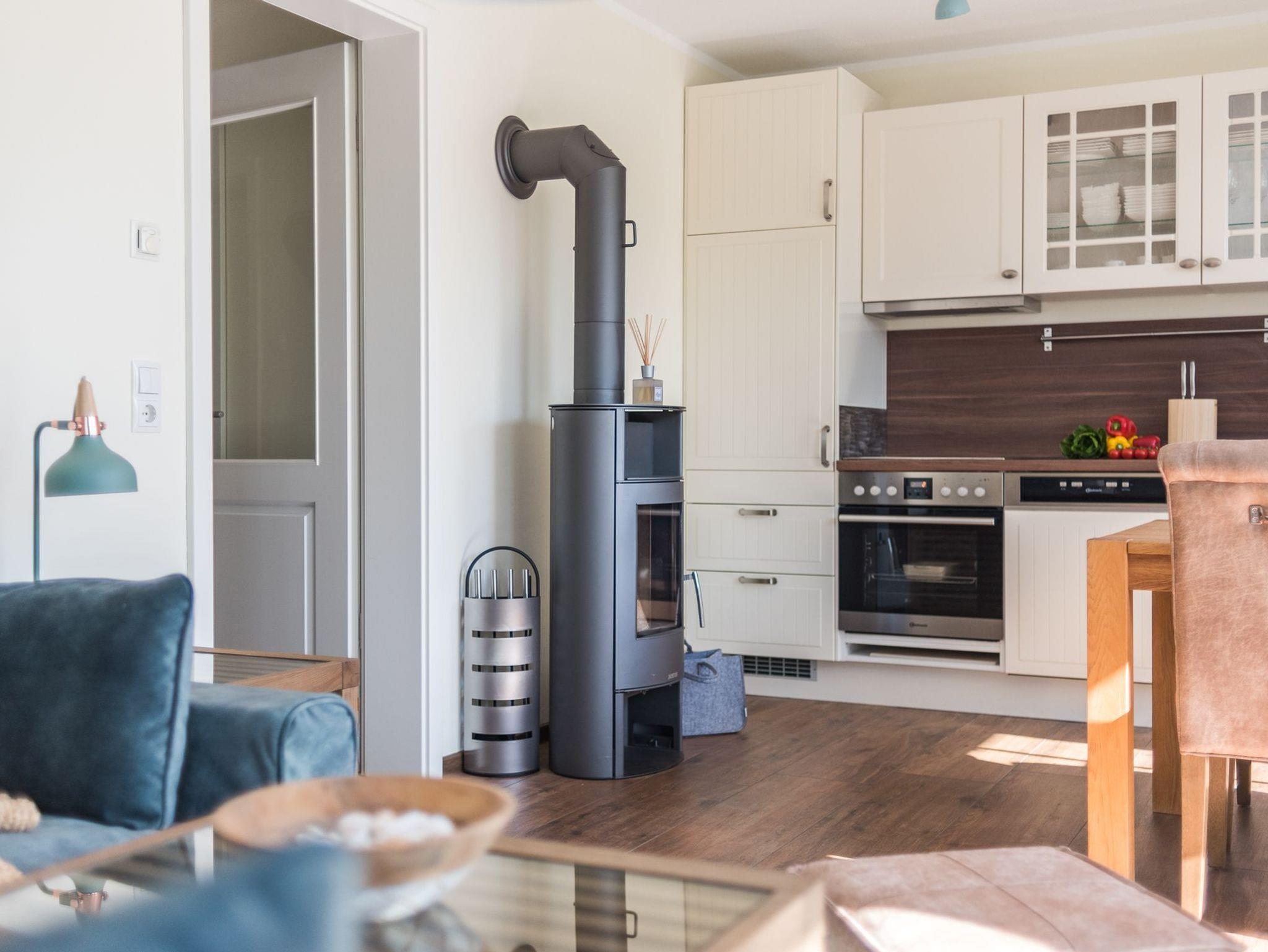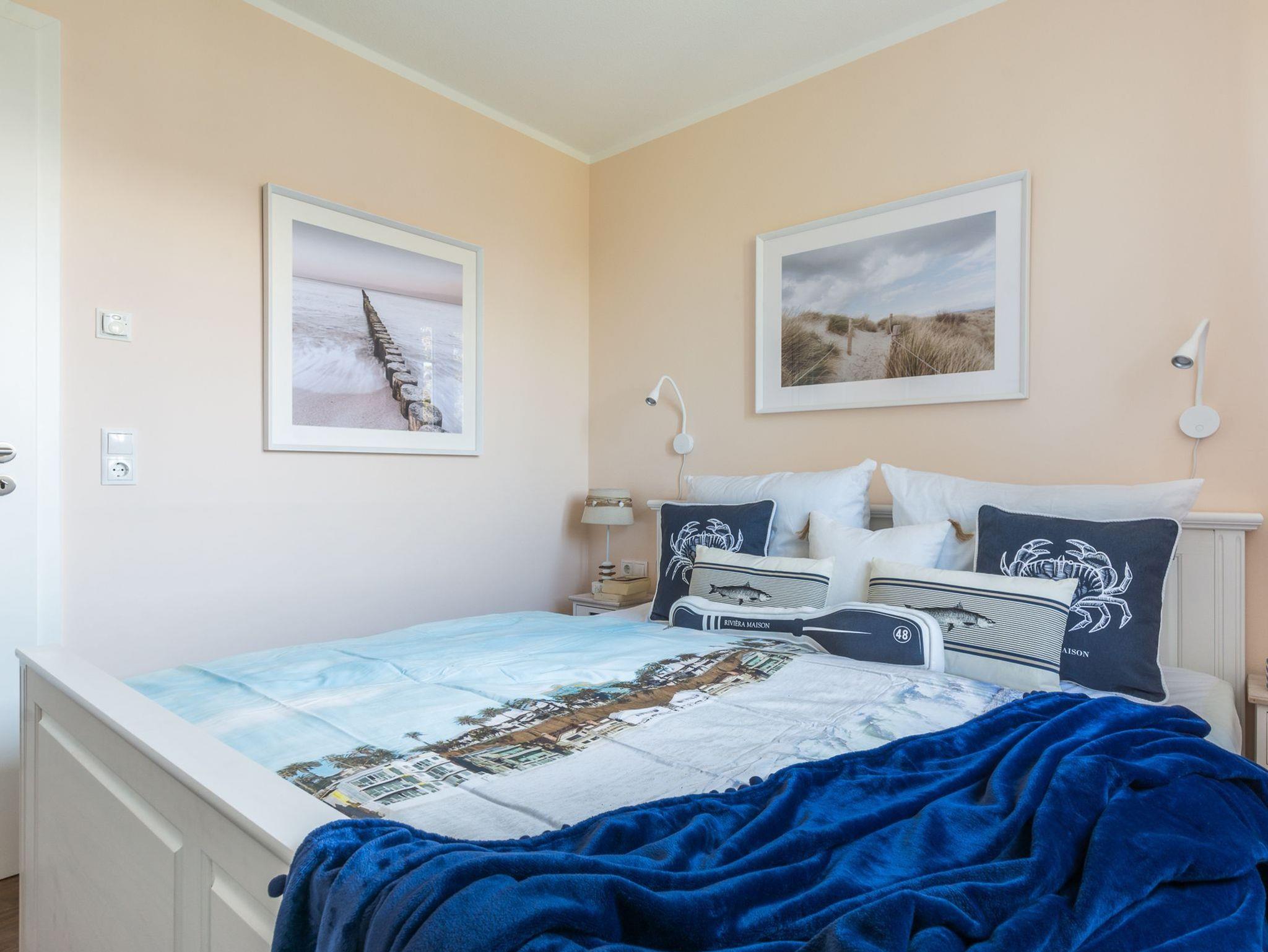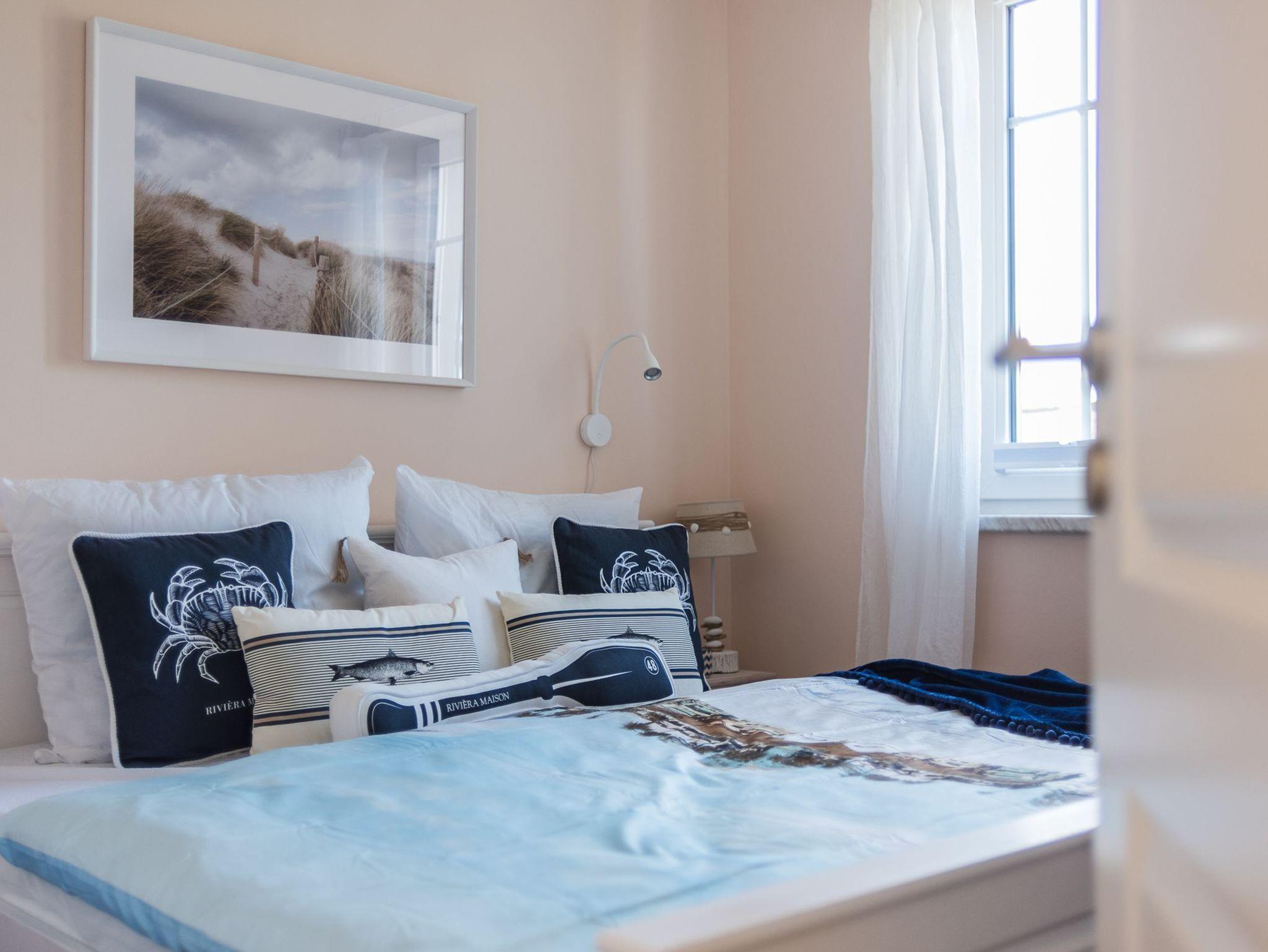 Die komfortable ca. 55 m² große Nichtraucherwohnung mit großem bestuhltem Balkon in der Villa Westwind ist für 2 bis max. 3 Erwachsene + 1 Kleinkind bis 3 Jahre im Kinderreisebett geeignet. Über ein geräumiges Treppenhaus mit Eichentreppe gelangt man über den Flur, ausgestattet mit Garderobe und Kleiderschrank in einen hellen und offenen Wohn-/Essbereich mit durchgängiger Fensterfront. Von hier hat man nach Süd-Westen einen fantastischen Panorama- und Meerblick. Die Küchenzeile mit Cerankochfeld und Backofen, großem Kühlschrank mit Gefrierfach, Geschirrspüler, Mikrowelle, Kaffeemaschine, Nespresso Maschine, Eierkocher, Toaster, Wasserkocher und allen notwendigen Küchenutensilien passt sich mit einem massiven Esstisch und vier Stühlen in das wohnliche Ambiente mit Couch, Couchtisch, Leselampe, Sideboard, Smart-TV, DAB-Radio und Blue Ray Player an. Auch im Urlaub brauchen Sie auf einen Internetanschluss (WLAN) nicht verzichten. Dieser ist für Sie inklusive. An kühlen Tagen kann ein Kaminofen (Kaminholz nicht inklusive) neben der Fußbodenheizung in der gesamten Wohnung für wohlige Wärme sorgen. Der durchgehende holzimitierte Steinfußboden spricht für Qualität. Das 1. Schlafzimmer ist mit einem Doppelbett (1,80 m x 2 ,00 m / HG 3 und zusätzlichem Topper), Nachttischablagen, ein Safe und Schränken ausgestattet. Im 2. Schlafzimmer befindet sich ein Einzelbett (0,90m x 2,00 m) sowie eine kleine Kommode und ein Sessel. Das sehr großzügige und moderne Bad ist mit einer ebenerdigen Dusche, Waschbecken, WC, Kosmetikspiegel, beheizbarem Handtuchtrockner, Fön und einer leistungsfähigen Entlüftungsanlage ausgestattet. Alle Räume sind mit Insektenschutzgitter versehen. Ein Staubsauger, ein mobiler Wäschetrockner und Reinigungsutensilien sind ebenso vorhanden. Der PKW-Stellplatz Nr. 04 befindet sich direkt vor dem Haus. In einem Gartenschuppen, welcher für Whg 3 und 4 zu nutzen ist, ist unter anderem Platz für Ihre geliehenen oder mitgebrachten Fahrräder sowie die Möglichkeit Ihre E-Bikes zu laden. Die große Wiese hinter dem Haus können auch zum Entspannen oder Grillen nutzen. Haustiere sind nicht erlaubt. Die Erstausstattung eines Wäschepaketes (komplette Bettwäsche, 1 Duschhandtuch, 2 kleine Handtücher) können Sie bis 14 Tage vor Anreise dazu buchen oder durch eigene ergänzen. Ab 2 gebuchten Paketen erhalten Sie einmalig 1 Geschirrhandtuch und 1 Duschvorleger hinzu.