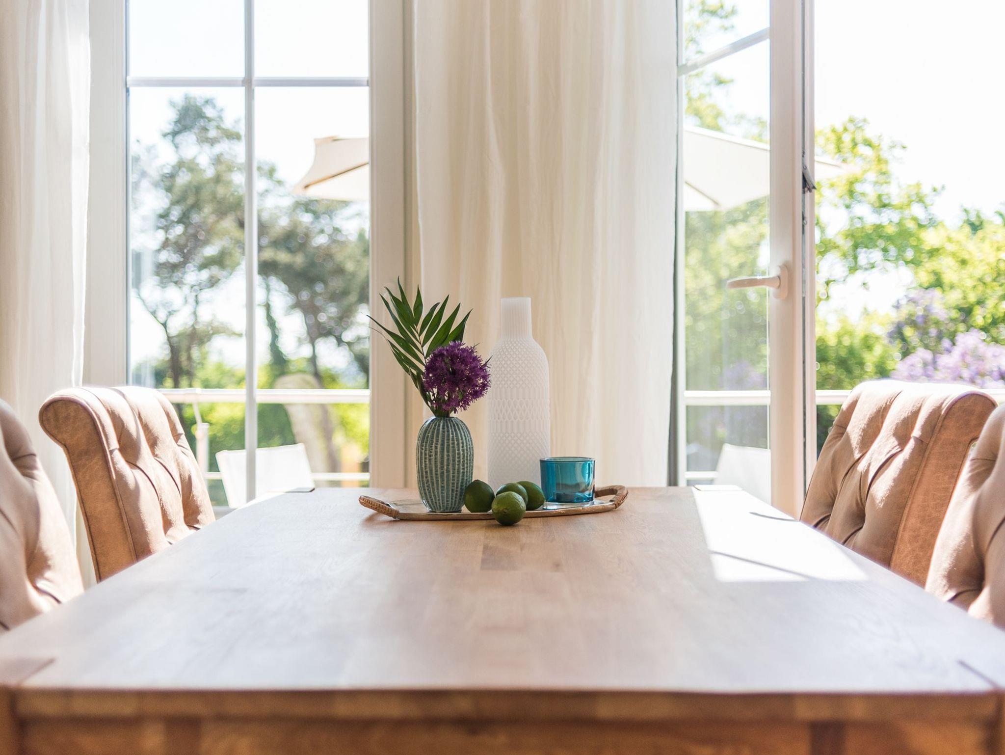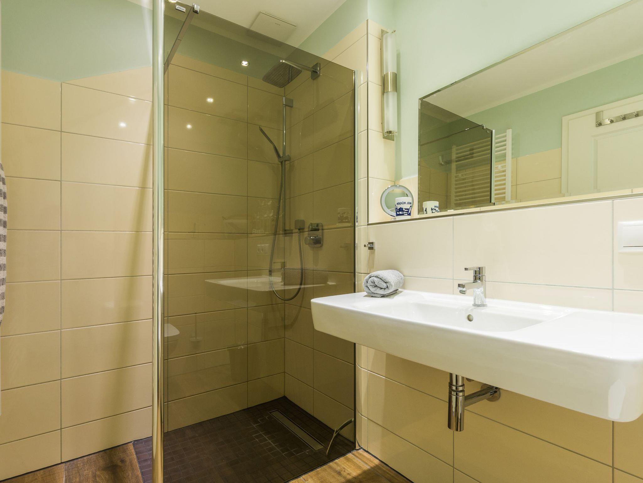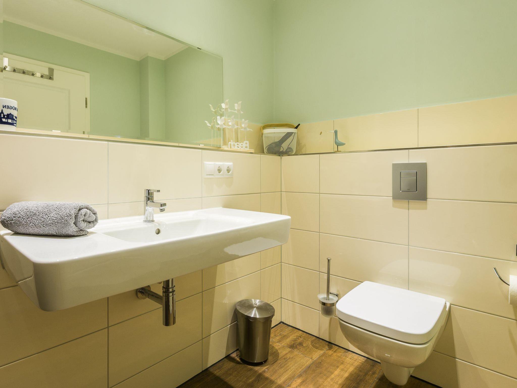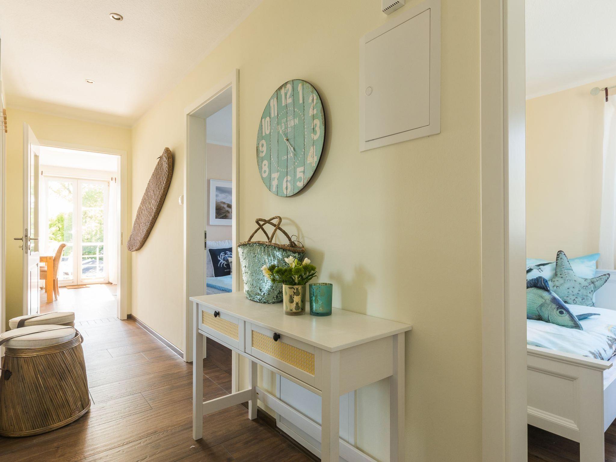Die komfortable ca. 55 m² große Nichtraucherwohnung mit großem bestuhltem Balkon in der Villa Westwind ist für 2 bis max. 3 Erwachsene + 1 Kleinkind bis 3 Jahre im Kinderreisebett geeignet. Über ein geräumiges Treppenhaus mit Eichentreppe gelangt man über den Flur, ausgestattet mit Garderobe und Kleiderschrank in einen hellen und offenen Wohn-/Essbereich mit durchgängiger Fensterfront. Von hier hat man nach Süd-Westen einen fantastischen Panorama- und Meerblick. Die Küchenzeile mit Cerankochfeld und Backofen, großem Kühlschrank mit Gefrierfach, Geschirrspüler, Mikrowelle, Kaffeemaschine, Nespresso Maschine, Eierkocher, Toaster, Wasserkocher und allen notwendigen Küchenutensilien passt sich mit einem massiven Esstisch und vier Stühlen in das wohnliche Ambiente mit Couch, Couchtisch, Leselampe, Sideboard, Smart-TV, DAB-Radio und Blue Ray Player an. Auch im Urlaub brauchen Sie auf einen Internetanschluss (WLAN) nicht verzichten. Dieser ist für Sie inklusive. An kühlen Tagen kann ein Kaminofen (Kaminholz nicht inklusive) neben der Fußbodenheizung in der gesamten Wohnung für wohlige Wärme sorgen. Der durchgehende holzimitierte Steinfußboden spricht für Qualität. Das 1. Schlafzimmer ist mit einem Doppelbett (1,80 m x 2 ,00 m / HG 3 und zusätzlichem Topper), Nachttischablagen, ein Safe und Schränken ausgestattet. Im 2. Schlafzimmer befindet sich ein Einzelbett (0,90m x 2,00 m) sowie eine kleine Kommode und ein Sessel. Das sehr großzügige und moderne Bad ist mit einer ebenerdigen Dusche, Waschbecken, WC, Kosmetikspiegel, beheizbarem Handtuchtrockner, Fön und einer leistungsfähigen Entlüftungsanlage ausgestattet. Alle Räume sind mit Insektenschutzgitter versehen. Ein Staubsauger, ein mobiler Wäschetrockner und Reinigungsutensilien sind ebenso vorhanden. Der PKW-Stellplatz Nr. 04 befindet sich direkt vor dem Haus. In einem Gartenschuppen, welcher für Whg 3 und 4 zu nutzen ist, ist unter anderem Platz für Ihre geliehenen oder mitgebrachten Fahrräder sowie die Möglichkeit Ihre E-Bikes zu laden. Die große Wiese hinter dem Haus können auch zum Entspannen oder Grillen nutzen. Haustiere sind nicht erlaubt. Die Erstausstattung eines Wäschepaketes (komplette Bettwäsche, 1 Duschhandtuch, 2 kleine Handtücher) können Sie bis 14 Tage vor Anreise dazu buchen oder durch eigene ergänzen. Ab 2 gebuchten Paketen erhalten Sie einmalig 1 Geschirrhandtuch und 1 Duschvorleger hinzu.