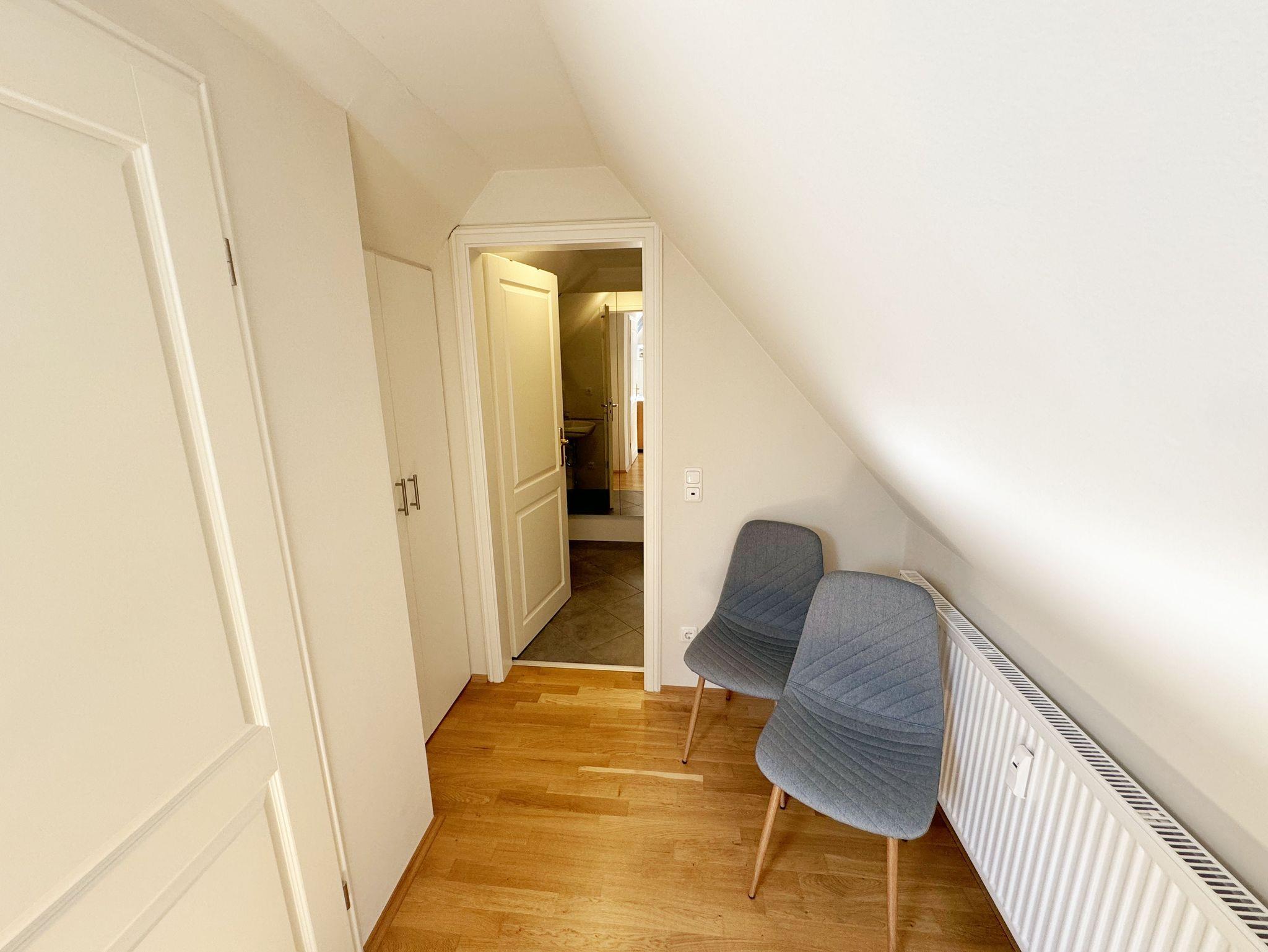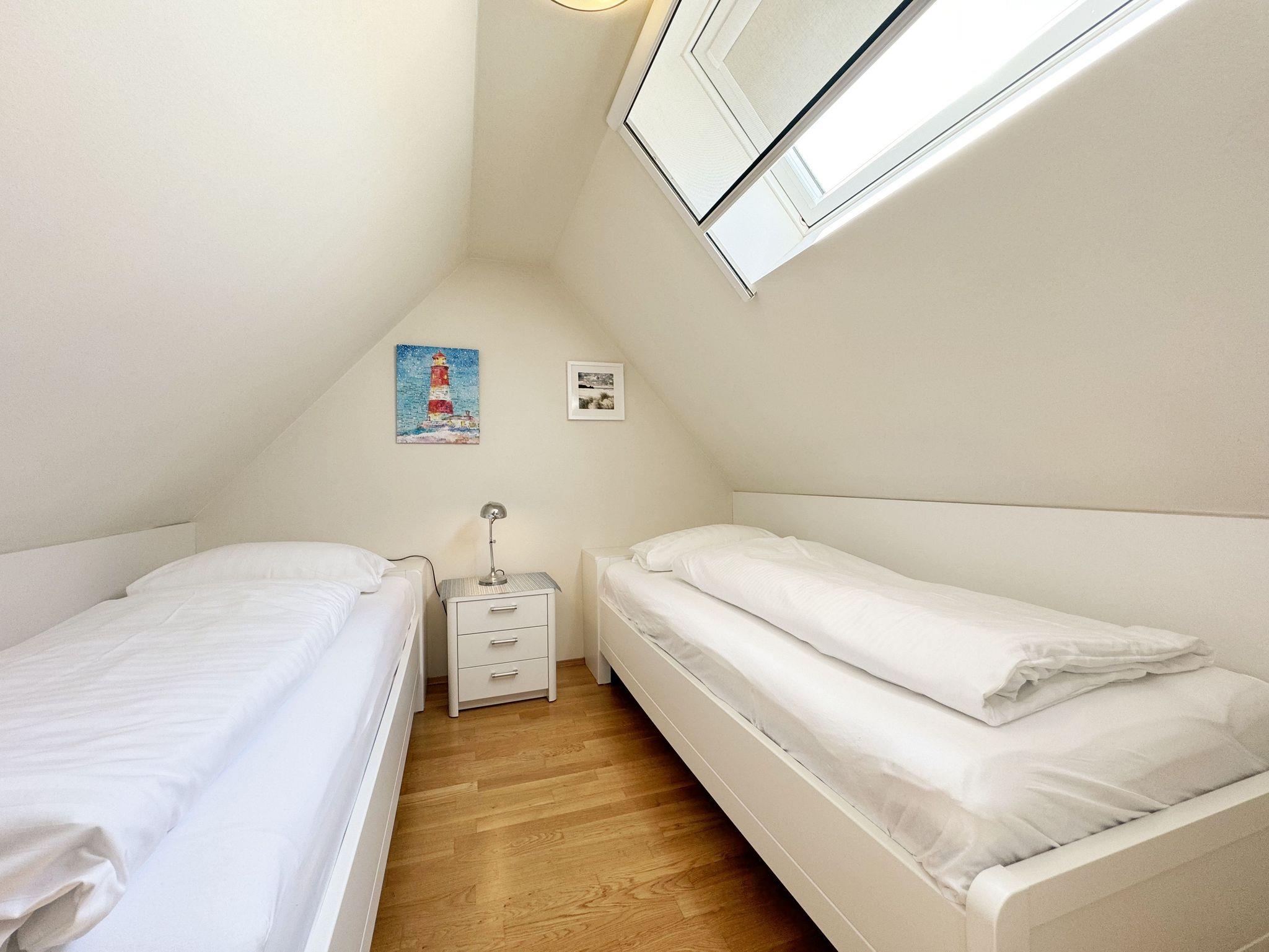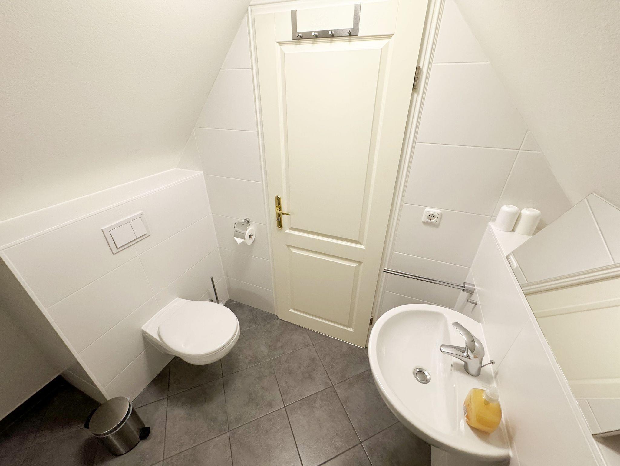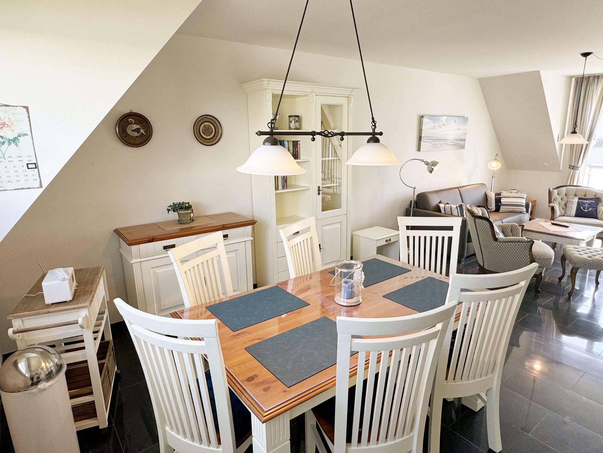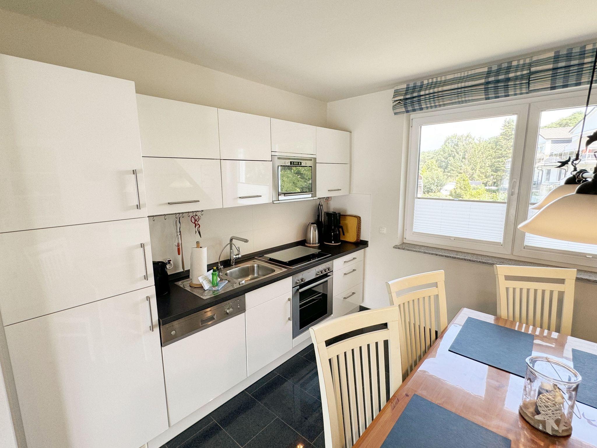 Die Nichtraucherferienwohnung Nr. 06 befindet sich im Obergeschoss im Haus Sanddorn. Sie bietet Ihnen mit Ihren ca. 70qm ausreichend Platz für 2 ? 4 Personen und ist der ideale Rückzugsort für Ihren Urlaub auf der Halbinsel Mönchgut. Treten Sie ein und lassen sich von der abgestimmten Einrichtung verzaubern. Der kleine Flurbereich ist mit einer Garderobe, einem Ganzkörperspiegel und einem Wandschrank versehen. Von hier aus gelangen Sie in den offenen Wohnbereich mit angrenzendem Essbereich sowie der offenen Küchenzeile. Der helle Wohnbereich wurde mit Vollholzmöbeln, einer Ledercouch, zwei bequeme Sessel, einem Couchtisch, zwei Leselampen, einem Smart-TV, einem DAB-Radio, einer kleinen Auswahl an Urlaubslektüre und WLAN ausgestattet. An kühlen Tagen sorgt ein Kaminofen für eine zusätzliche Gemütlichkeit. Von hier gelangen Sie auch auf den bestuhlten Südbalkon mit elektrischer Markise und Windsensor, welche Ihnen an sonnigen Tagen Schatten spendet. Angrenzend zum Wohnbereich befindet sich die vollausgestattet Küchenzeile. Die hochwertige Ausstattung umfasst ein 4 Zonen Cerankochfeld, einen Kühlschrank mit Eisfach, eine Spülmaschine, einen Backofen, eine Mikrowelle, eine Kaffeemaschine mit Thermoskanne, eine Nespresso Maschine, einen Toaster, einen Wasserkocher sowie diverse Küchenutensilien, die Sie zum Kochen benötigen. Ein Essplatz rundet den Bereich ab. Das Schlafzimmer, welches sich auf der gleichen Ebene befindet, wurde mit einem Boxspringbett (1,60m x 2,00m) mit durchgehenden Topper, Nachttischablagen und einem großen Kleiderschrank ausgestattet. Auch von hier gelangen Sie auf den Südbalkon. Das Tageslicht-Bad sorgt mit seinem beheizbaren Handtuchheizkörper, einem WC, einer ebenerdigen Dusche, einem Waschplatz, einem Fön, einem Kosmetikspiegel, einer Waschmaschine und einem Wäschetrockner für Komfort und Bequemlichkeit. Das zweite Schlafzimmer erreichen Sie durch eine Links-/Rechts Treppe vom Wohnbereich. Hier können Sie mit 2 Einzelbetten (á 0,90m x 2,00m), verstellbare Lattenroste, einer Kommode, einen Kleiderschrank und einen Smart-TV zufrieden in den Schlaf kommen. Abgerundet wird der Schlafkomfort in diesem Raum mit einem elektrisch gesteuerten Dachfenster mit Insektenschutzgitter und Verdunklungsrollo. Von hier aus gelangen Sie in das zusätzliche Gäste-WC mit Waschplatz und Einbauschrank. Alle Räumlichkeiten sind zusätzlich mit Insektenschutzgitter, elektrischen Außenrollo´s und einer Fußbodenheizung ausgestattet. Haustiere sind nicht erlaubt. Ein PKW-Stellplatz (Nr.06) befindet sich direkt am Haus. Im Schuppen (Nr.06) können Sie Ihre mitgebrachten oder geliehenen Fahrräder unterstellen. Die Erstausstattung eines Wäschepaketes (komplette Bettwäsche, 1 Duschhandtuch, 2 kleine Handtücher) können Sie bis 14 Tage vor Anreise gegen einen Aufpreis dazu buchen oder durch eigenes Ergänzen. Ab 2 gebuchten Paketen erhalten Sie einmalig 1 Geschirrhandtuch und 1 Duschvorleger hinzu.