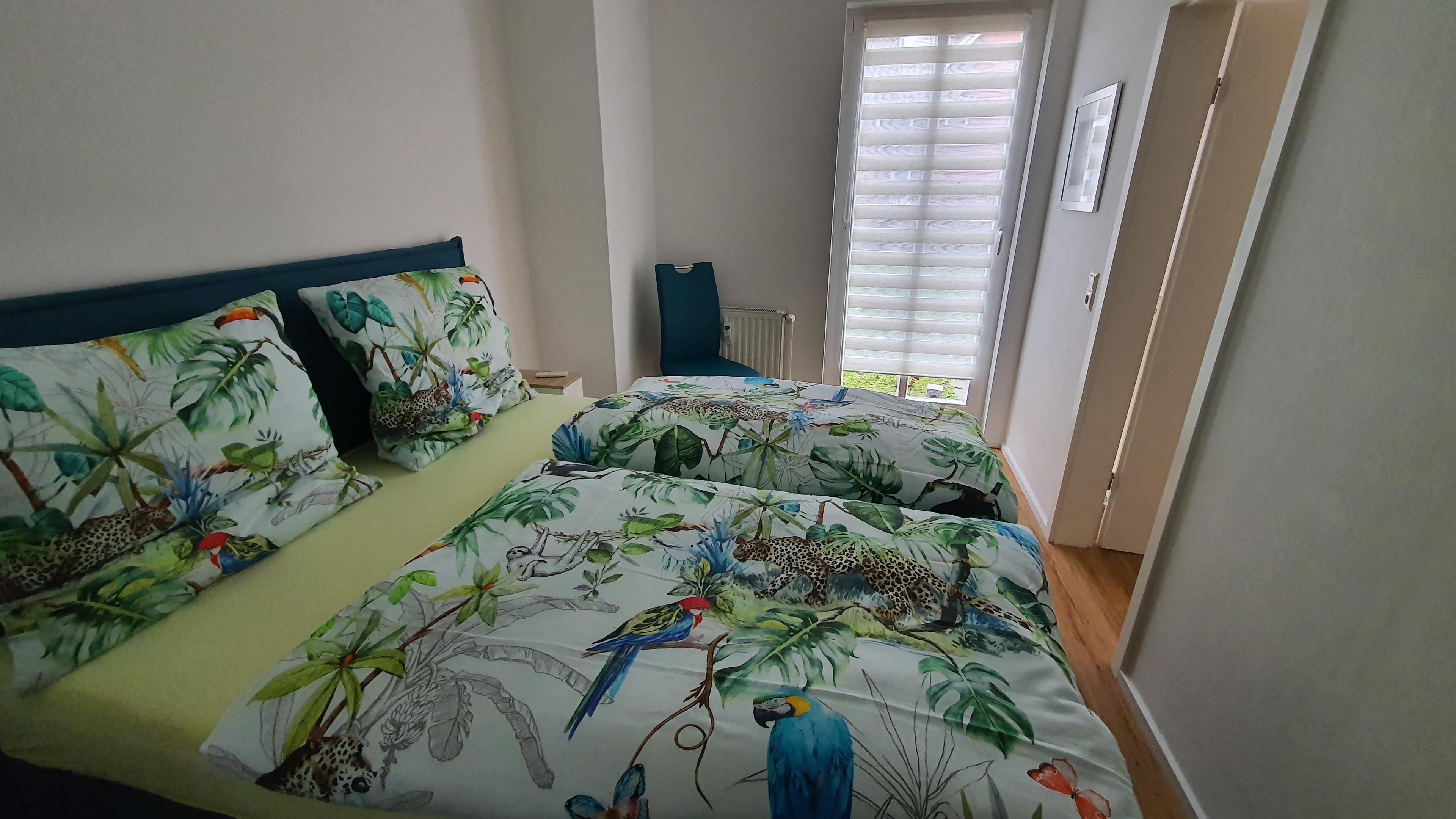 Der Küchenbereich ist modern und gut ausgestattet, mit Geschirrspüler, Waschmaschine, Wasserkocher, Kaffeemaschine, Toaster und allen notwendigen Küchenutensilien. Der Wohnbereich mit Essecke ist gemütlich und einladend, mit einem bequemen Ecksofa (Schlafsofa), Couchtisch, TV-Board mit 50 Zoll-TV sowie W-Lan für gemütliche Abende zu Hause. Das Schlafzimmer bietet als ruhiger Erholungsort ein bequemes Boxspringbett (160x200 cm) mit hochwertiger Bettwäsche. Im Badezimmer mit bodentiefer Duschwanne befindet sich alles Nötige. Hand-/Duschtücher sowie Haartrockner sind vorhanden.
