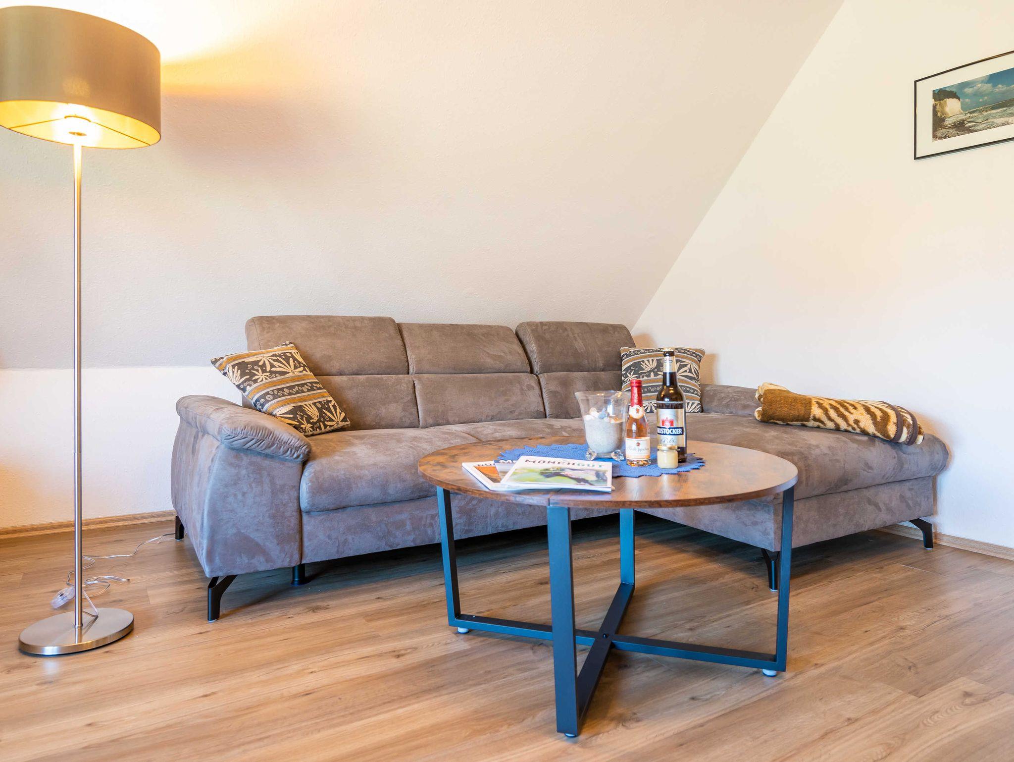 Die Wohnung ist wie folgt aufgeteilt: 1 Schlafzimmer mit Doppelbett, 1 Wohnzimmer mit gemütlicher Couchecke, TV und Sessel,