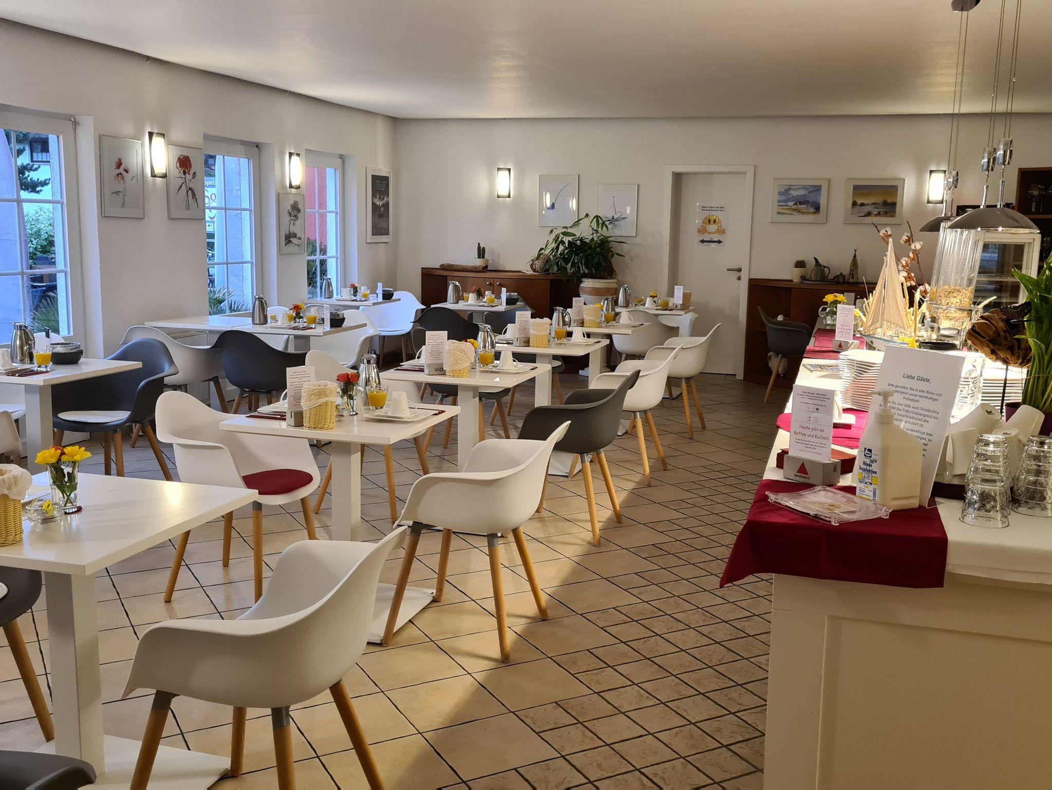 Zum täglichen Frühstück erwarten wir Sie morgens in unserem Frühstücksrestaurant am Schlemmerbuffet (gegen Aufpreis). Auf Wunsch können Sie Ihr Frühstück und Ihren Morgenkaffee oder -tee ganz entspannt auf unserer sonnigen Terrasse genießen. An ausgewählten Tagen öffnet unser Gartencafé und hier bieten wir unseren Gästen leckere Kaffeespezialitäten zu köstlichen selbstgebackenen Kuchen an. In dieser Wohneinheit sind keine Haustiere zugelassen.