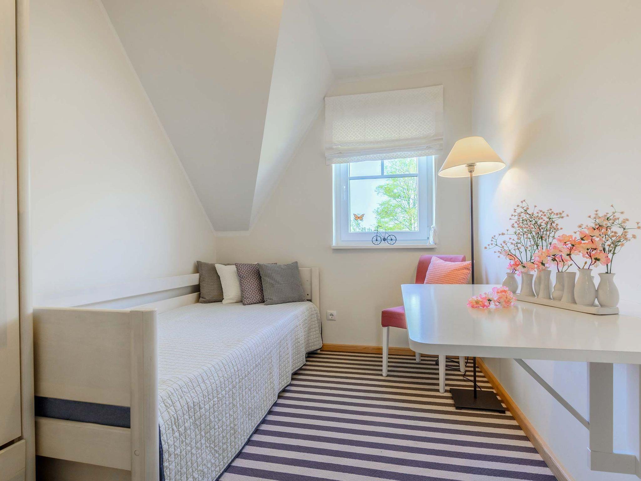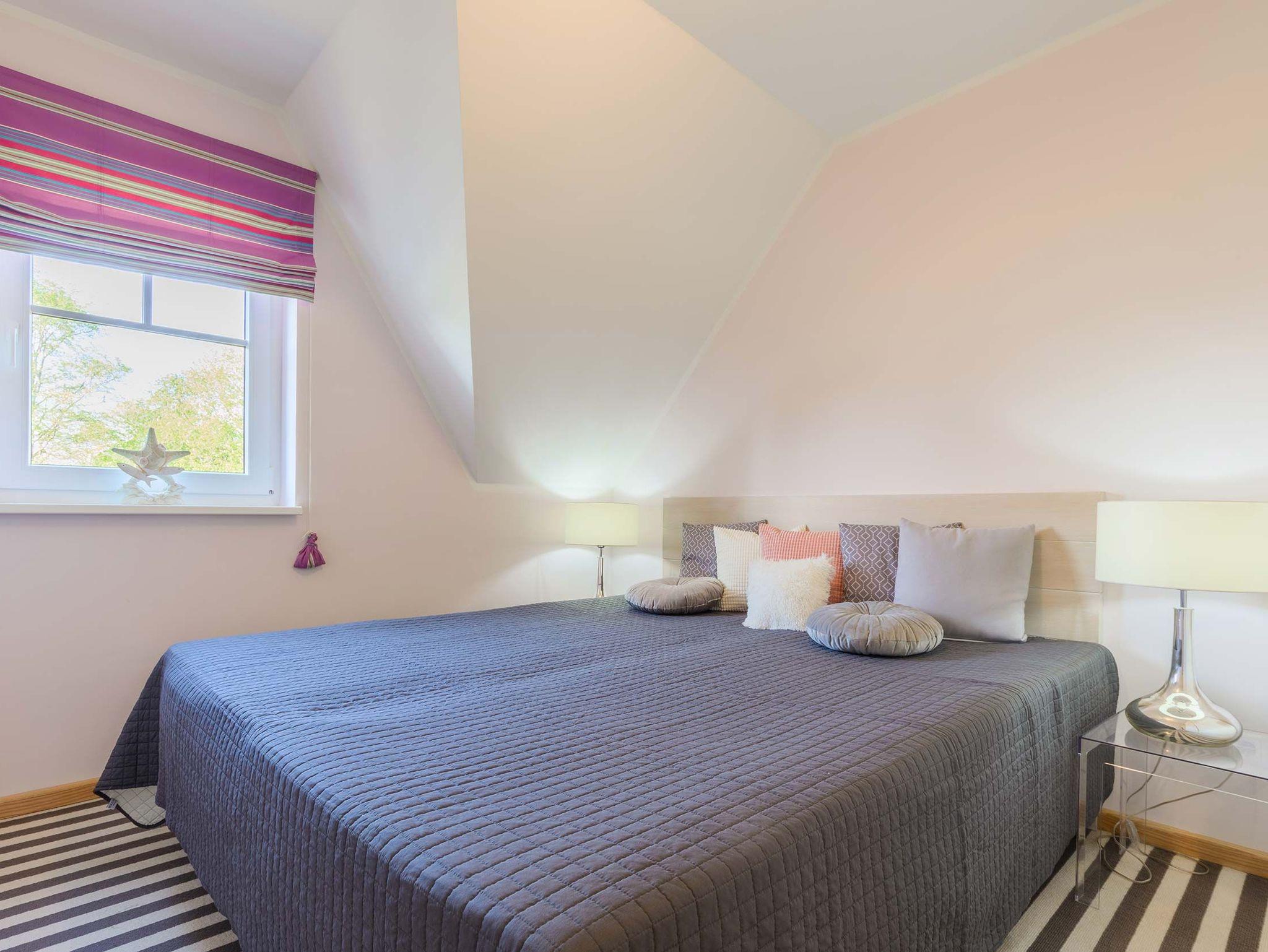 Auf dieser Ebene, im Obergeschoss, befinden sich zwei separate Schlafzimmer. Ein Schlafzimmer ist mit einem Doppelbett und zusätzlichen Fernseher und das andere mit einem Tandembett und einen weiteren Fernseher ausgestattet. Das dritte Schlafzimmer mit Doppelbett befindet sich im Dachgeschoss. Ein Wannenbad und das Duschbad im Spitzboden sind grosszügig ausgestattet.